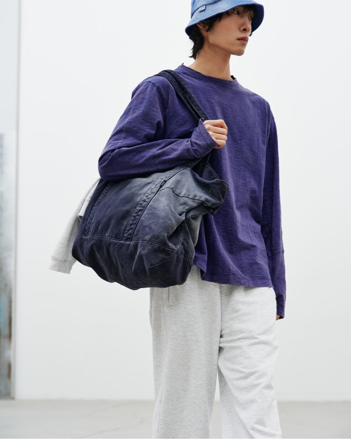 [999HUMANITY] ASYMMETRIC BLEACHED LONG SLEEVE TEE (BLEACHED BLUE) 正規品 韓国 ブランド 韓国ファッション 韓国代行 999 ヒューマニティ HUMANITY 日本 店舗