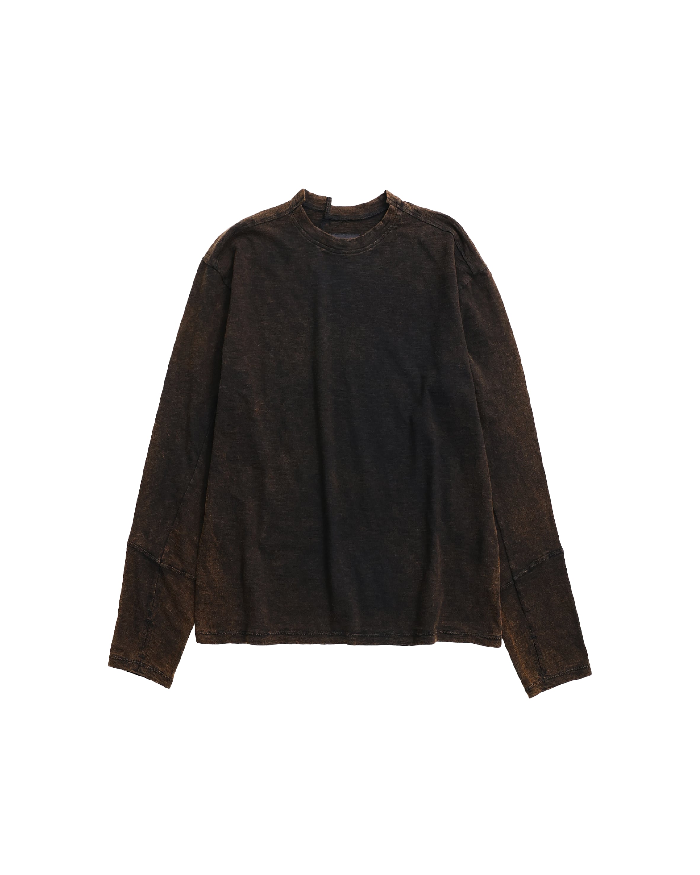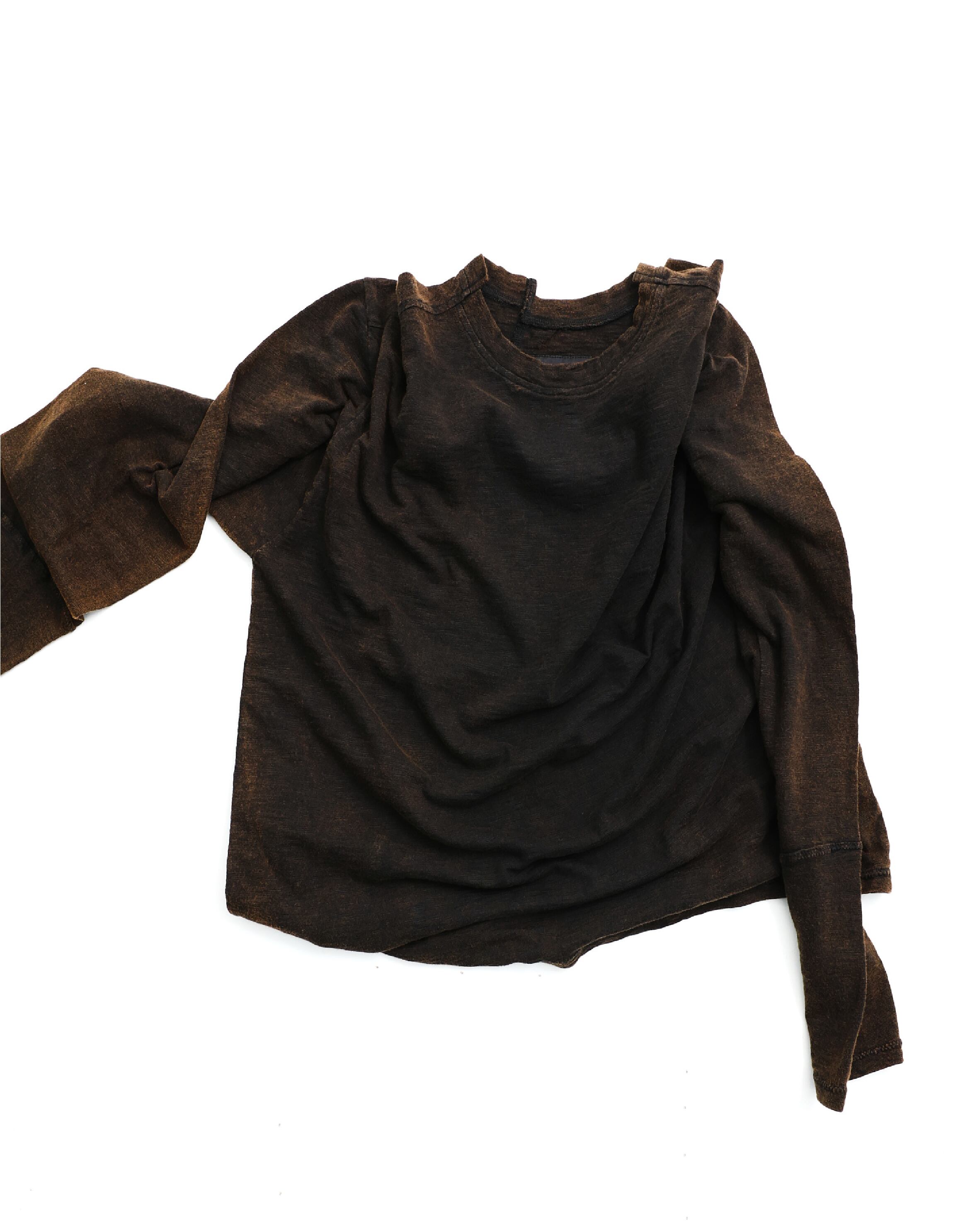 [999HUMANITY] ASYMMETRIC BLEACHED LONG SLEEVE TEE (BLEACHED BLACK)