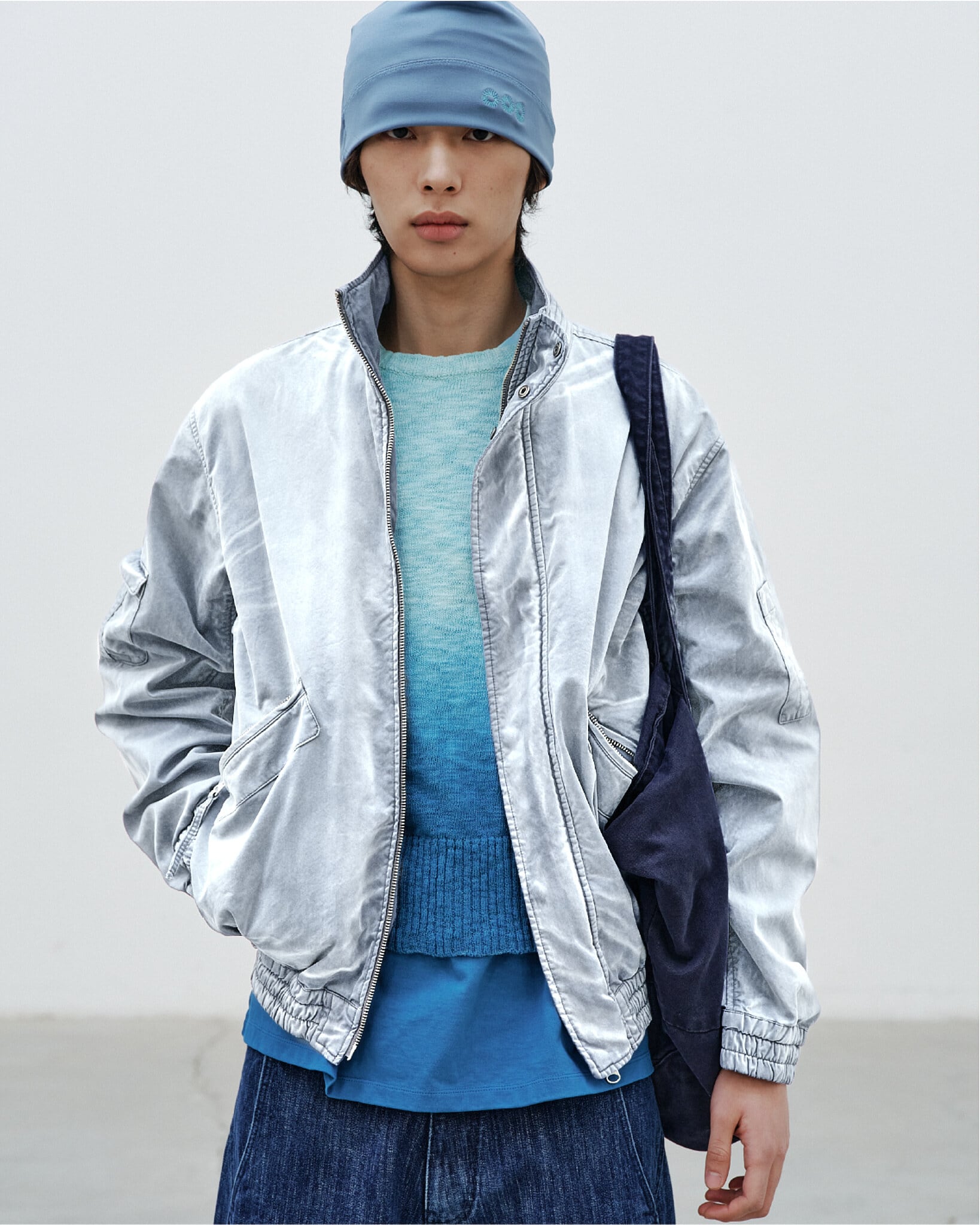 [999HUMANITY] ADVENTURE DYED BOMBER JACKET (BLUE GREY) 正規品 韓国 ブランド 韓国ファッション 韓国代行 999 ヒューマニティ HUMANITY 日本 店舗