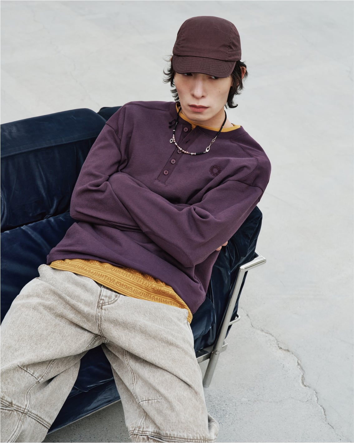 [999HUMANITY] EVERYDAY HENRY NECK LONG SLEEVE TEE (PURPLE) 正規品 韓国 ブランド 韓国ファッション 韓国代行 999 ヒューマニティ HUMANITY 日本 店舗