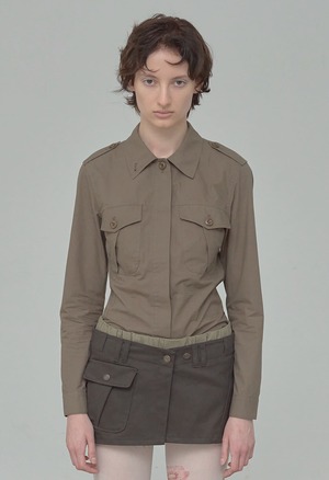 [OPEN YY] FITTED CAMP SHIRT, KHAKI