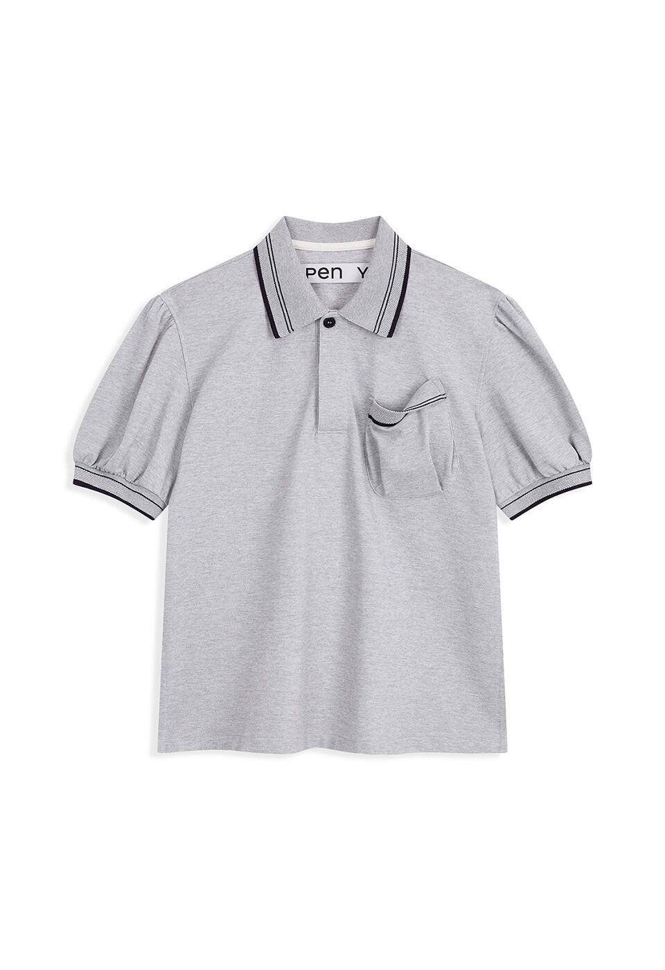 [OPEN YY] PUFFY PIQUÉ POLO, GRAY