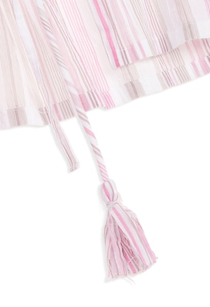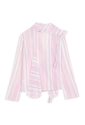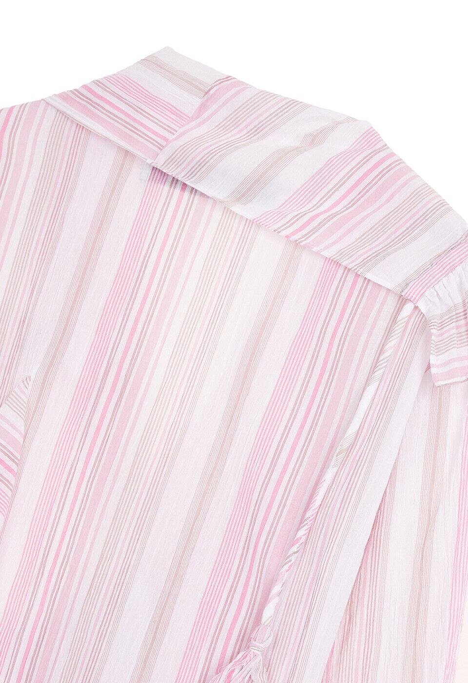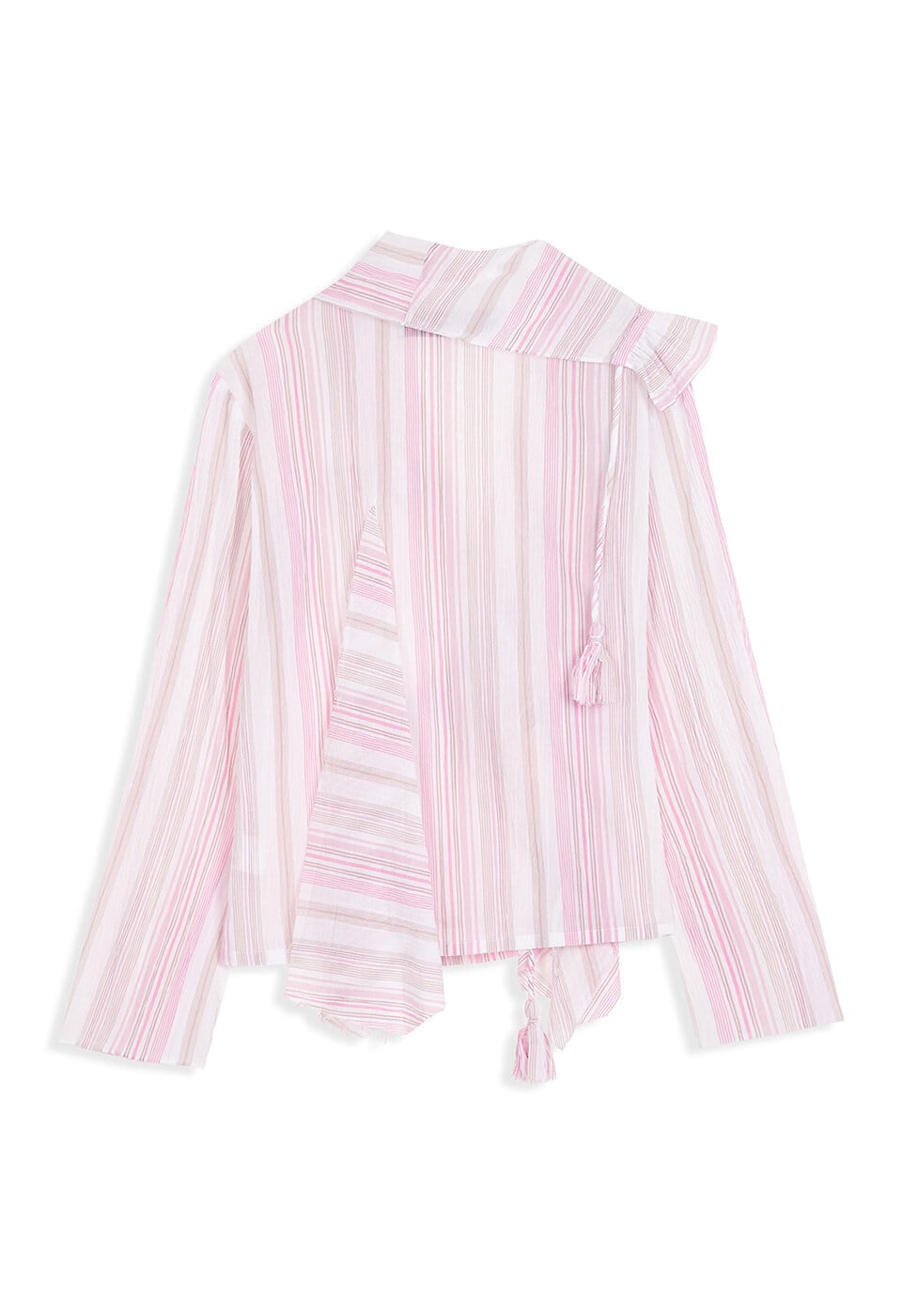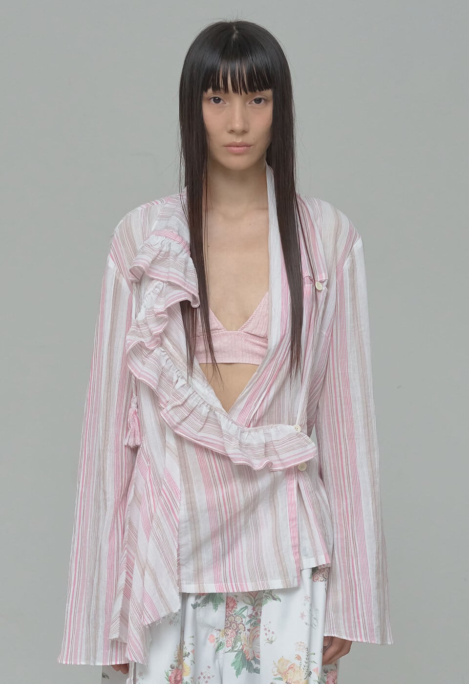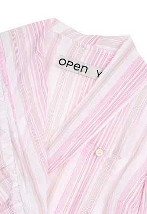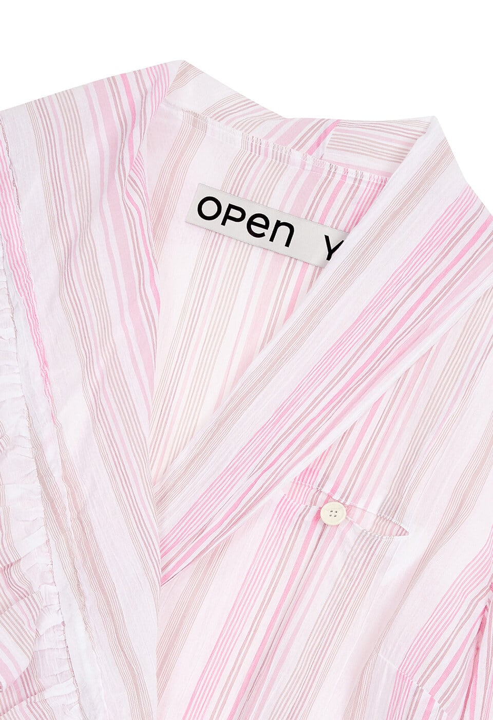 [OPEN YY] UNBALANCED RUFFLE STRIPE BLOUSE, PINK