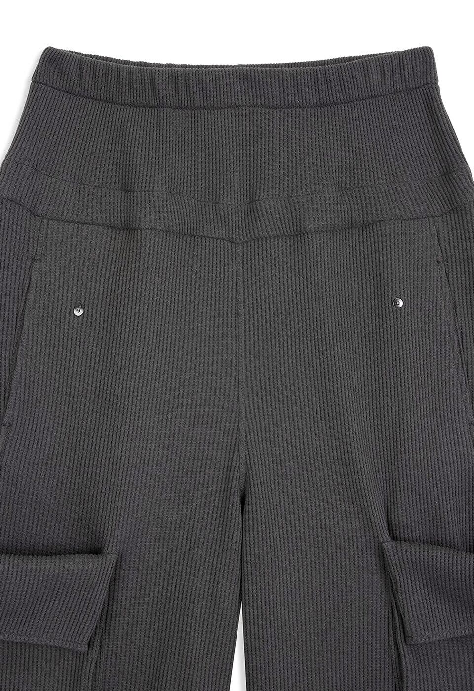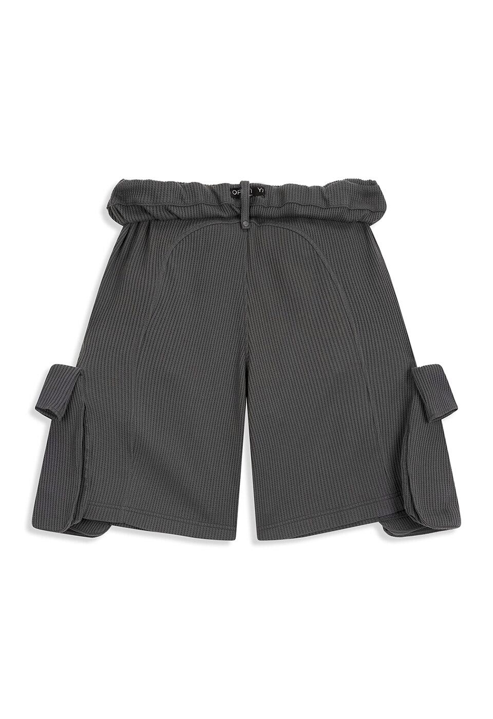 [OPEN YY] ROLLED WAIST WAFFLE CARGO SHORTS, CHARCOAL