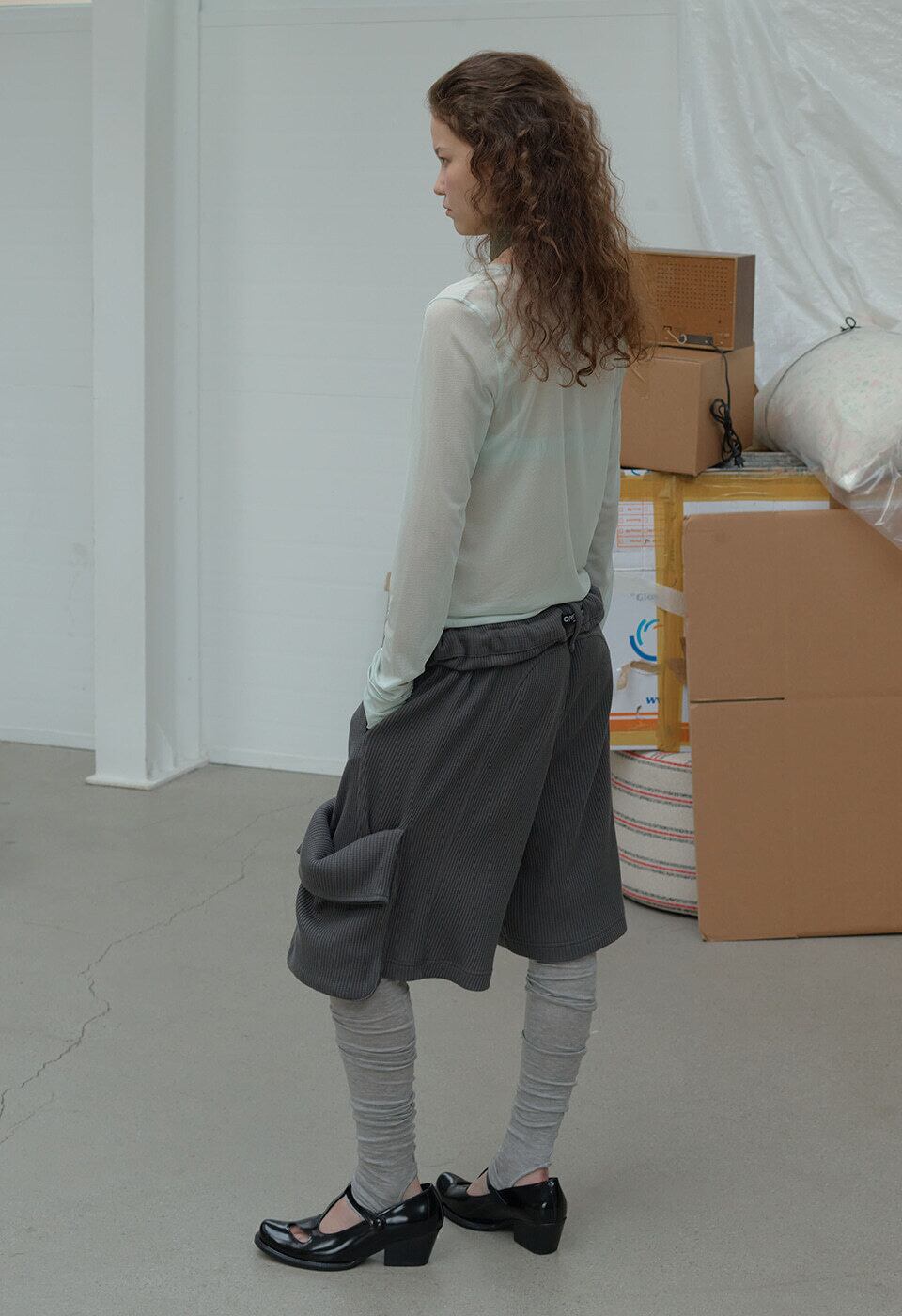 [OPEN YY] ROLLED WAIST WAFFLE CARGO SHORTS, CHARCOAL 正規品 韓国ブランド 韓国通販 韓国代行 韓国ファッション オープン ワイワイ 日本 店舗