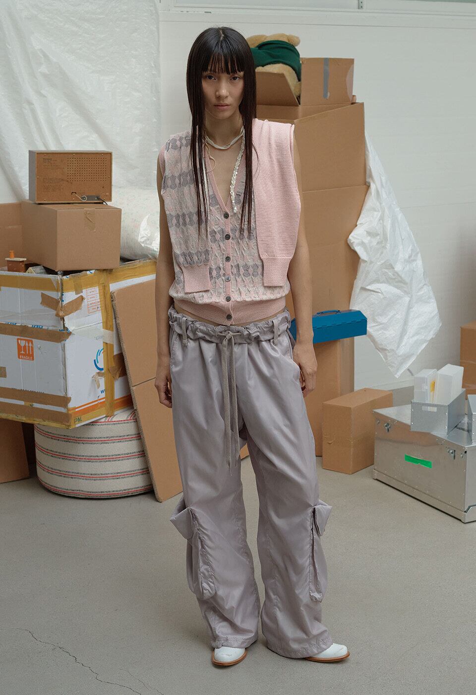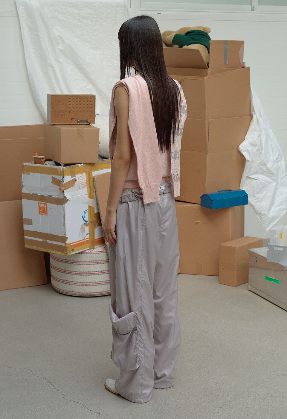 [OPEN YY] ROLLED WAIST CARGO WIND PANTS, GRAY