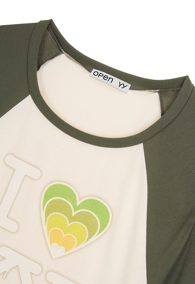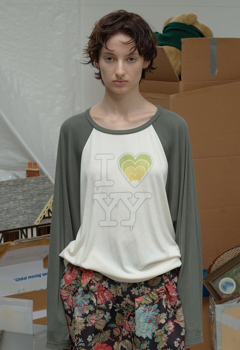 [OPEN YY] I LOVE YY RAGLAN TEE, GREEN
