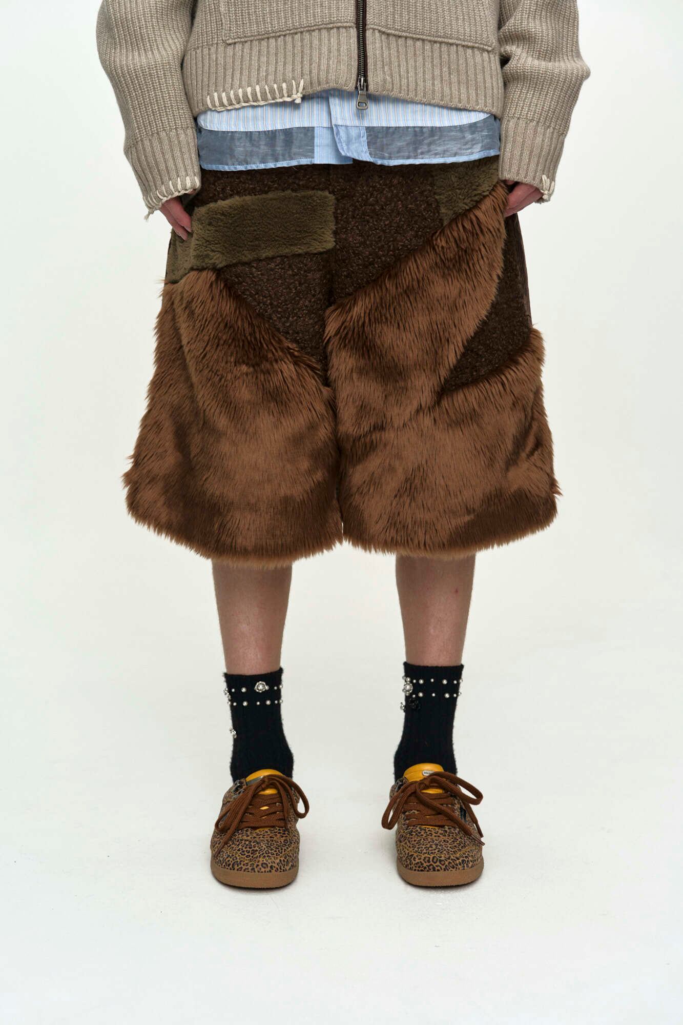 [ANDERSSON BELL] FAUX FUR PATCHWORK SHORTS apa870m(BROWN)
