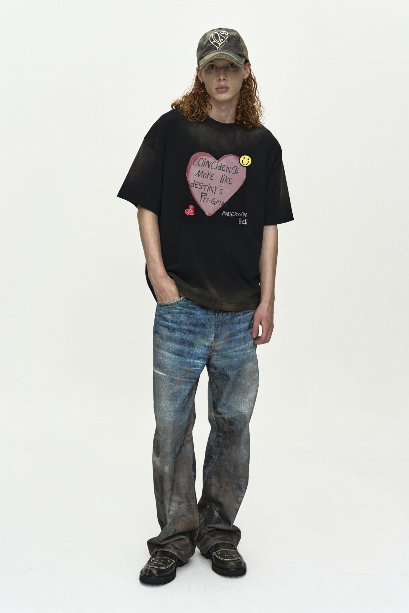 [ANDERSSON BELL] (ESSENTIAL) UNISEX SPRAY WASHED HEART MESSAGE T-SHIRT atb1432u(BLACK) 正規品 韓国ブランド 韓国通販 韓国代行 韓国ファッション ANDERSSONBELL アンダーソンベル 日本 店舗