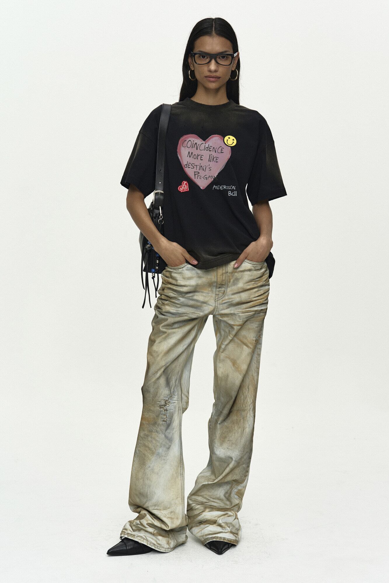 [ANDERSSON BELL] (ESSENTIAL) UNISEX SPRAY WASHED HEART MESSAGE T-SHIRT atb1432u(BLACK)