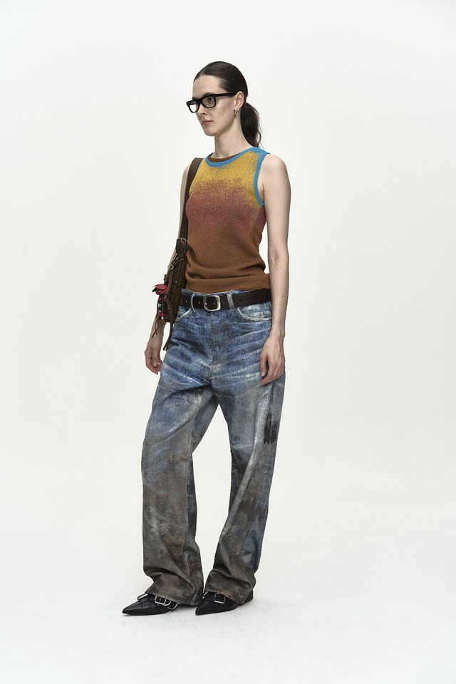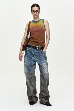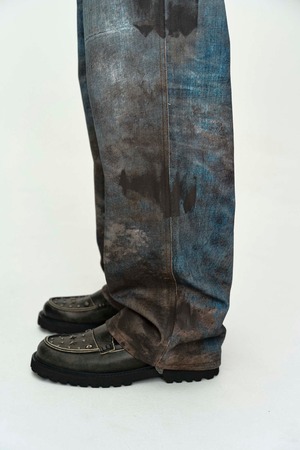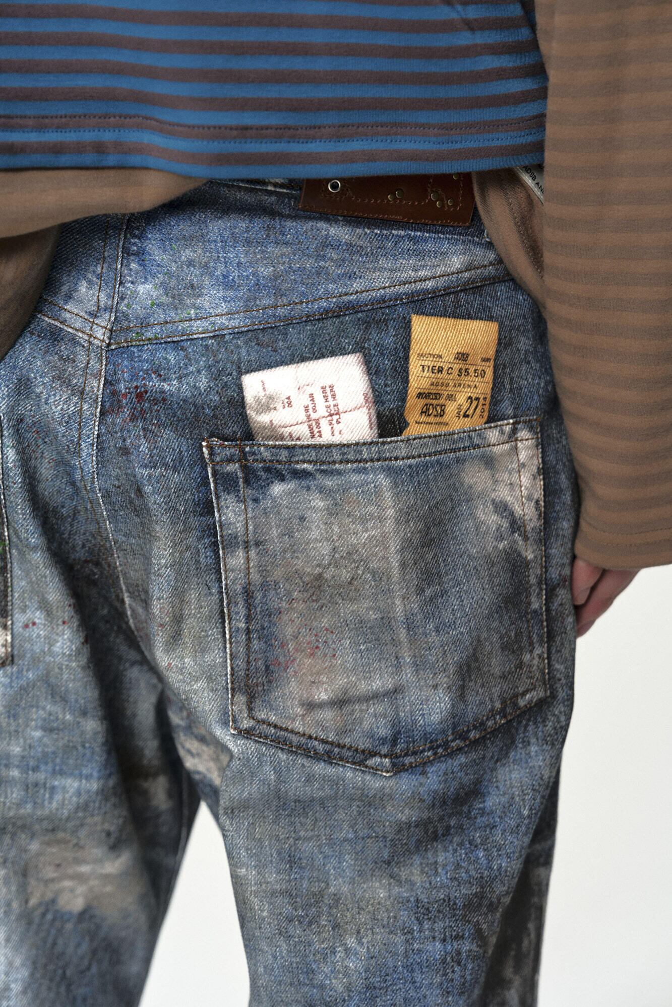[ANDERSSON BELL] UNISEX FESTIVAL MUD PRINTED JEANS apa877u(BLUE)
