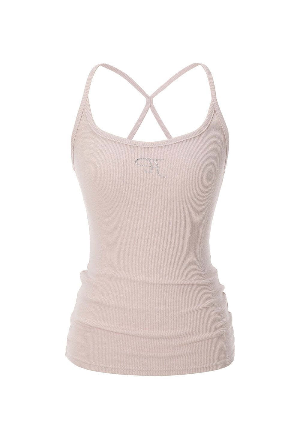 [threetimes] Jewel cross back tank top (Pink)