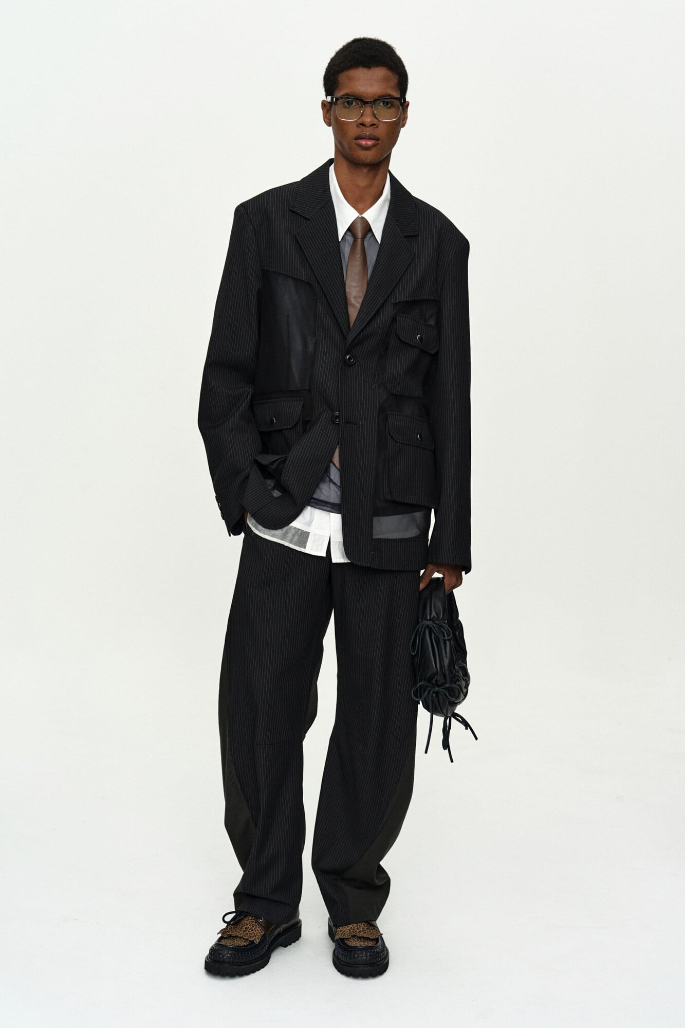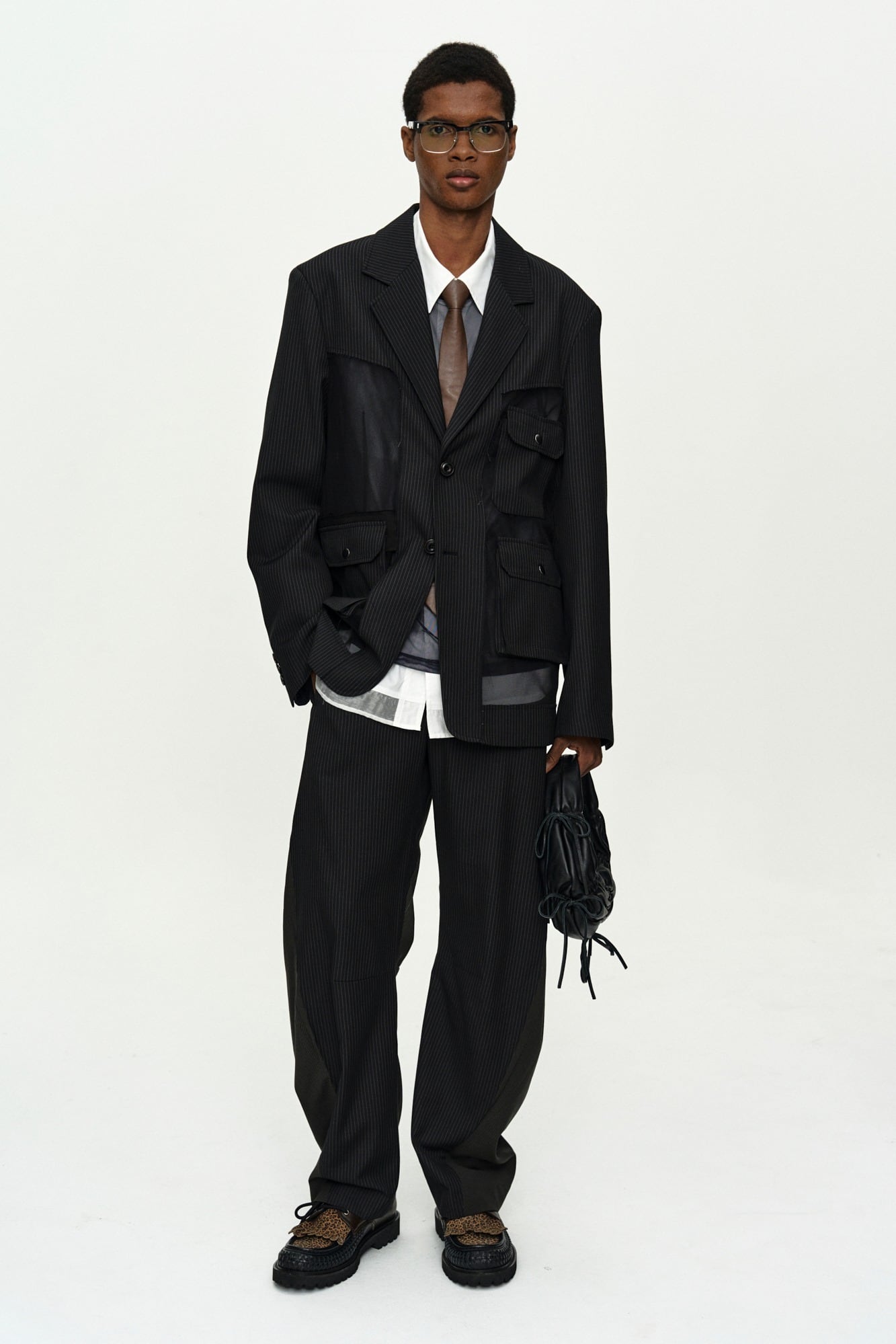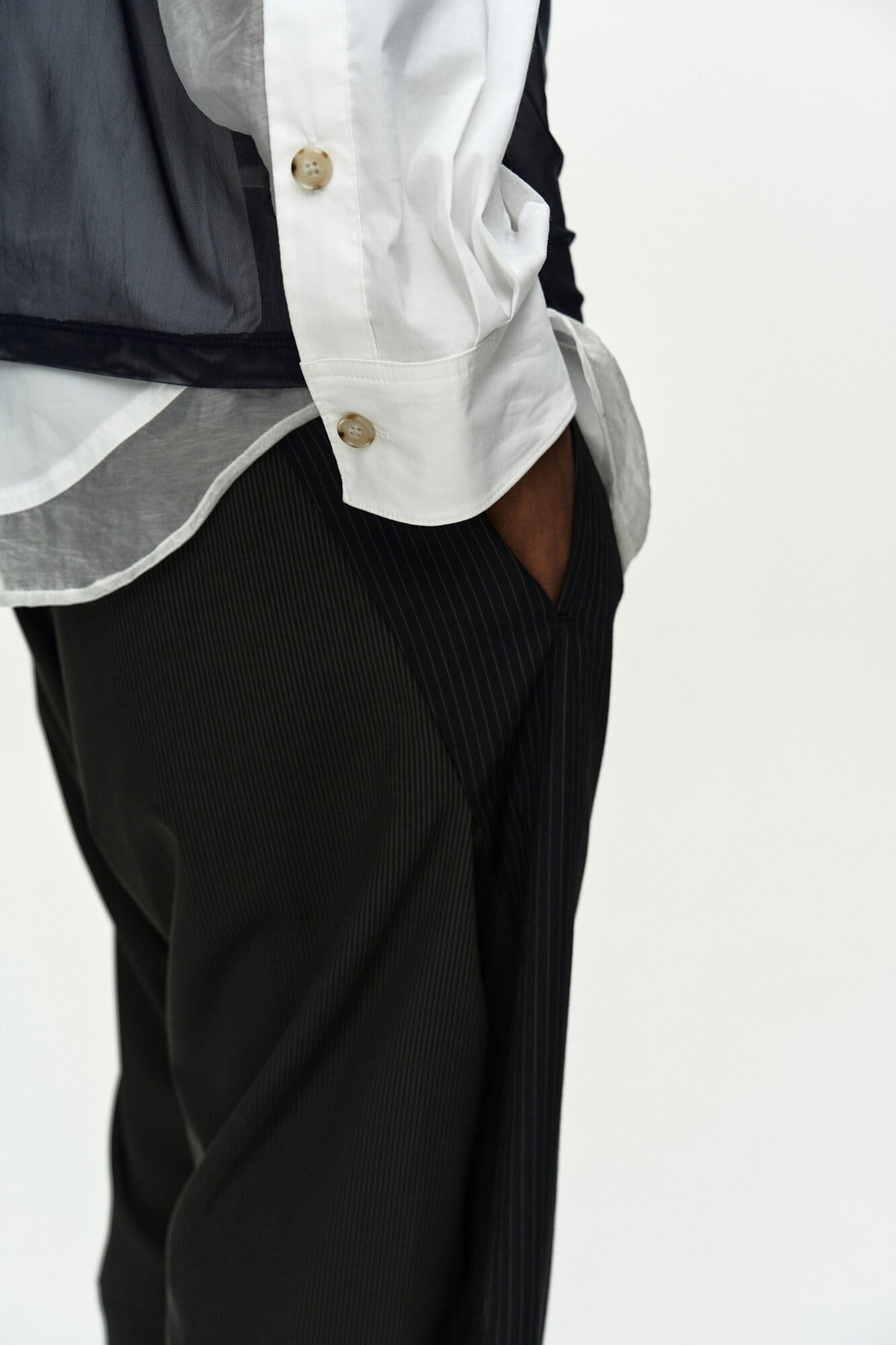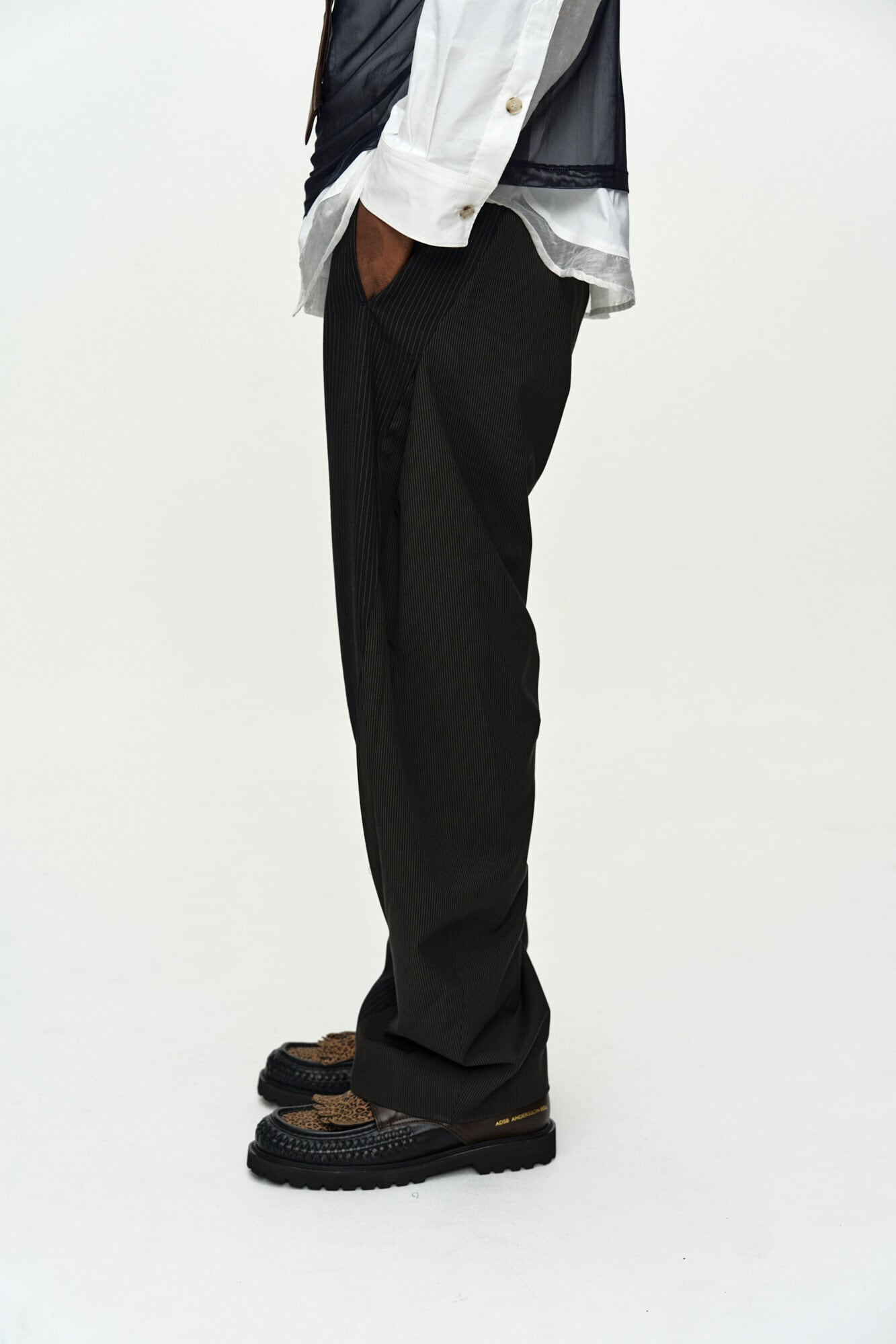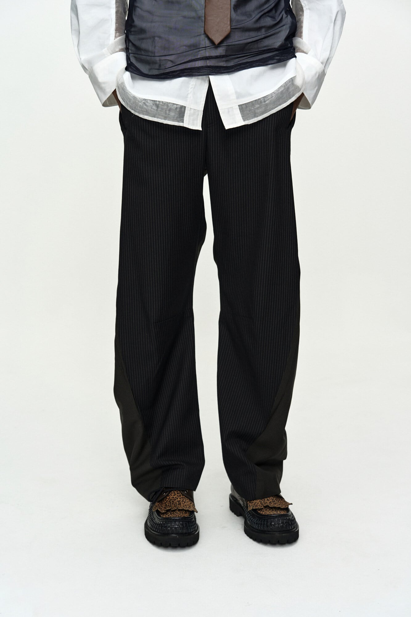[ANDERSSON BELL] TWISTED SEAM STRIPE WIDE-LEG TROUSERS apa899m(BLACK)