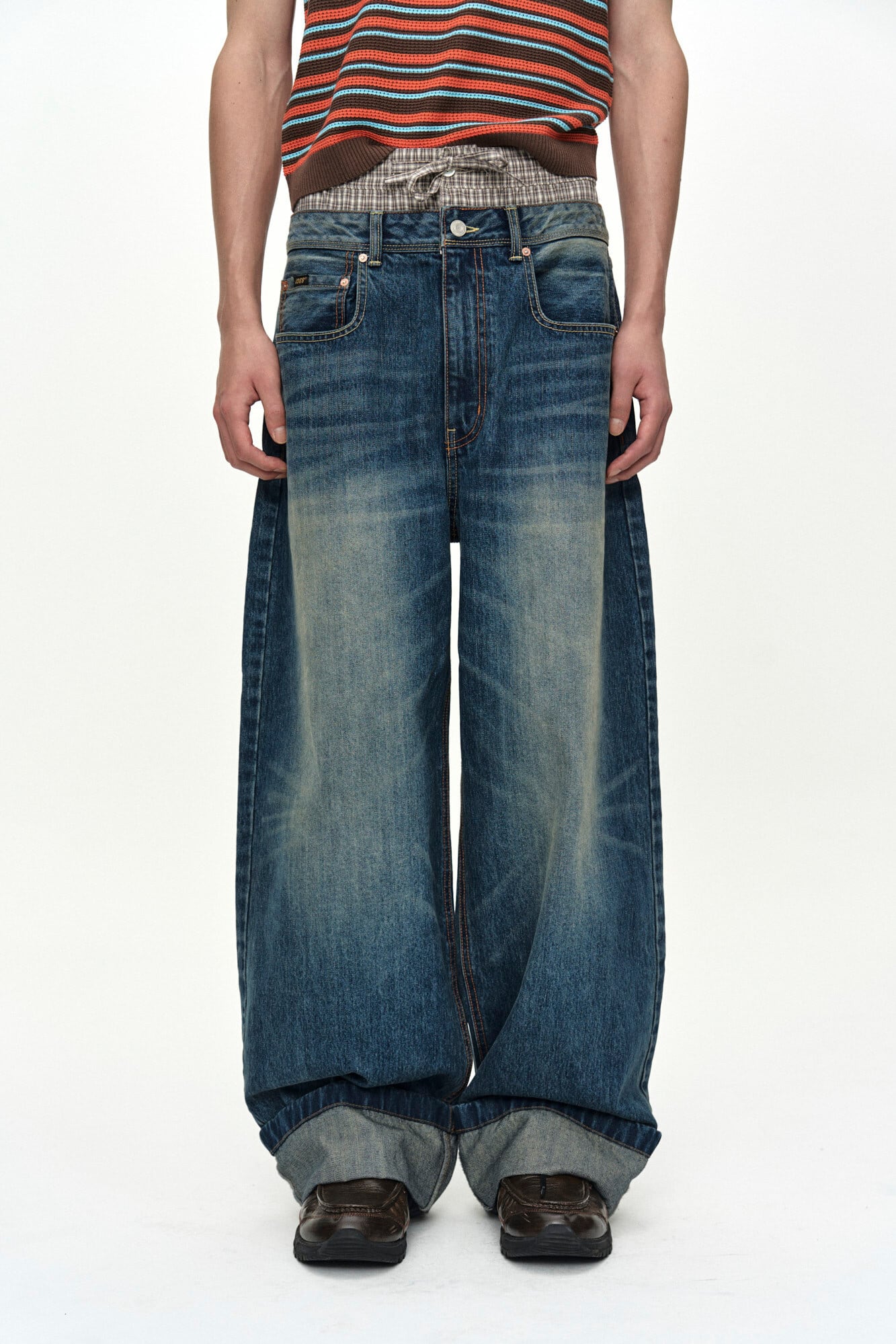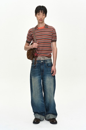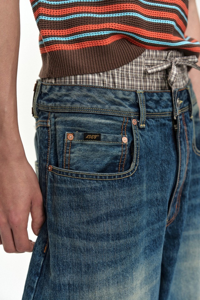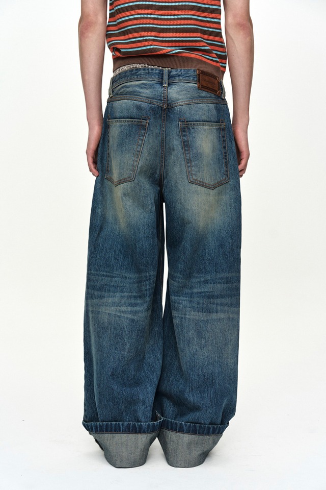 [ANDERSSON BELL] UNISEX TRUNK LAYERED WIDE-LEG JEANS apa910u(BLUE) 正規品 韓国ブランド 韓国通販 韓国代行 韓国ファッション ANDERSSONBELL アンダーソンベル 日本 店舗