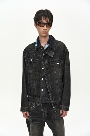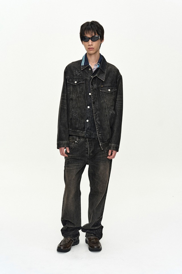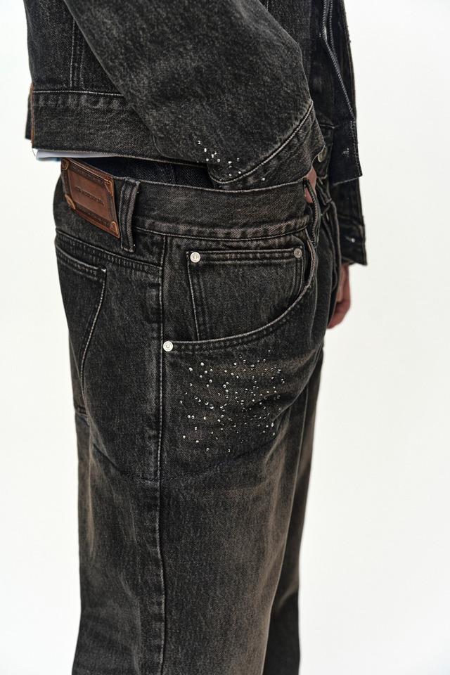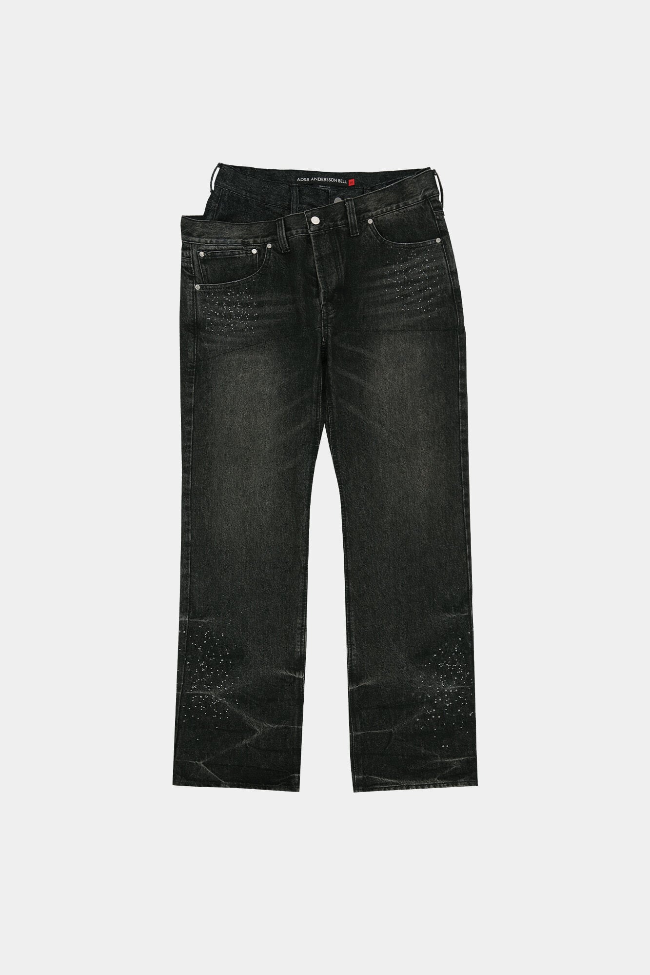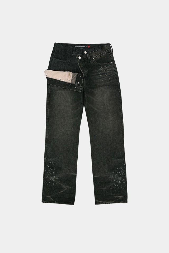 [ANDERSSON BELL] UNISEX ASYMMETRIC LAYERED HOT-FIX WIDE-LEG JEANS apa912u(BLACK) 正規品 韓国ブランド 韓国通販 韓国代行 韓国ファッション ANDERSSONBELL アンダーソンベル 日本 店舗
