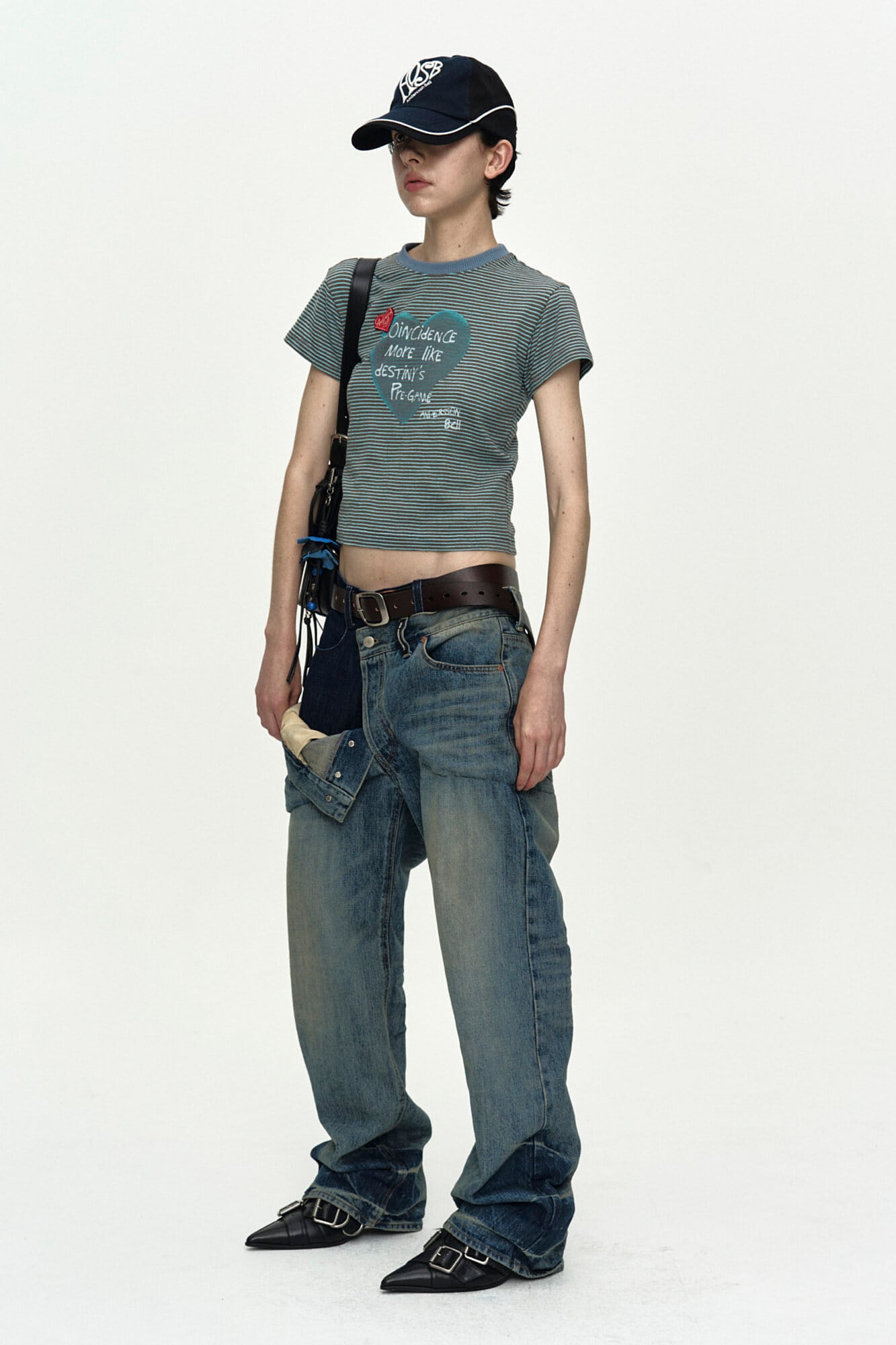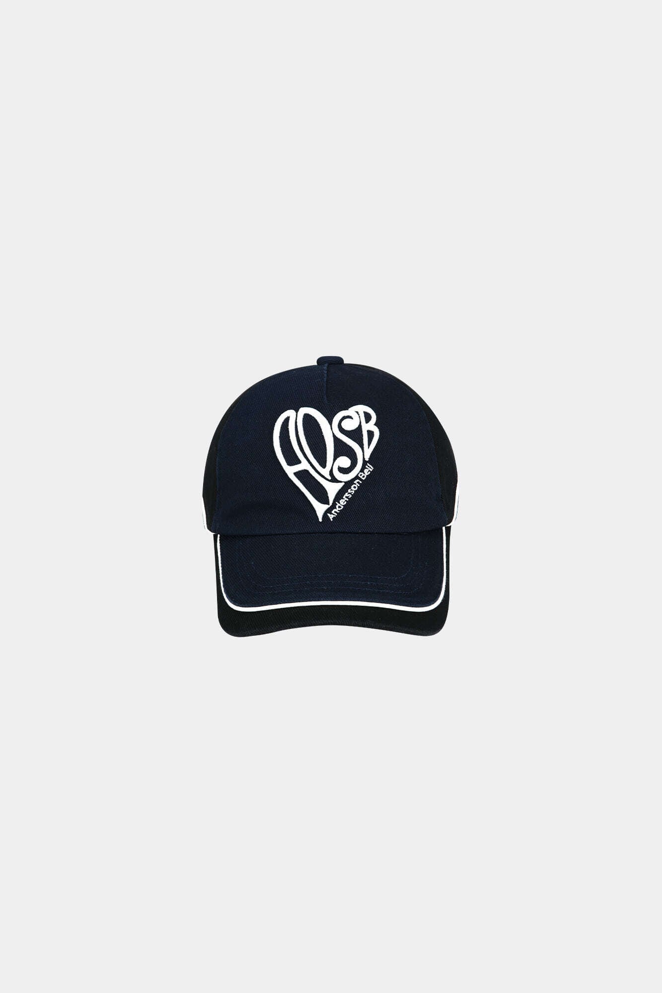 [ANDERSSON BELL] (ESSENTIAL) UNISEX HEART LOGO EMBROIDERY LAYERED CAP aaa524u(BLACK/NAVY)