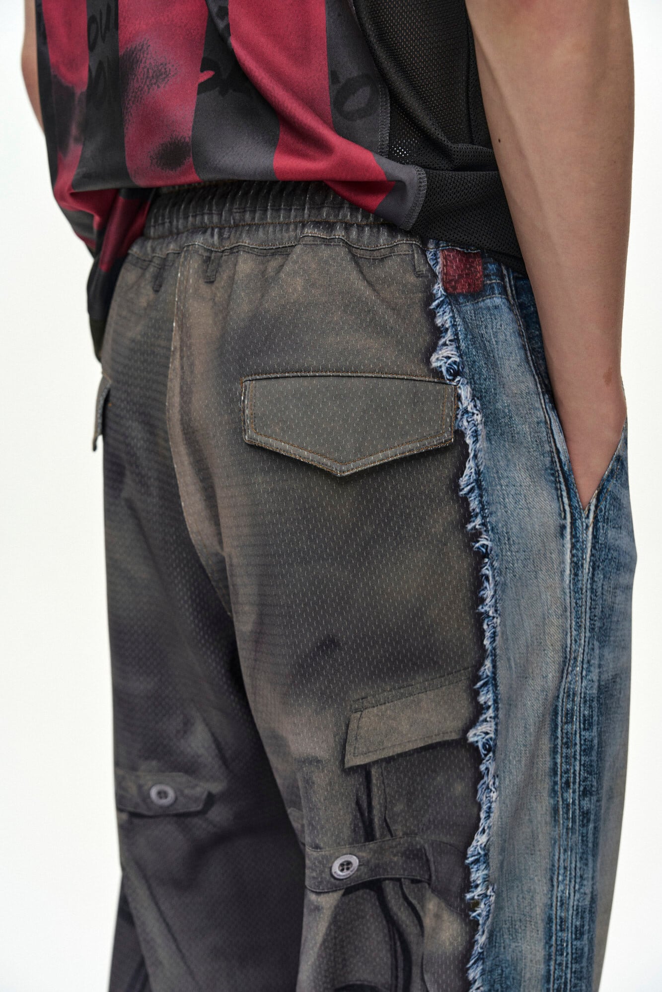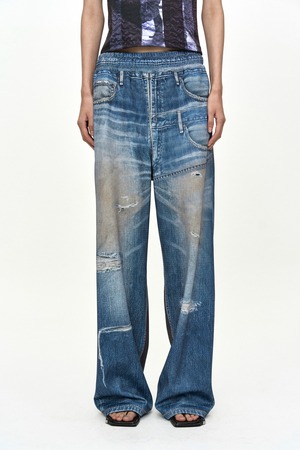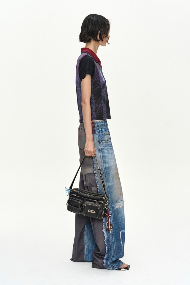 [ANDERSSON BELL] DENIM & CARGO TROMPE L'OEIL MESH PANTS apa922u(MID BLUE/KHAKI) 正規品 韓国ブランド 韓国通販 韓国代行 韓国ファッション ANDERSSONBELL アンダーソンベル 日本 店舗