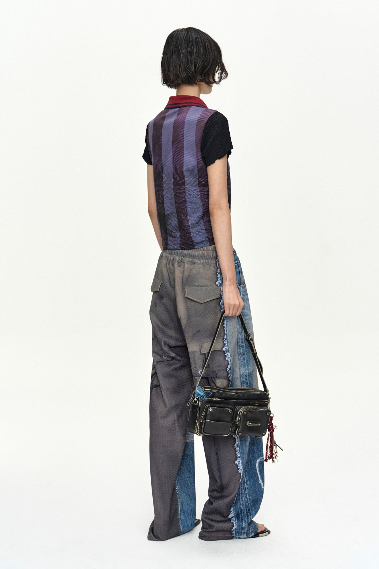 [ANDERSSON BELL] DENIM & CARGO TROMPE L'OEIL MESH PANTS apa922u(MID BLUE/KHAKI)