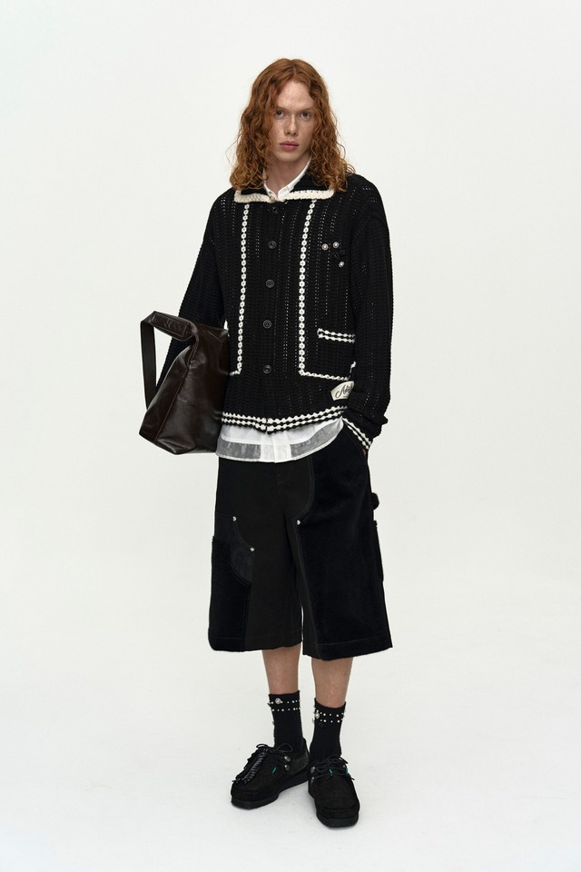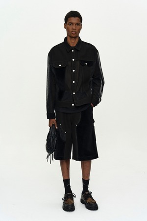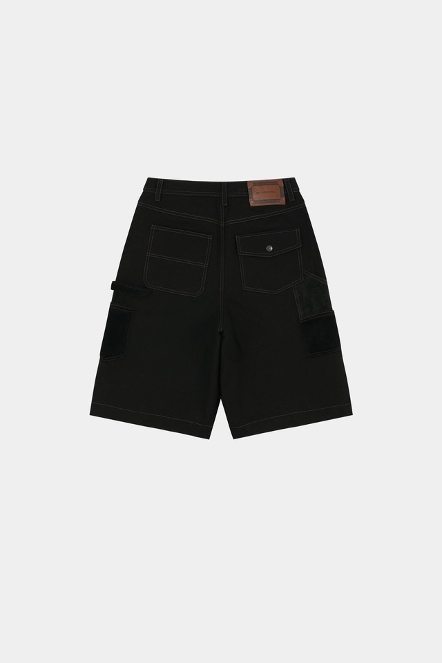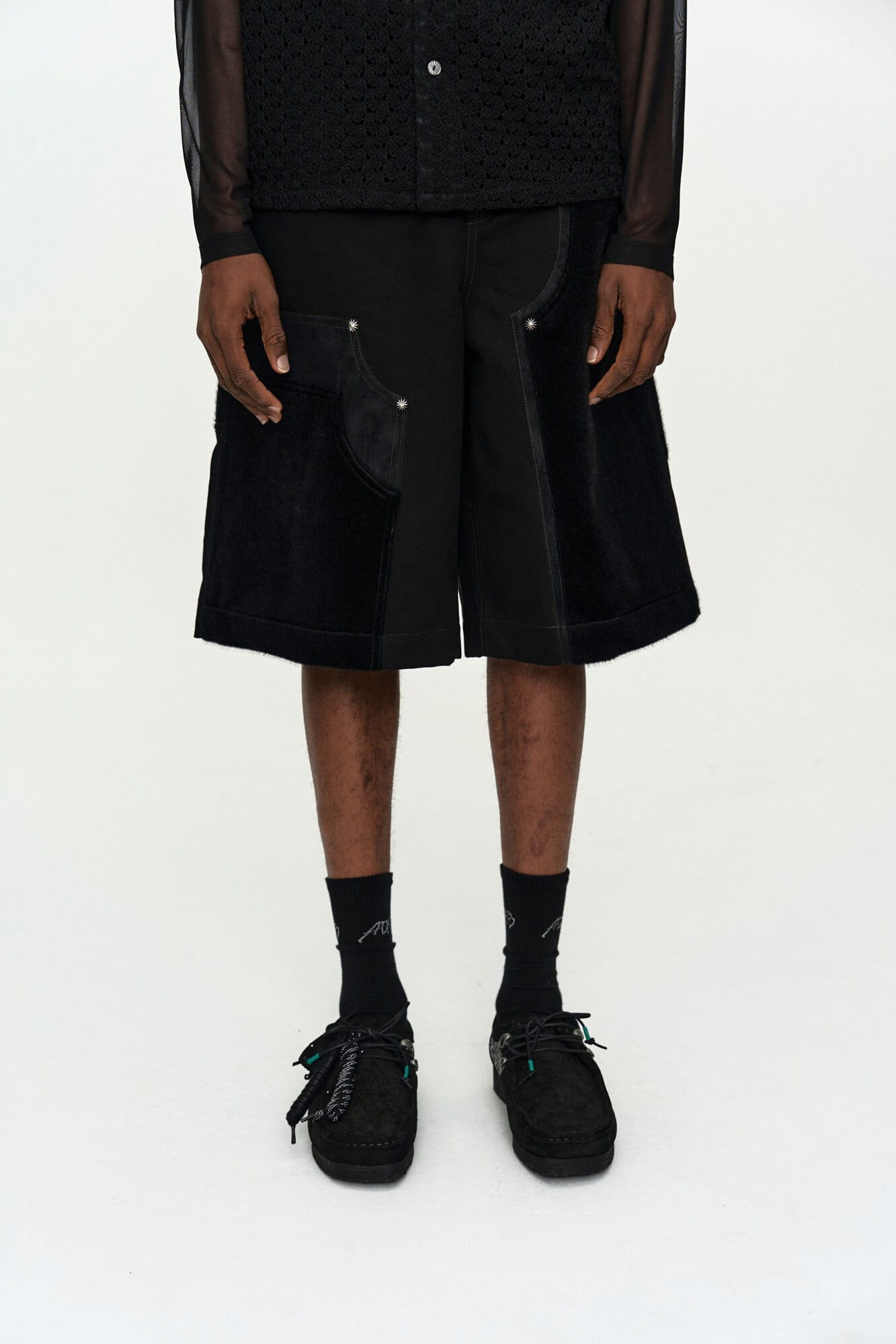 [ANDERSSON BELL] FAUX PONY PATCHWORK CARPENTER SHORTS apa867m(BLACK)