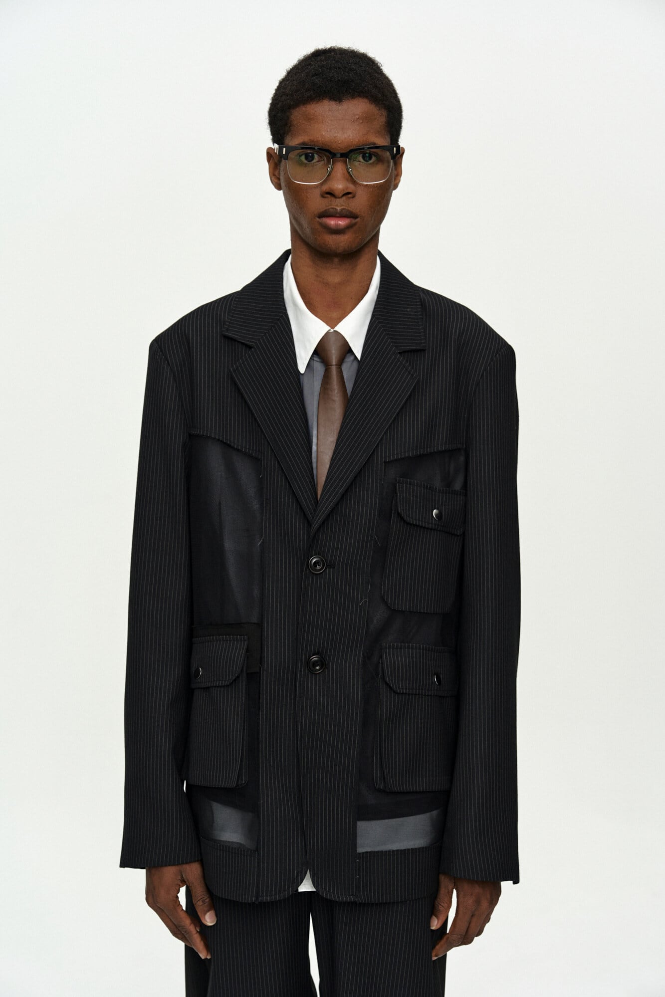 [ANDERSSON BELL] MULTI POCKET SHEER TAILORED JACKET awa748m(BLACK)