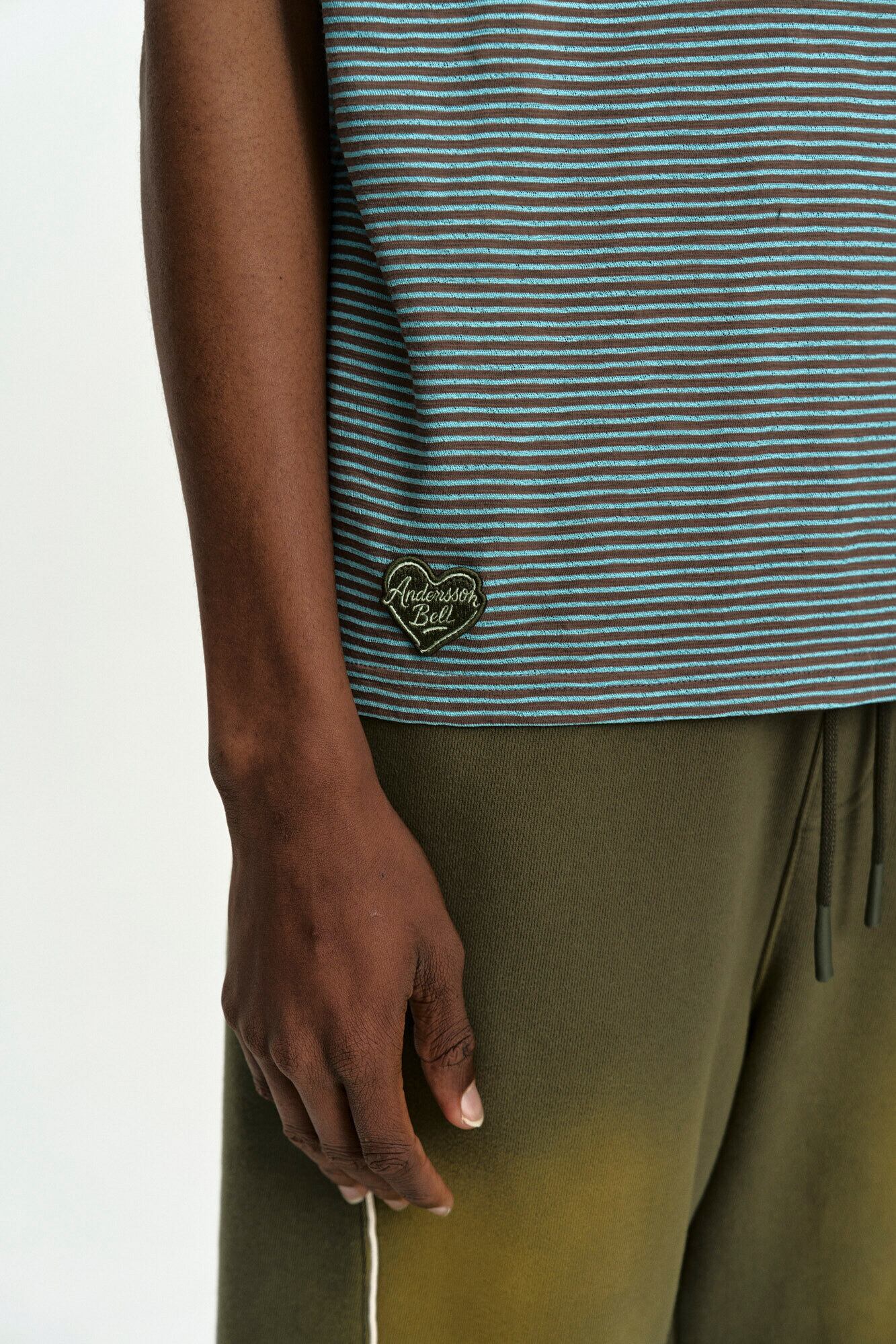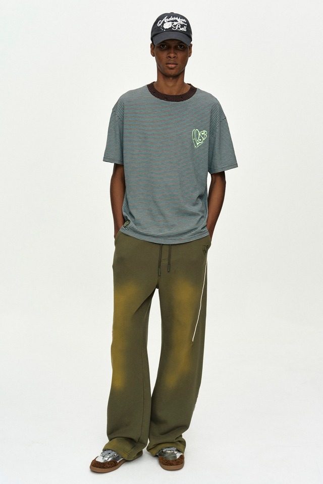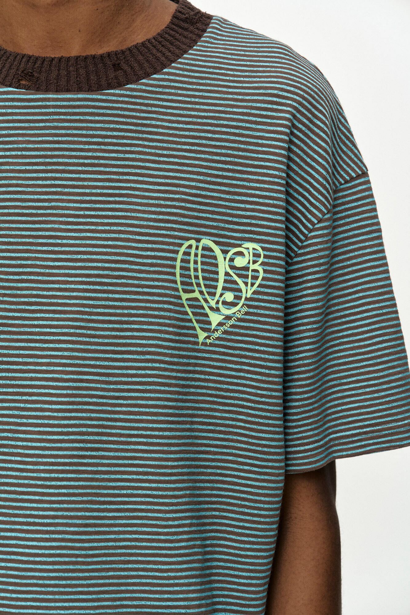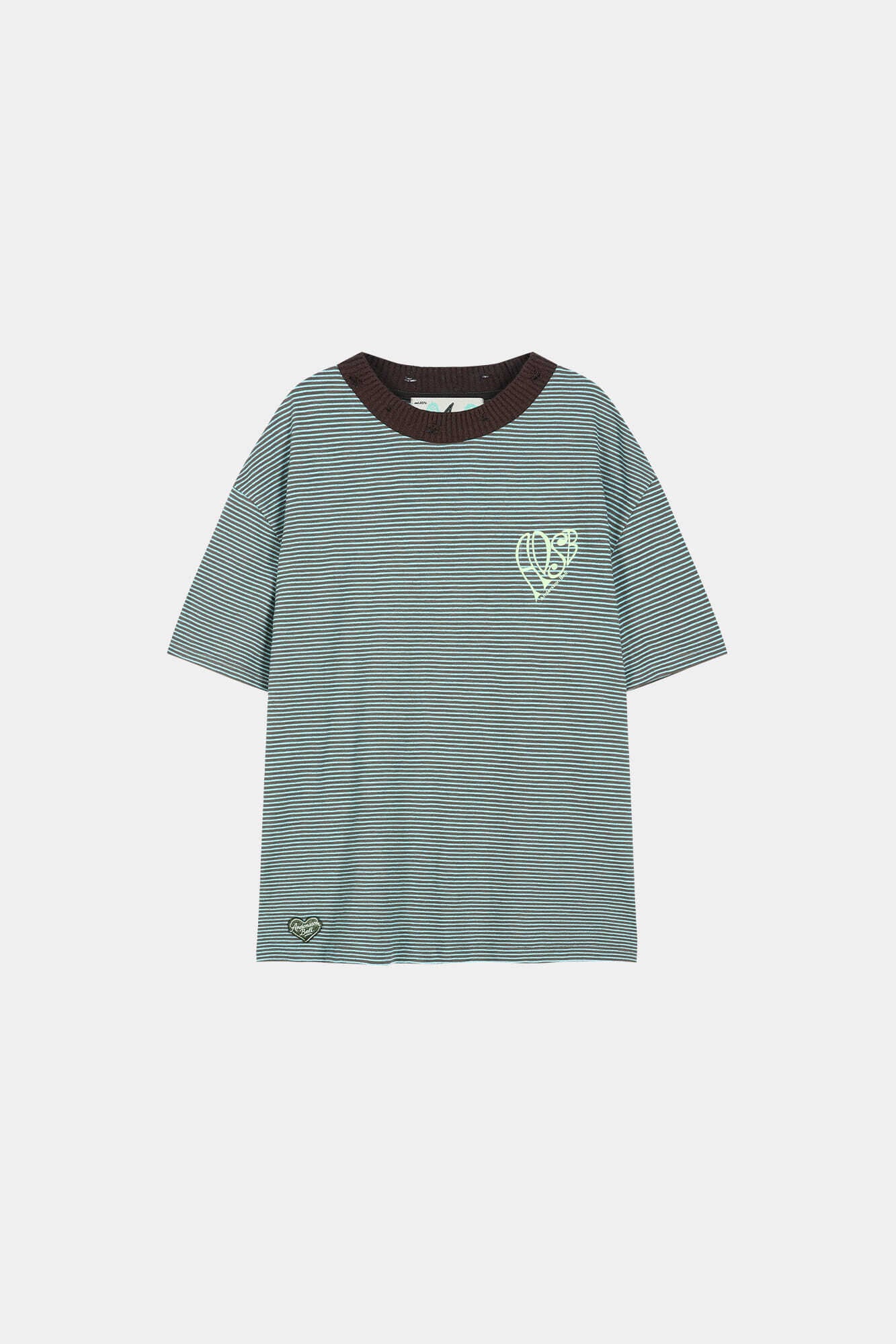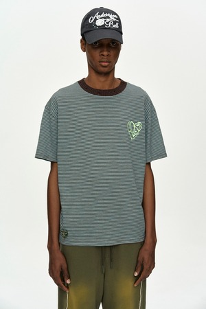 [ANDERSSON BELL] (ESSENTIAL) HEART LOGO STRIPE T-SHIRT atb1458m(CHOCO/MINT)