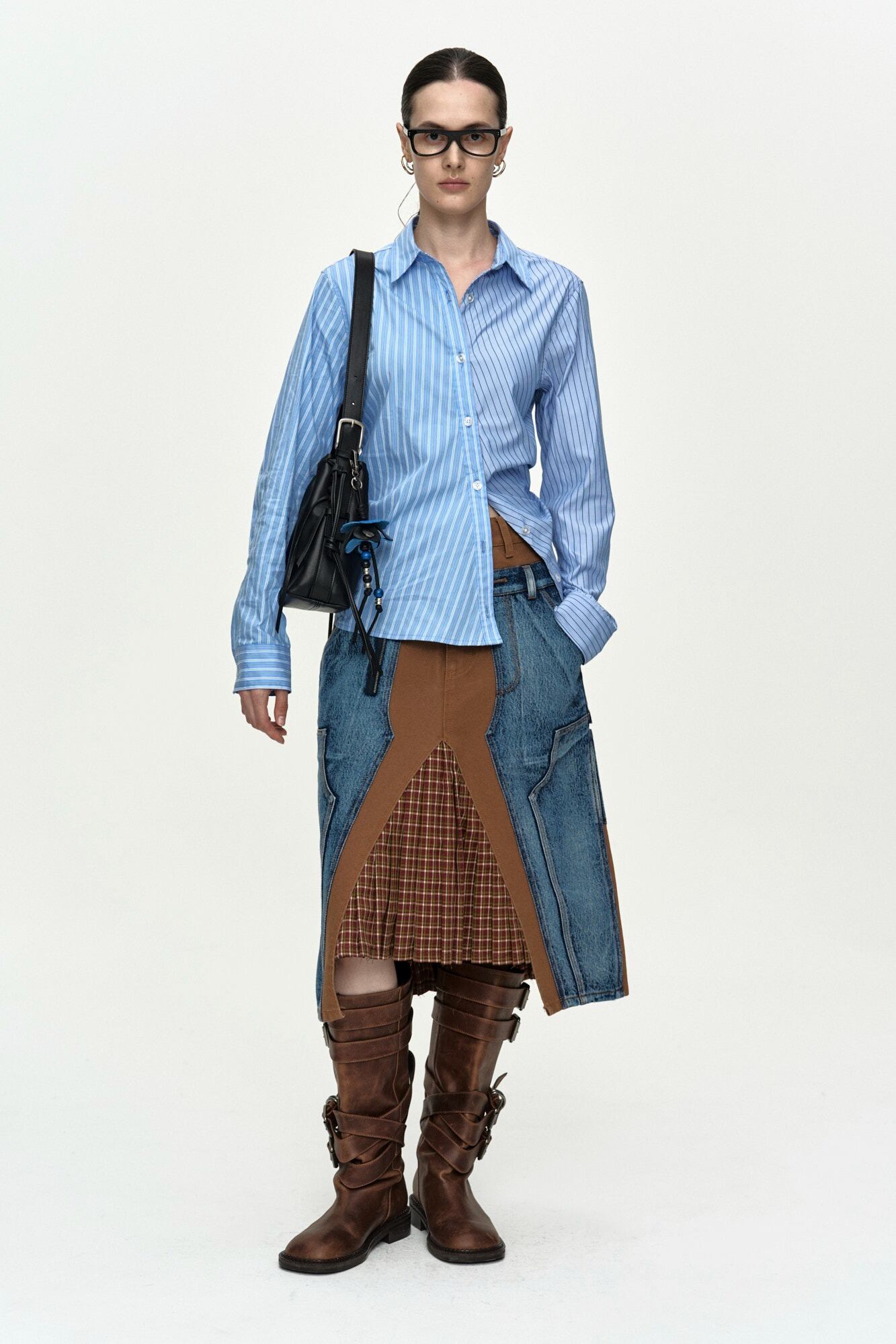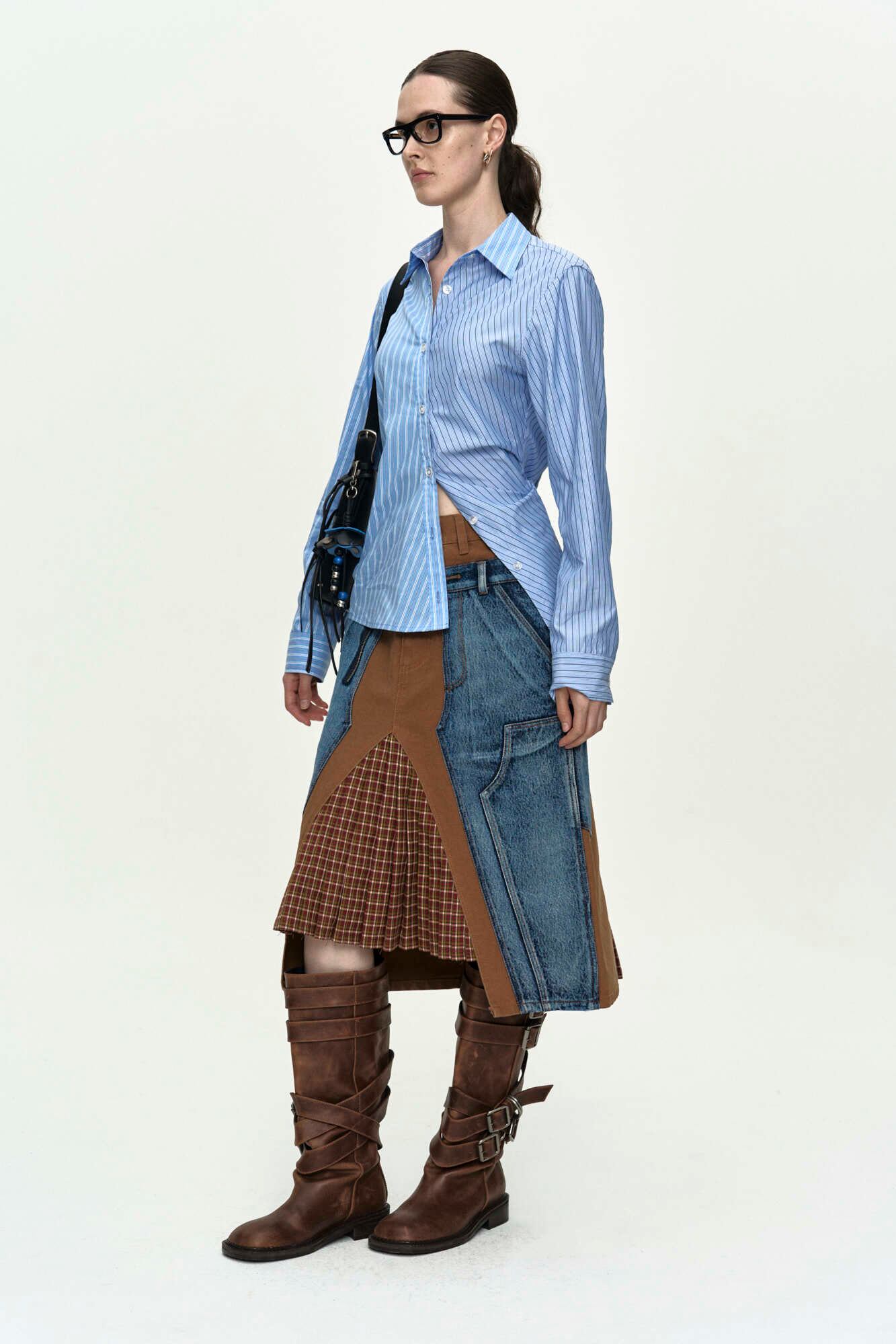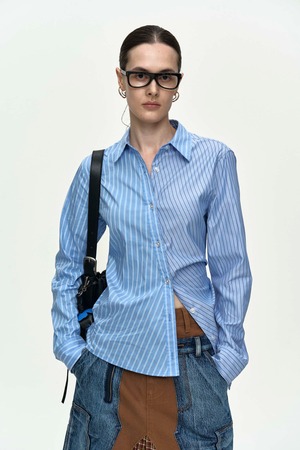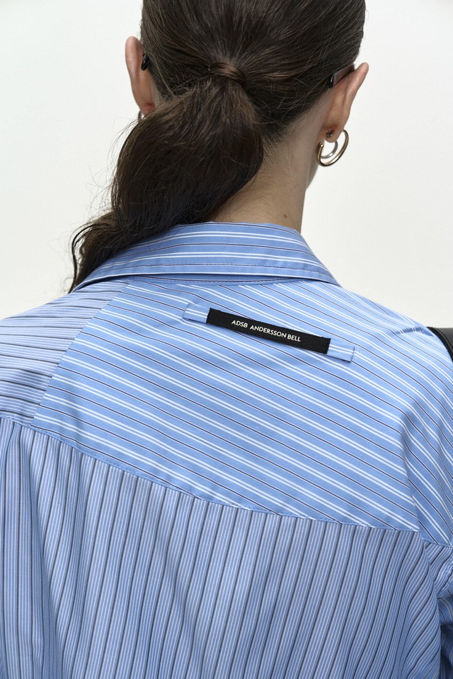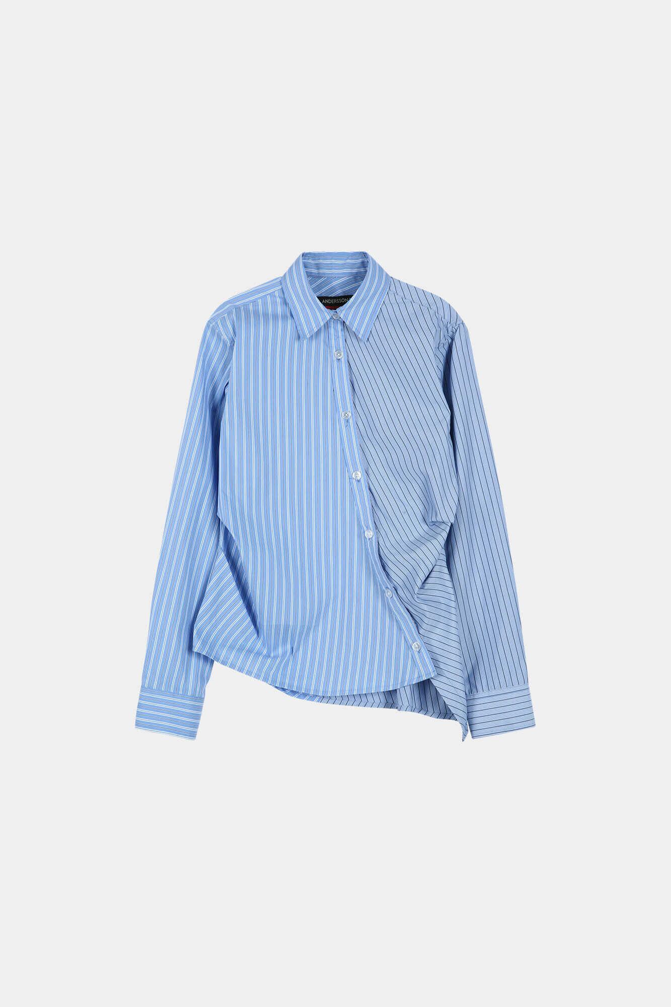 [ANDERSSON BELL] BREEZE STRIPED TWIST-TUCK SHIRT atb1515w(BLUE)