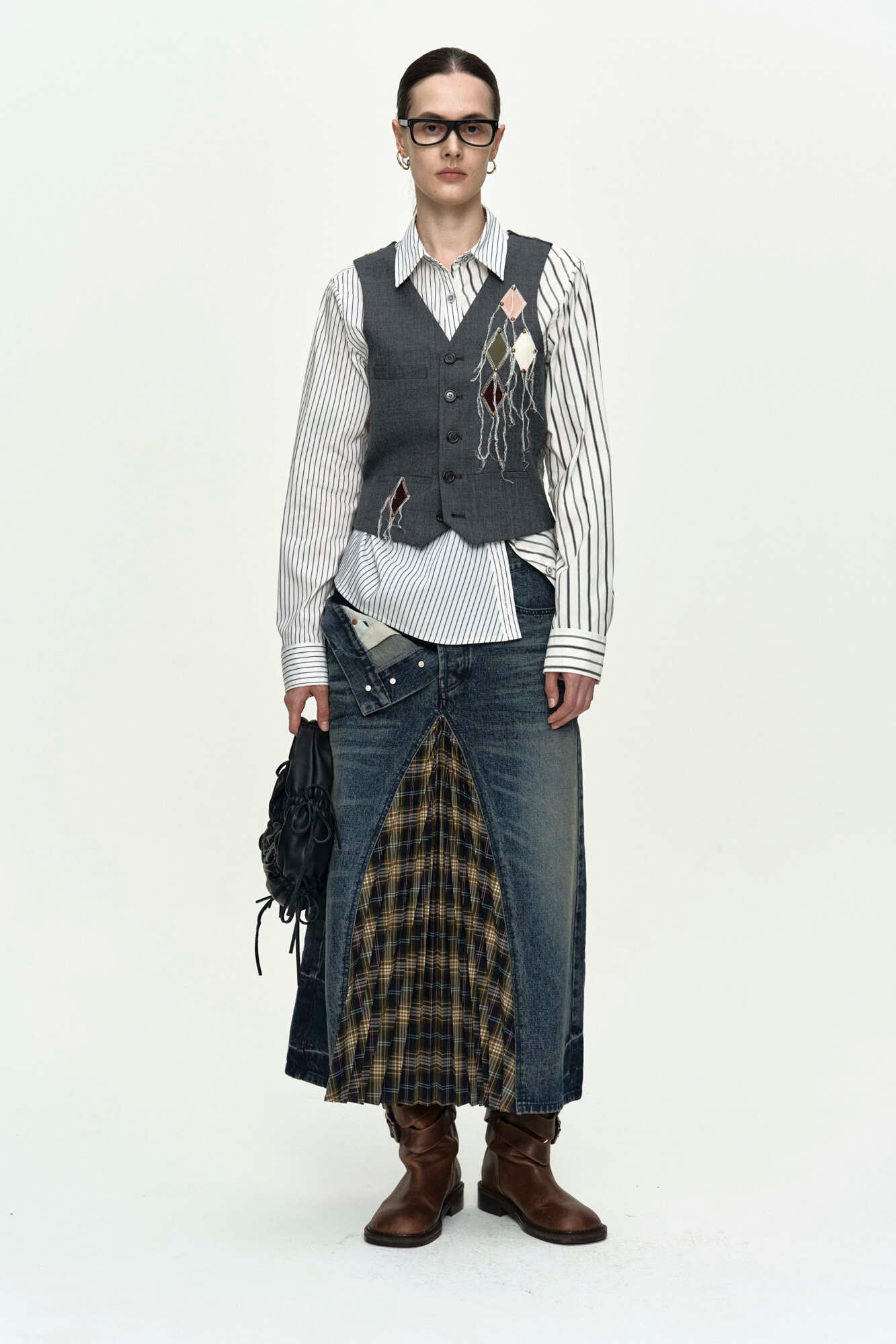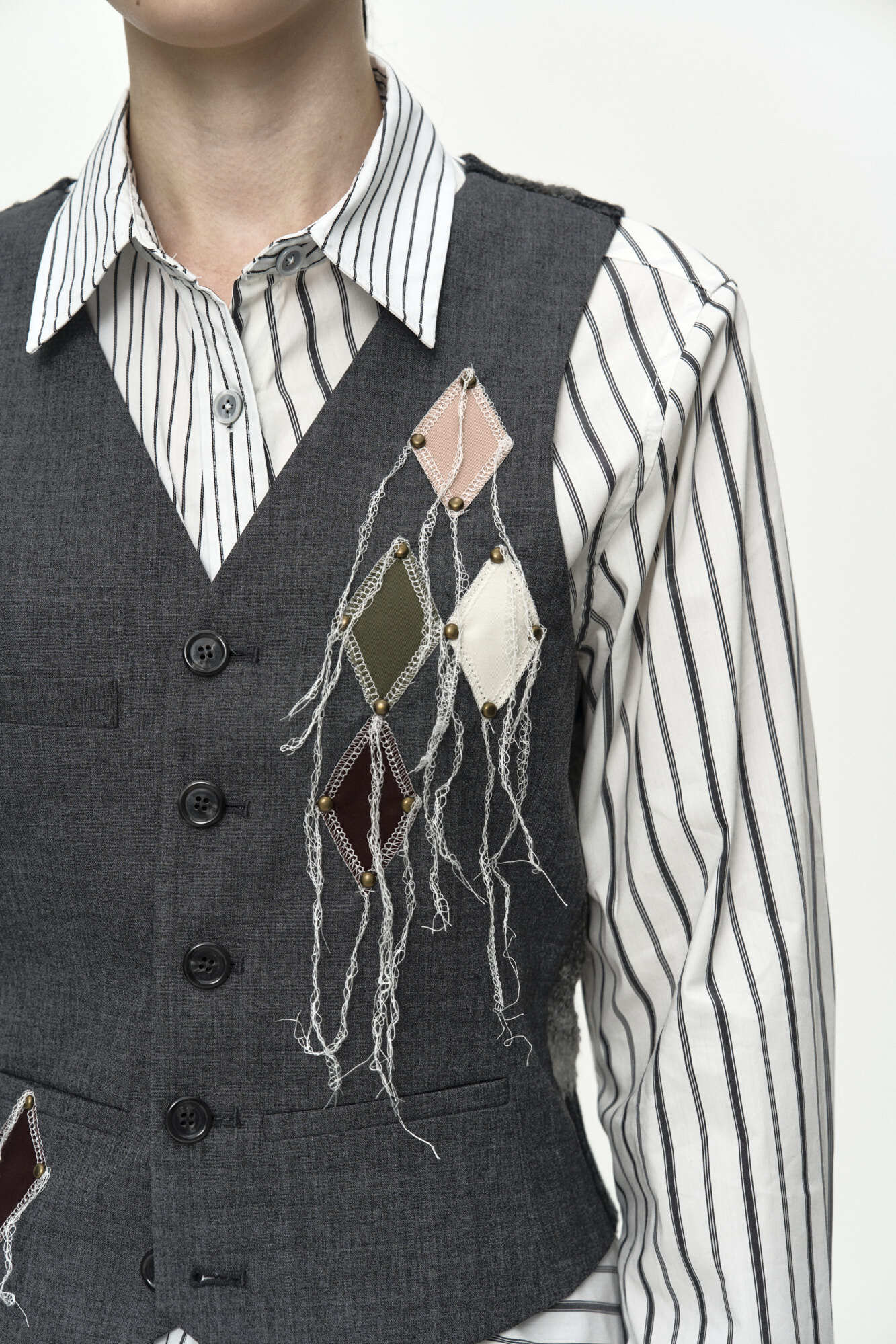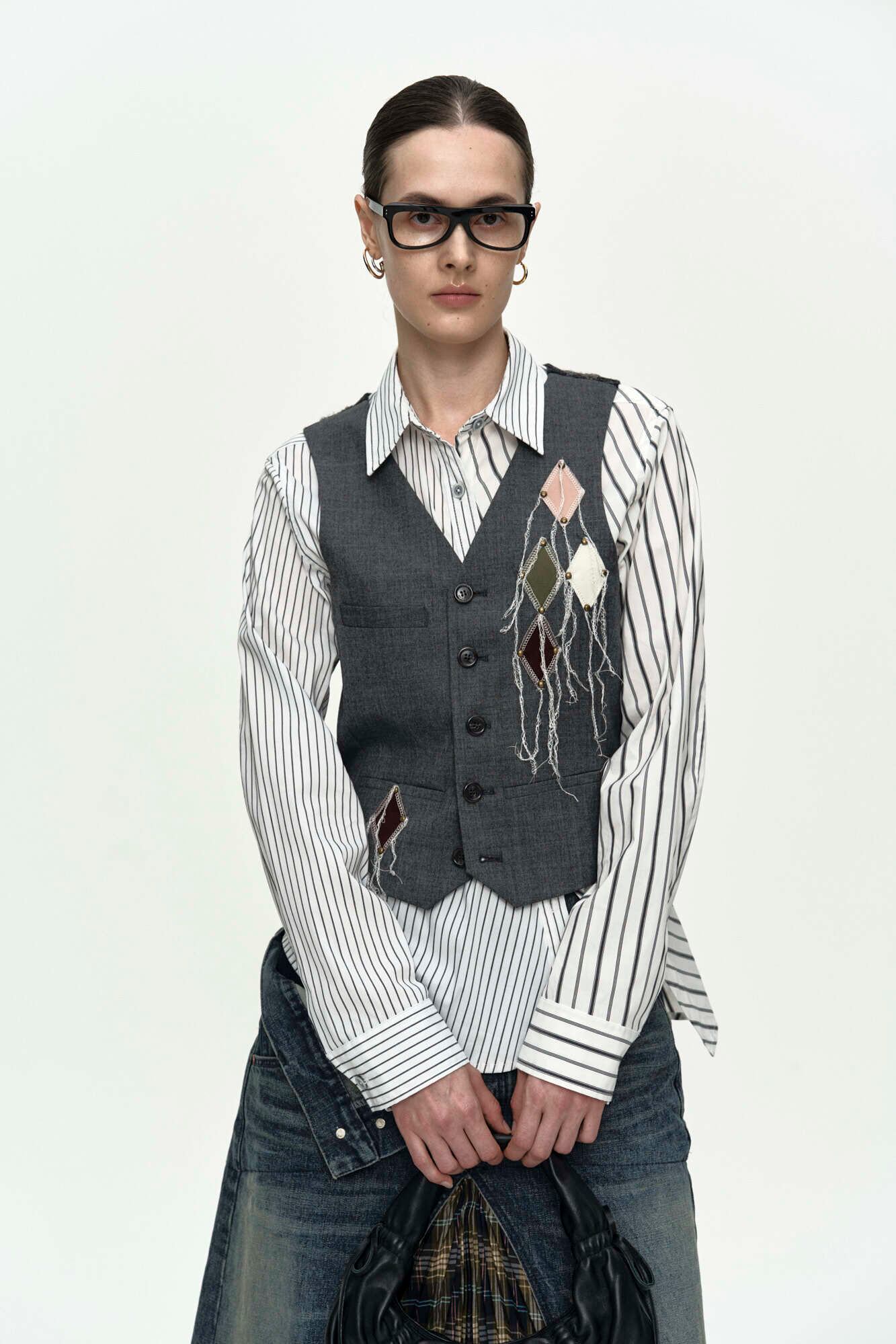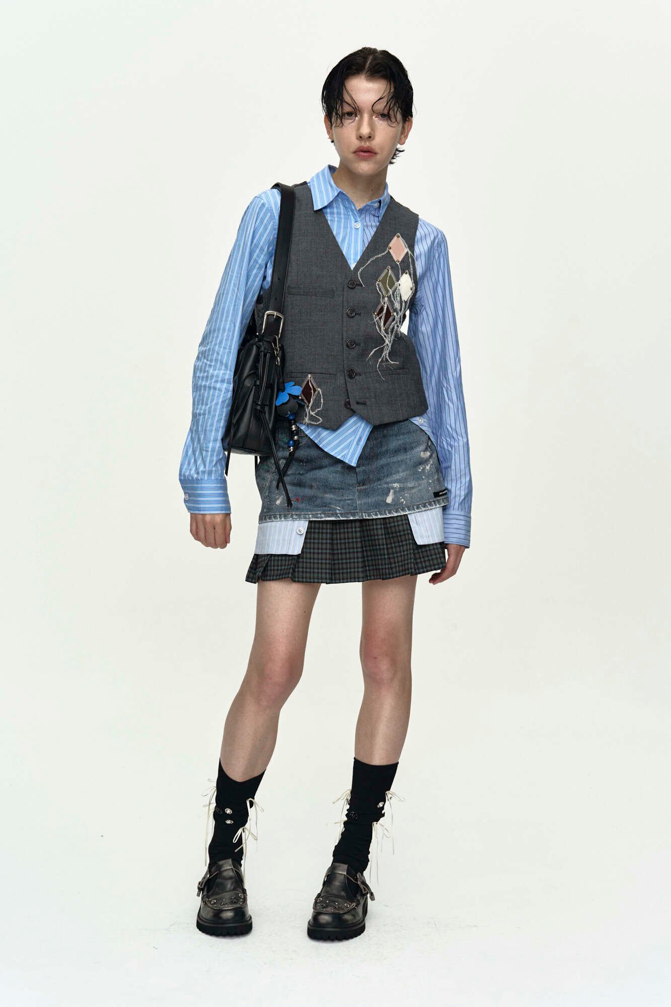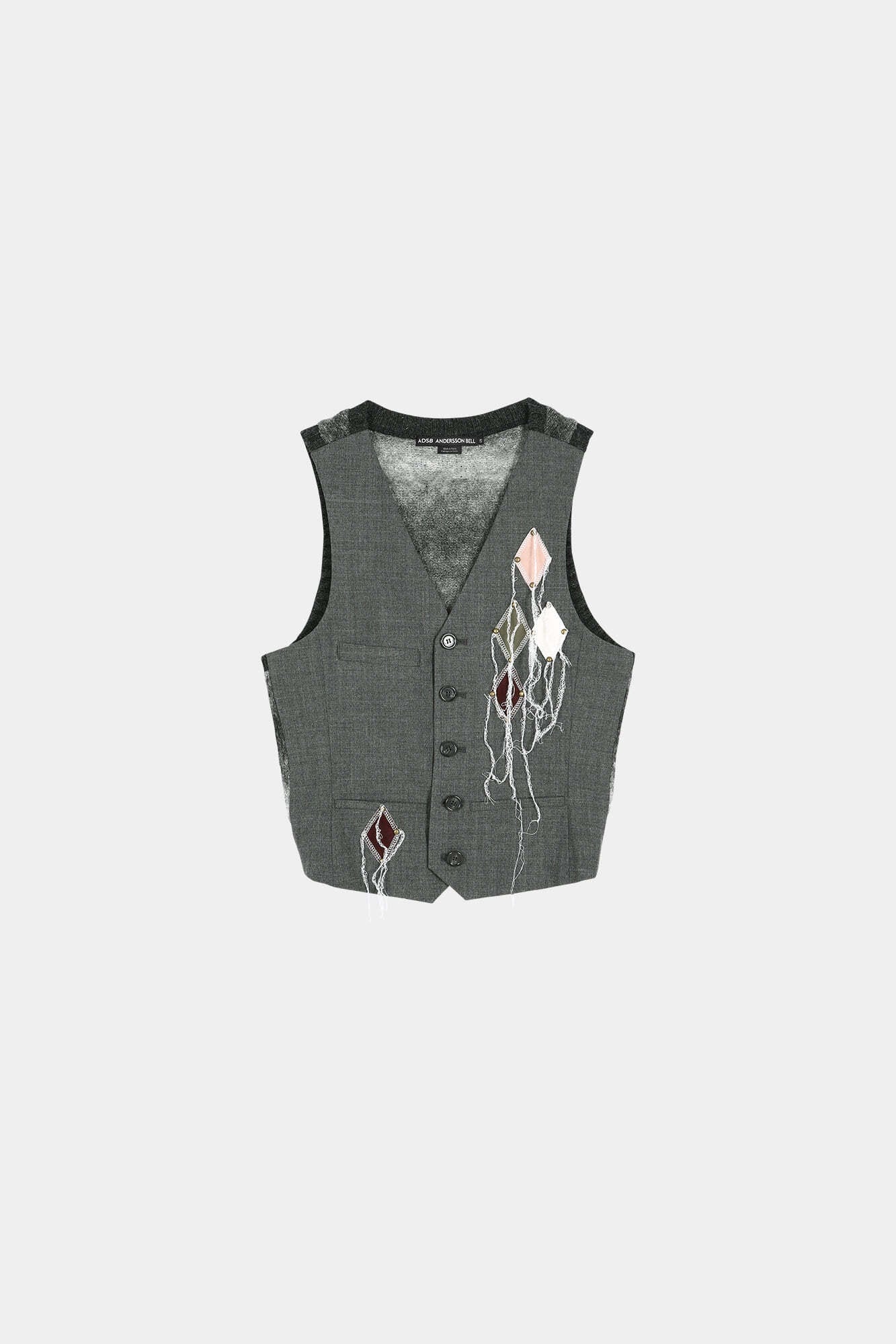 [ANDERSSON BELL] BACK KNIT ARGYLE PATCHED VEST atb1466w(GREY)
