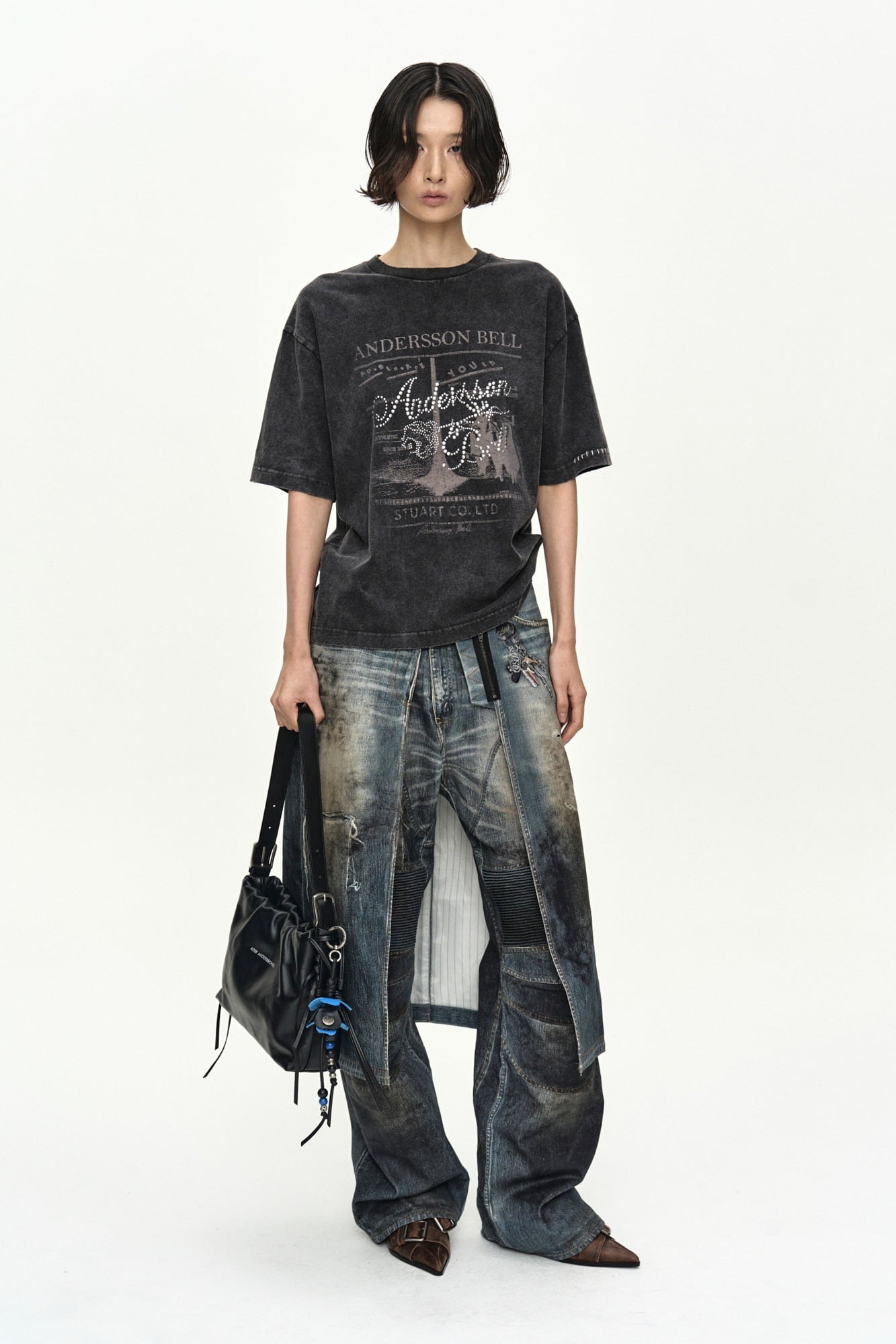 [ANDERSSON BELL] DENIM TROMPE-L'OEIL GRAPHIC WRAP SKIRT apa918w(MID BLUE) 正規品 韓国ブランド 韓国通販 韓国代行 韓国ファッション ANDERSSONBELL アンダーソンベル 日本 店舗