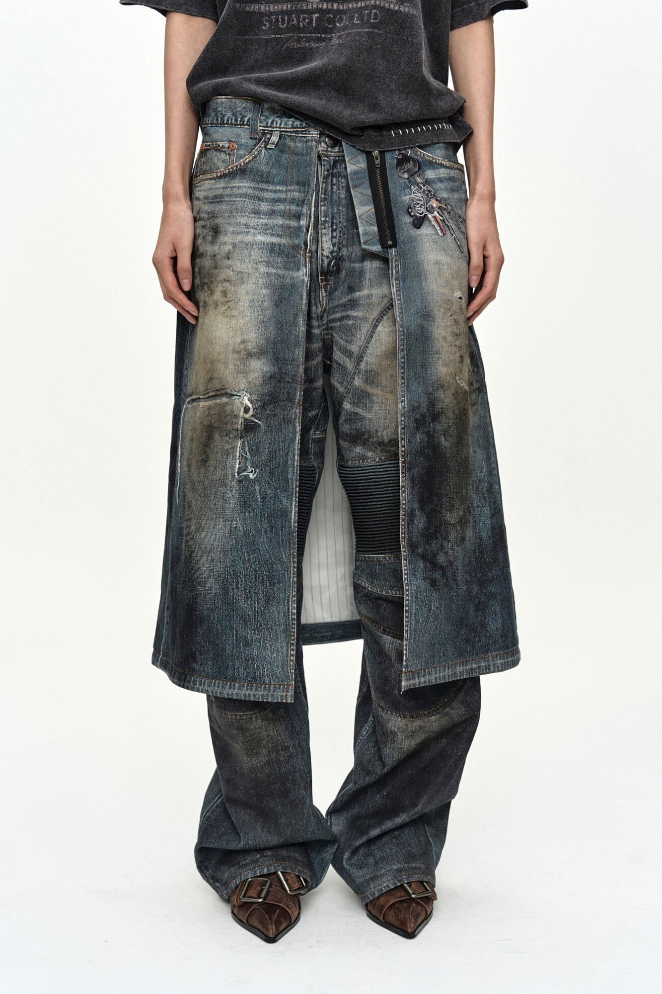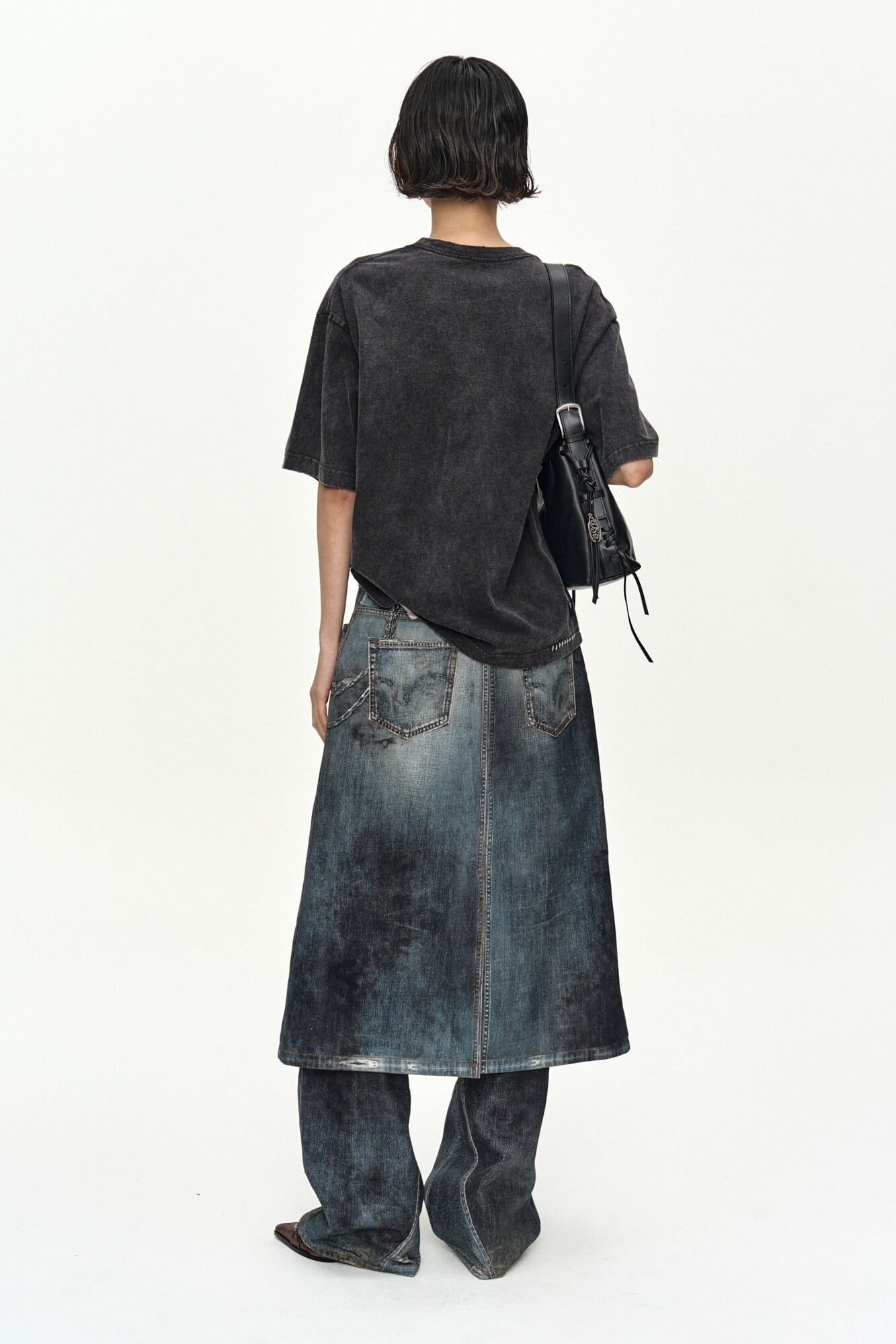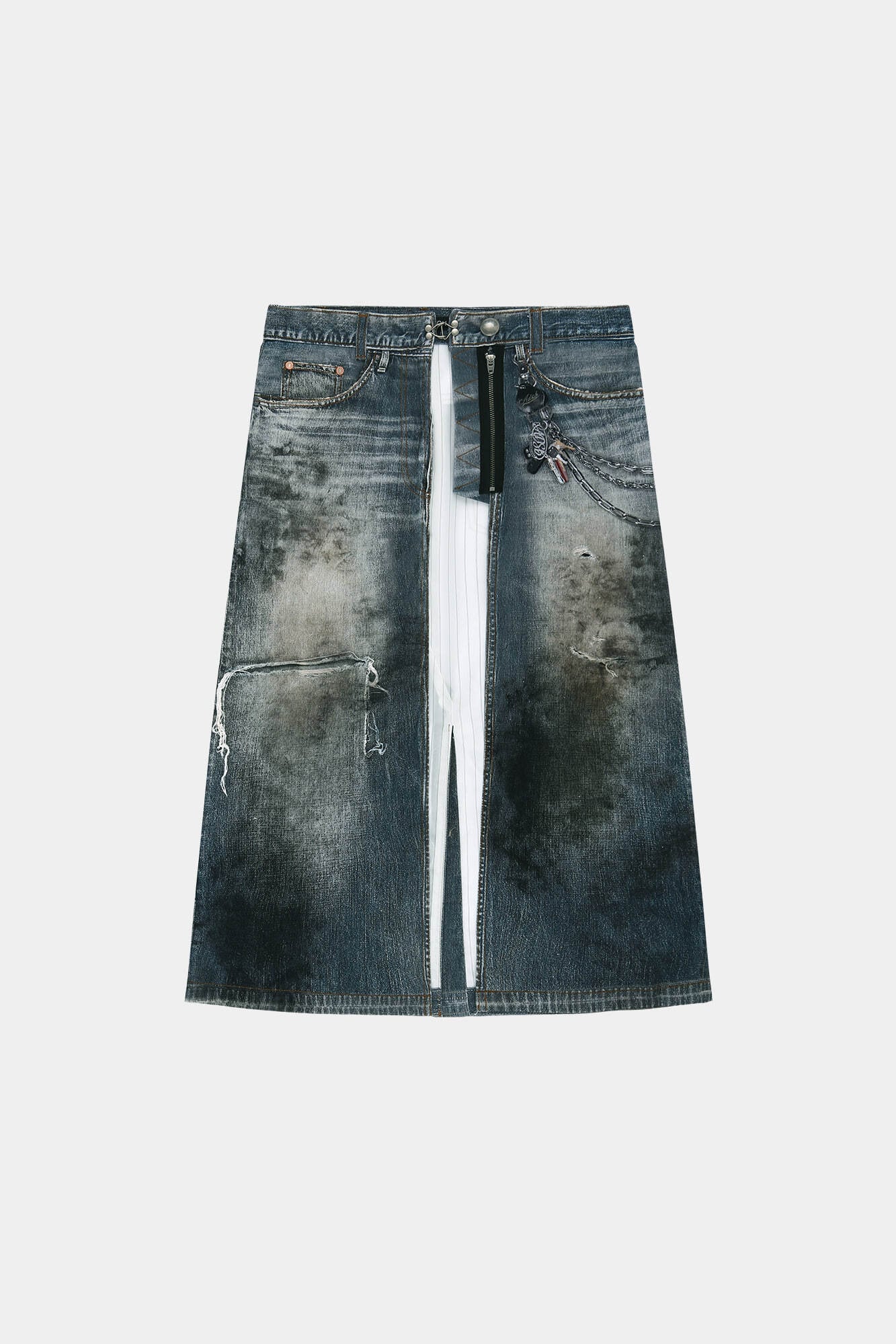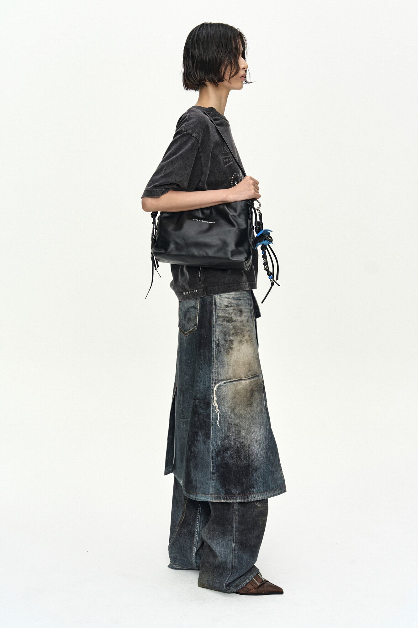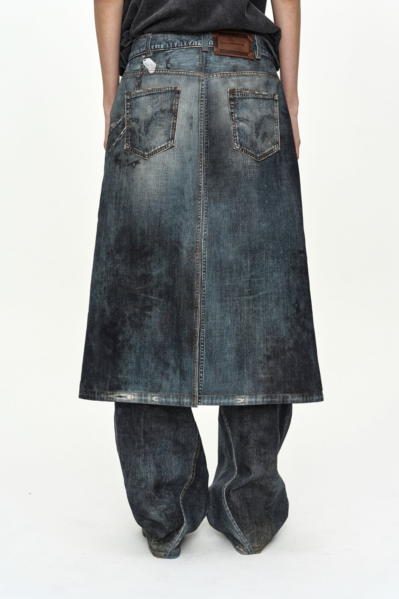 [ANDERSSON BELL] DENIM TROMPE-L'OEIL GRAPHIC WRAP SKIRT apa918w(MID BLUE)