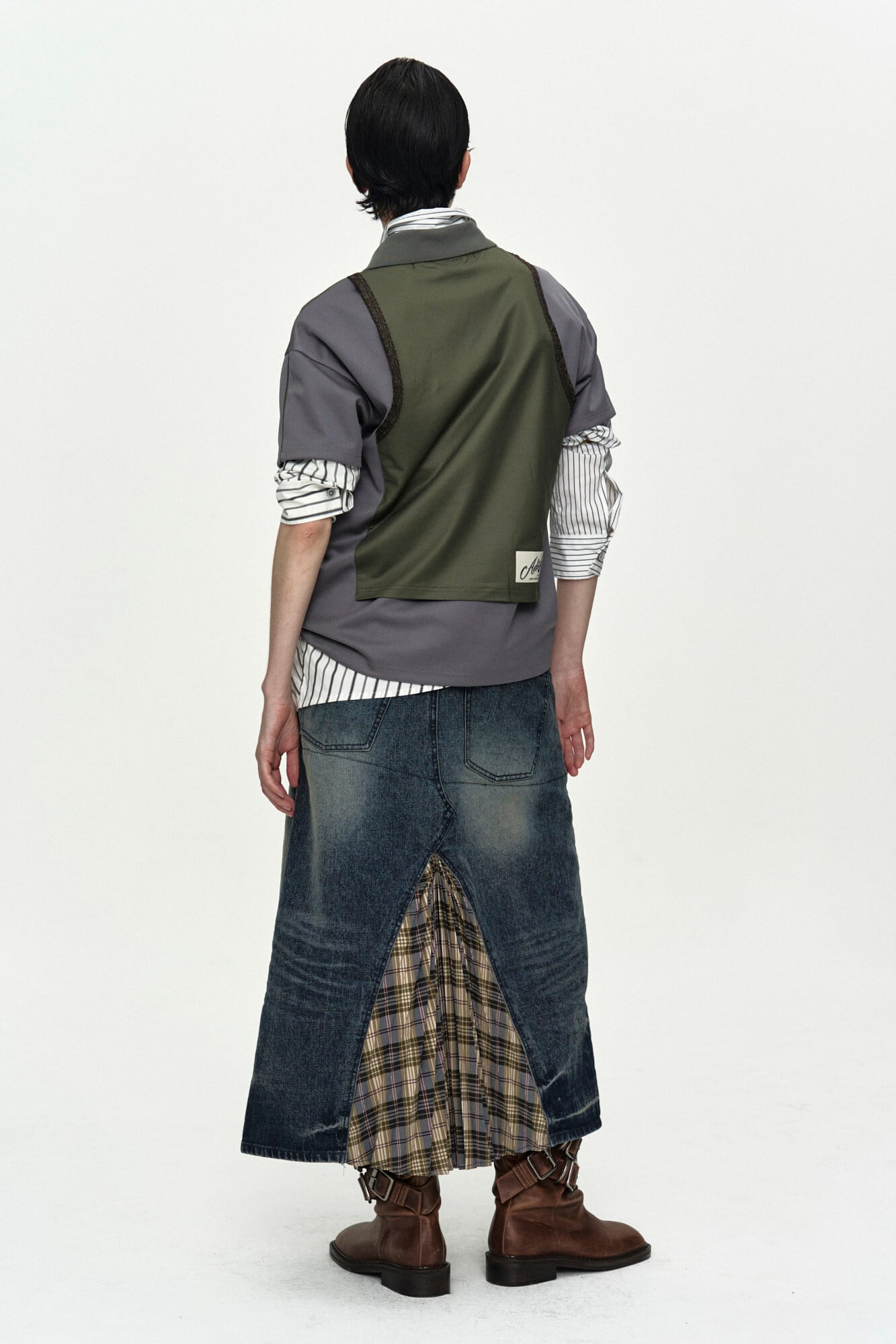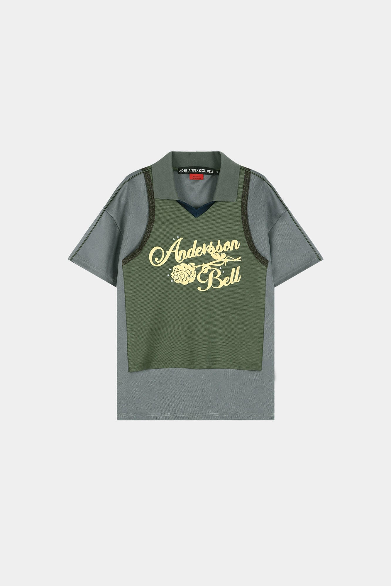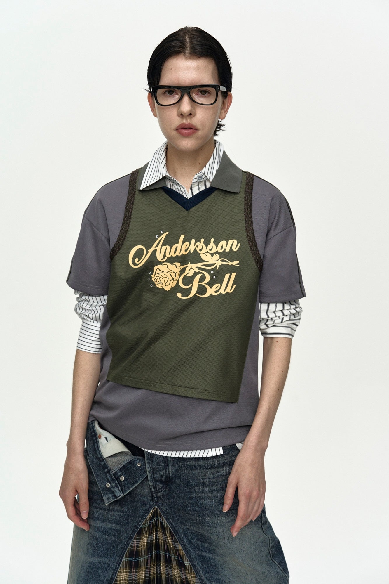 [ANDERSSON BELL] LACE TRIMMED POLO JERSEY TOP atb1488w(GREY/KHAKI)