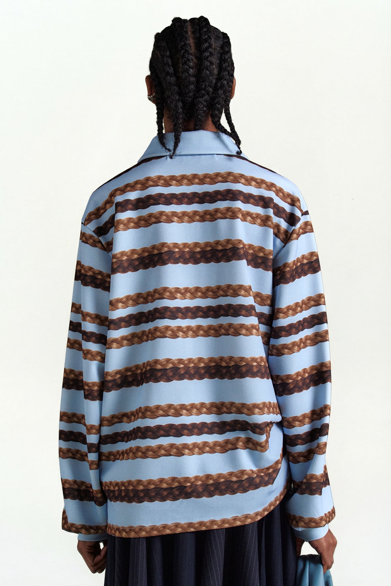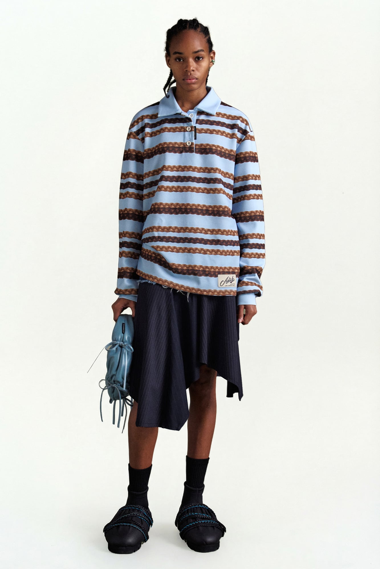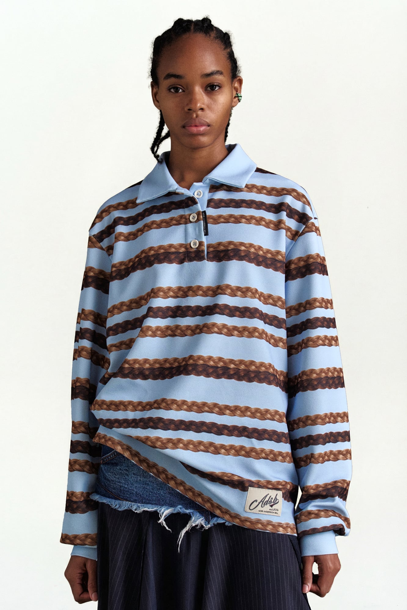 [ANDERSSON BELL] HAIR BRAID STRIPE COLLAR T-SHIRT atb1264w(BLUE)