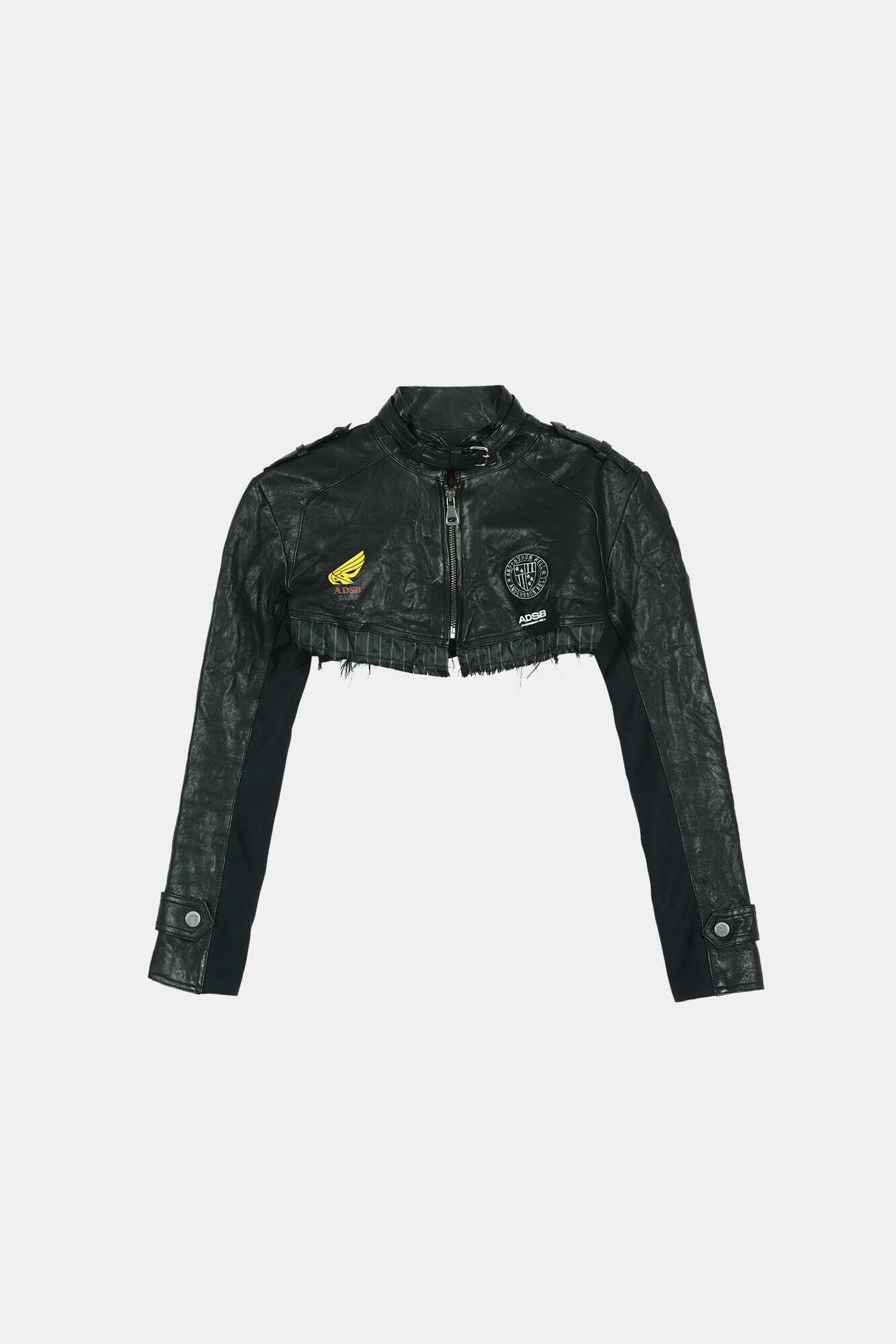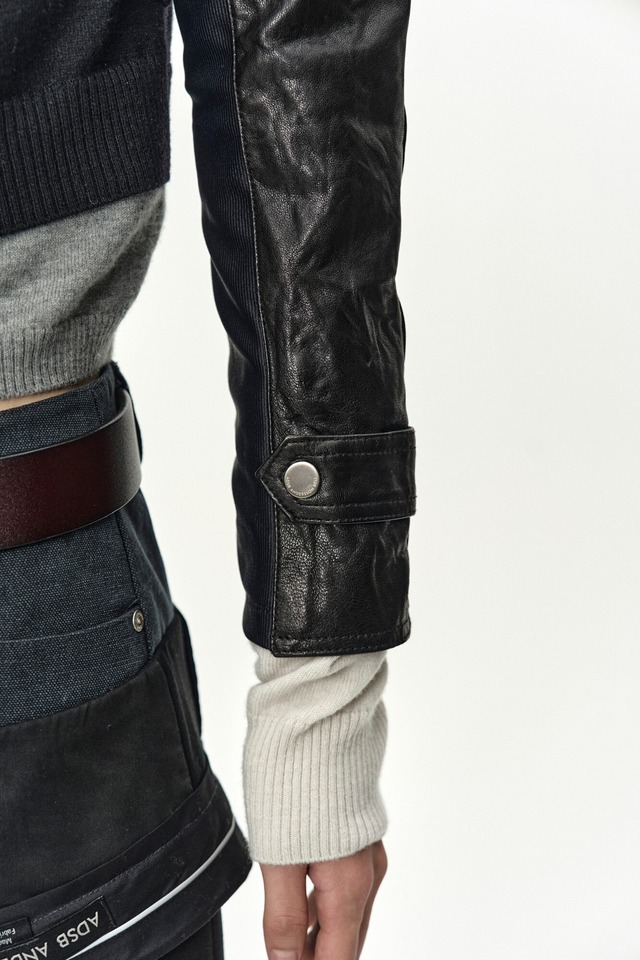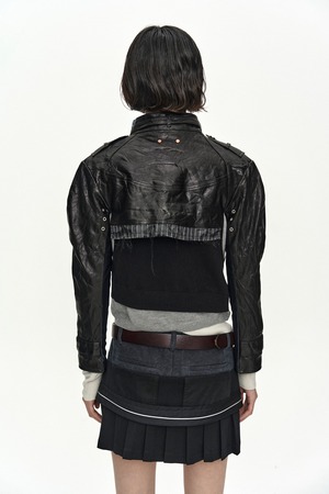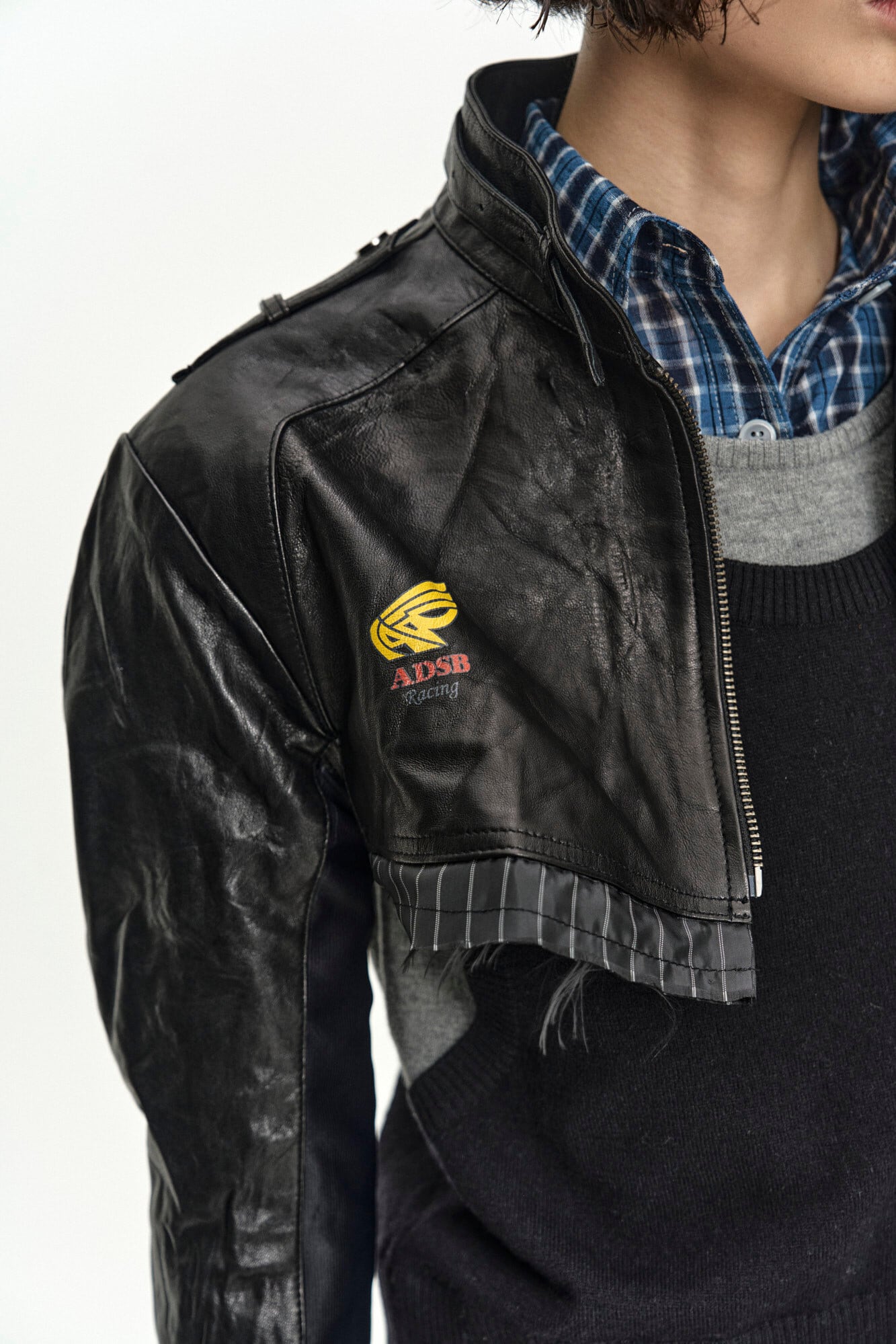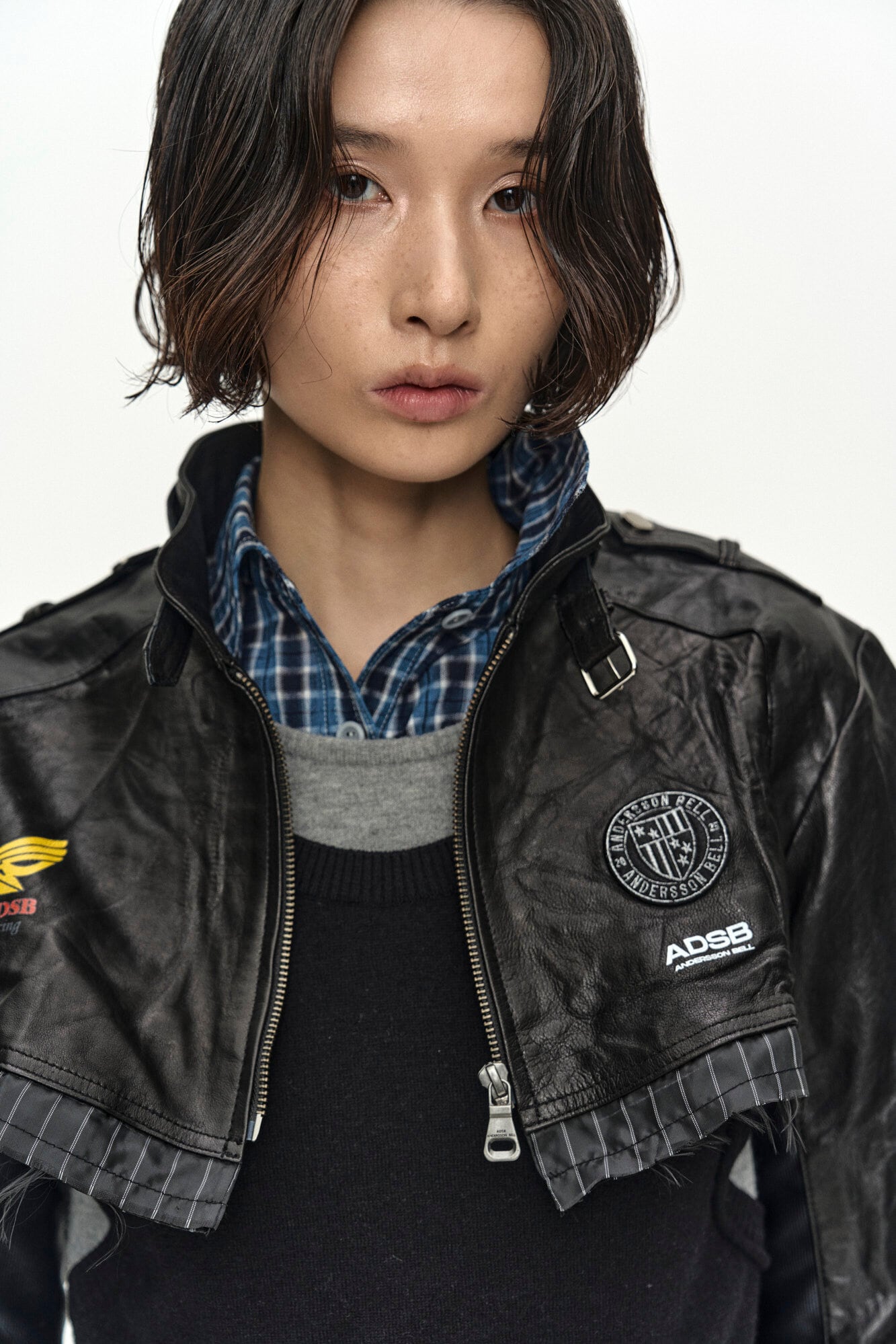 [ANDERSSON BELL] CUT-OUT SHRUNKEN RACING LEATHER JACKET awa765w(BLACK)