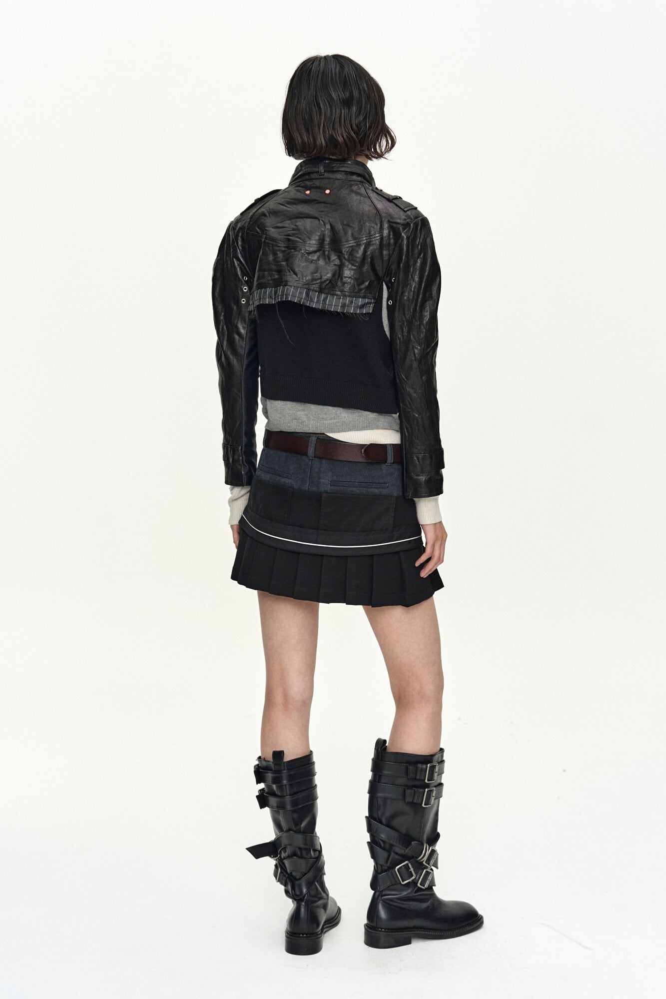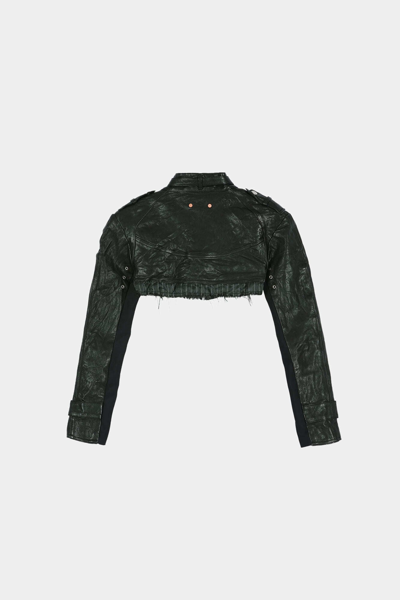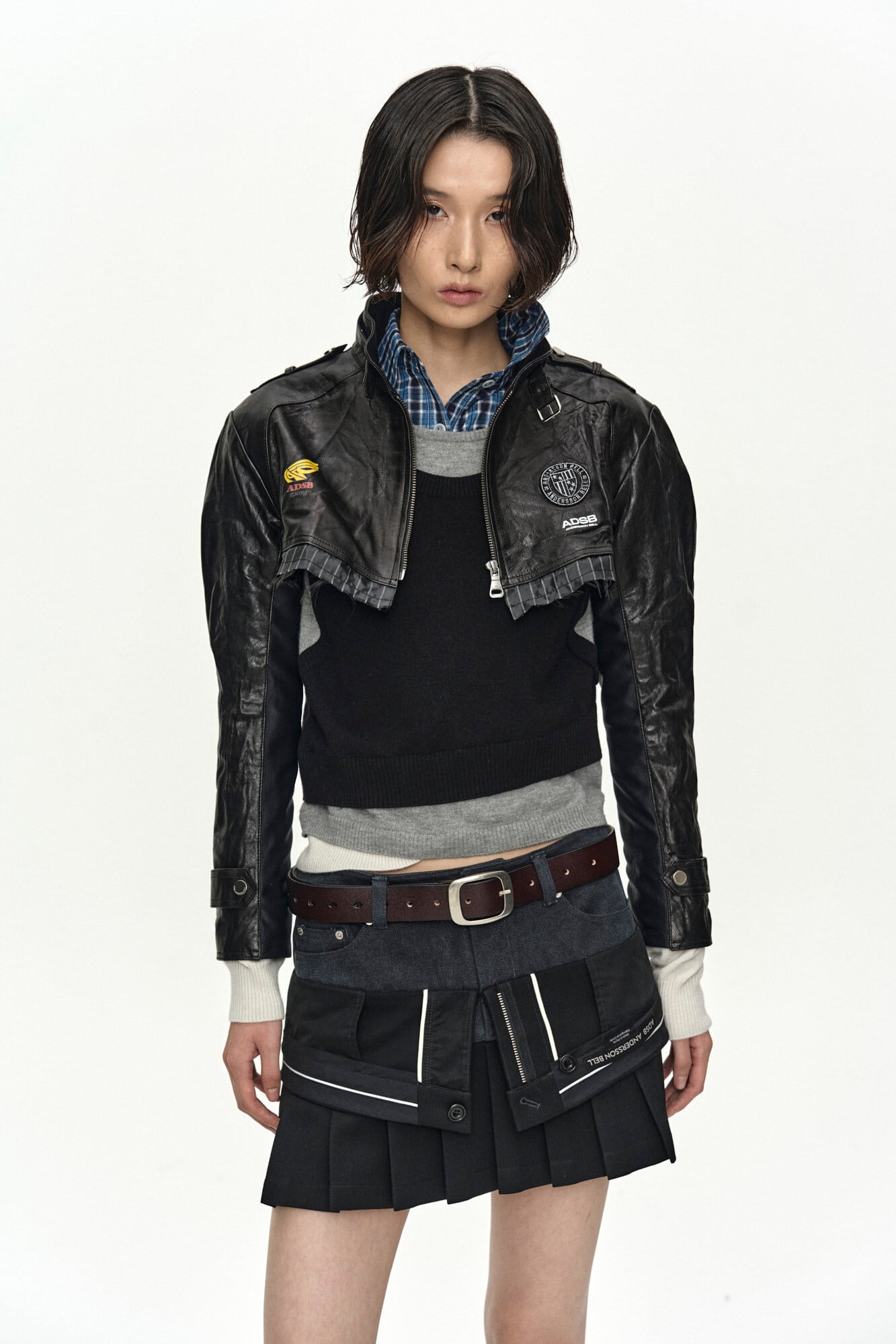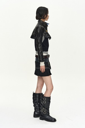 [ANDERSSON BELL] CUT-OUT SHRUNKEN RACING LEATHER JACKET awa765w(BLACK)