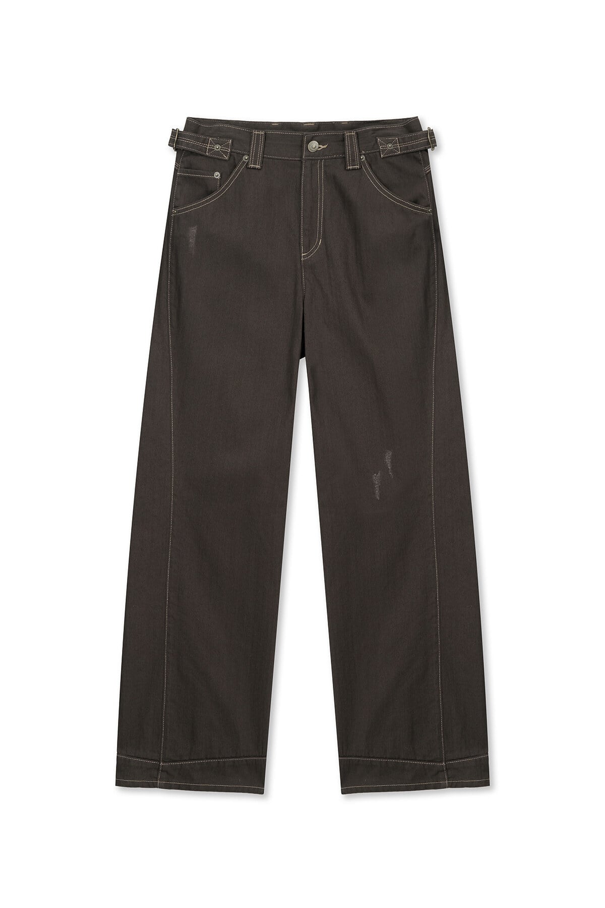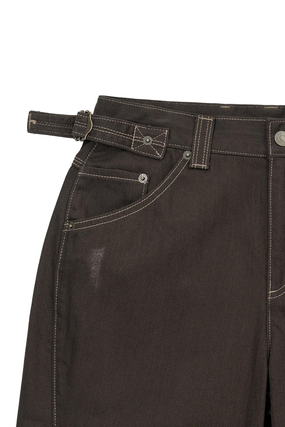 [Matin Kim] WAIST BUCKLE STITCH POINT TWILL DENIM PANTS IN BROWN