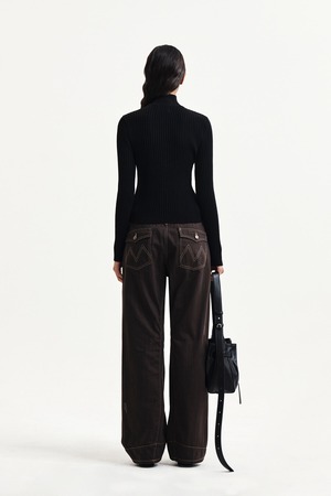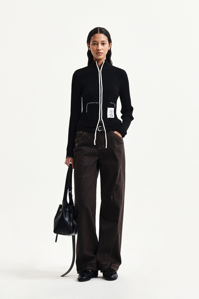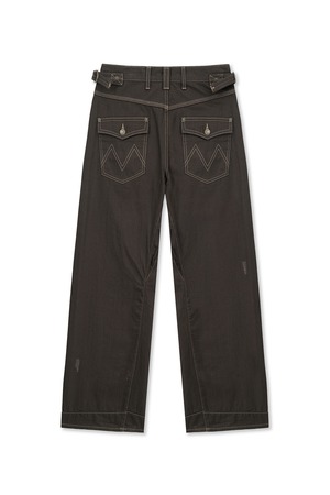 [Matin Kim] WAIST BUCKLE STITCH POINT TWILL DENIM PANTS IN BROWN 正規品 韓国ブランド 韓国通販 韓国代行 韓国ファッション マーティンキム matinkim 日本 店舗
