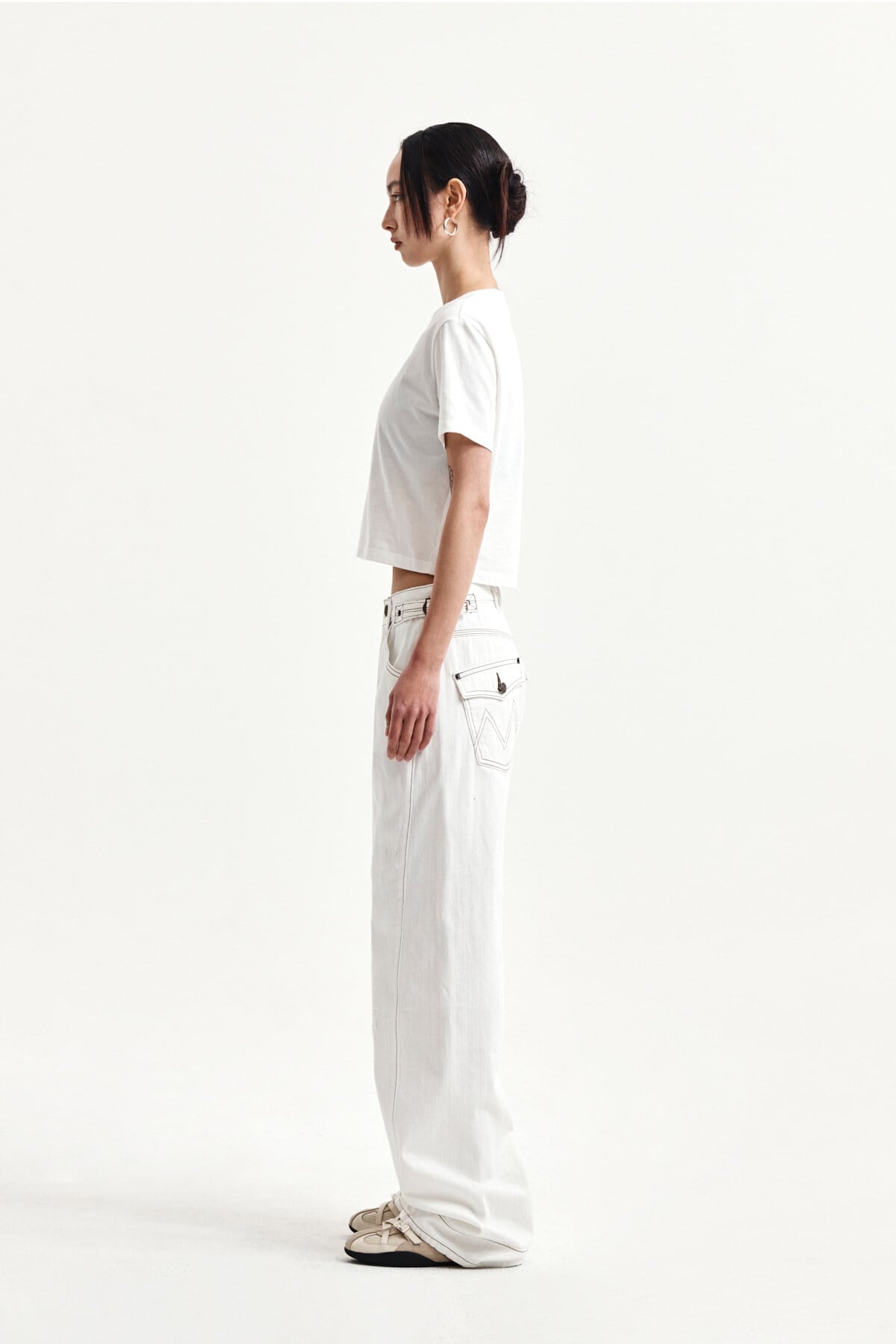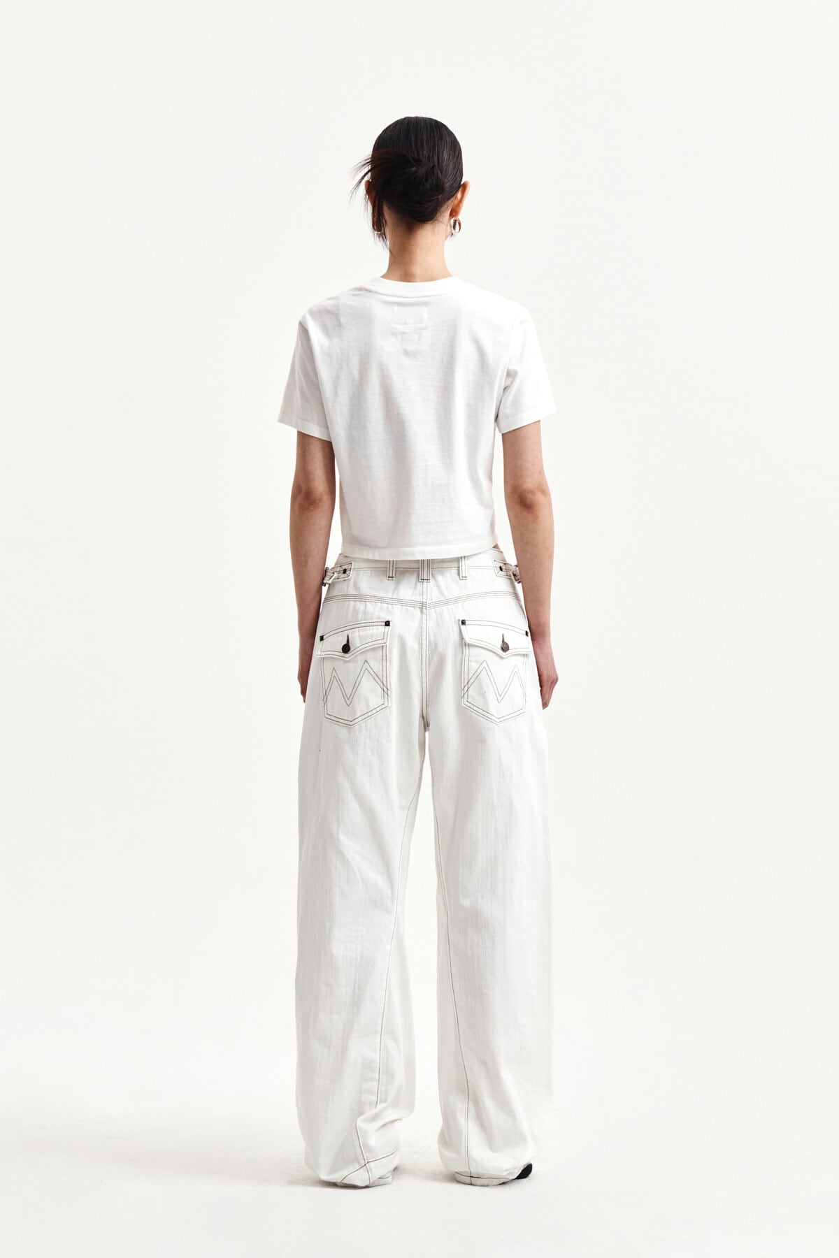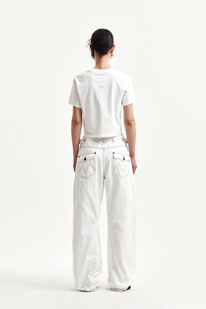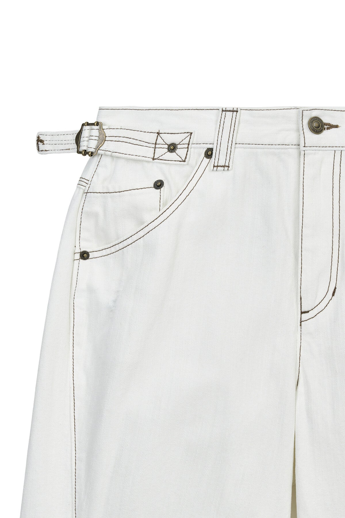 [Matin Kim] WAIST BUCKLE STITCH POINT TWILL DENIM PANTS IN IVORY