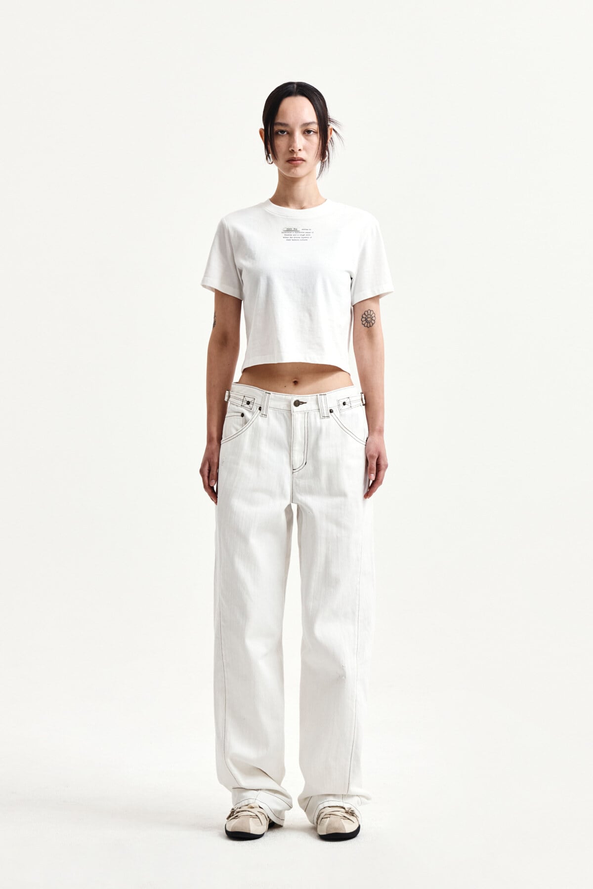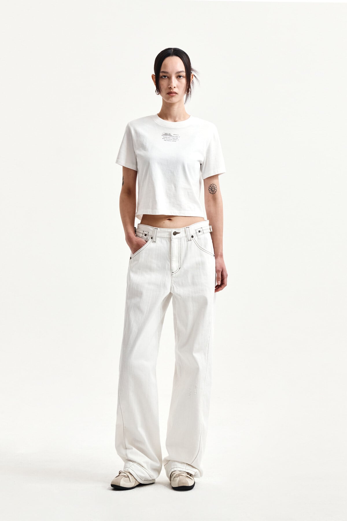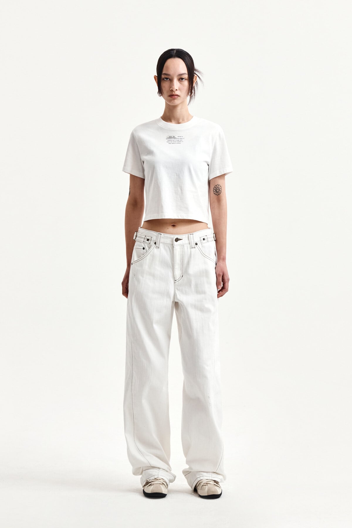 [Matin Kim] WAIST BUCKLE STITCH POINT TWILL DENIM PANTS IN IVORY