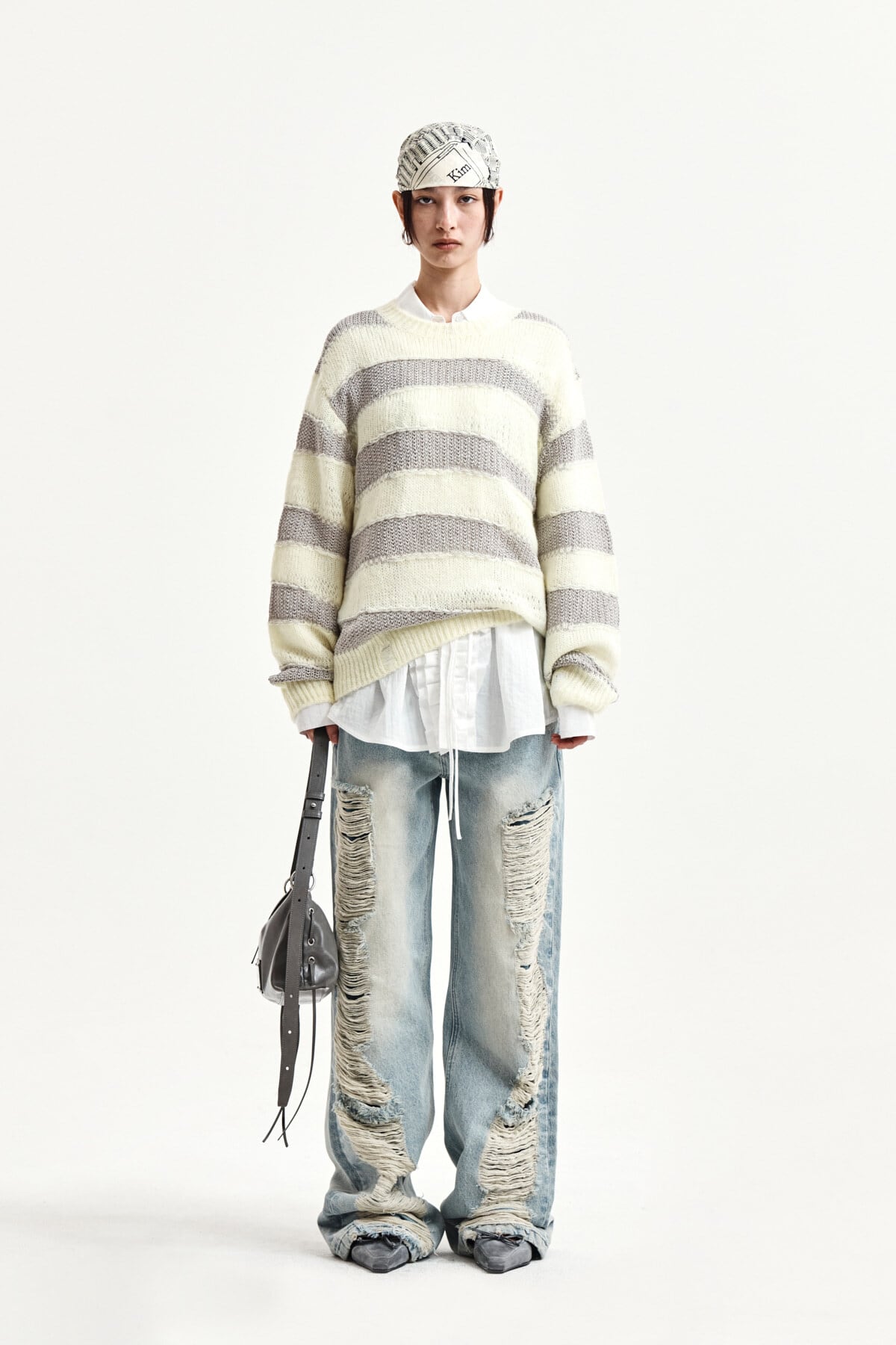 [Matin Kim] HEAVY DESTROYED DENIM PANTS IN LIGHT BLUE 正規品 韓国ブランド 韓国通販 韓国代行 韓国ファッション マーティンキム matinkim 日本 店舗
