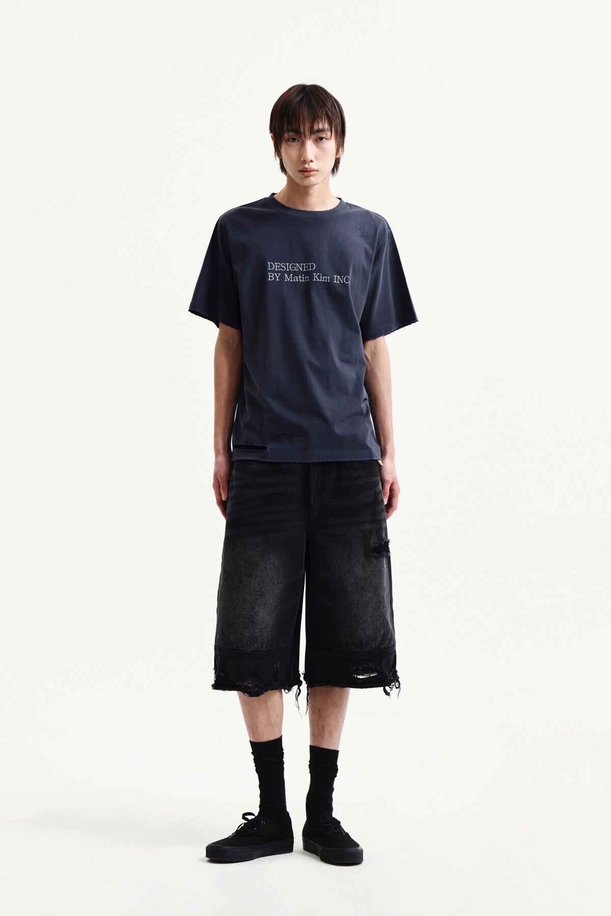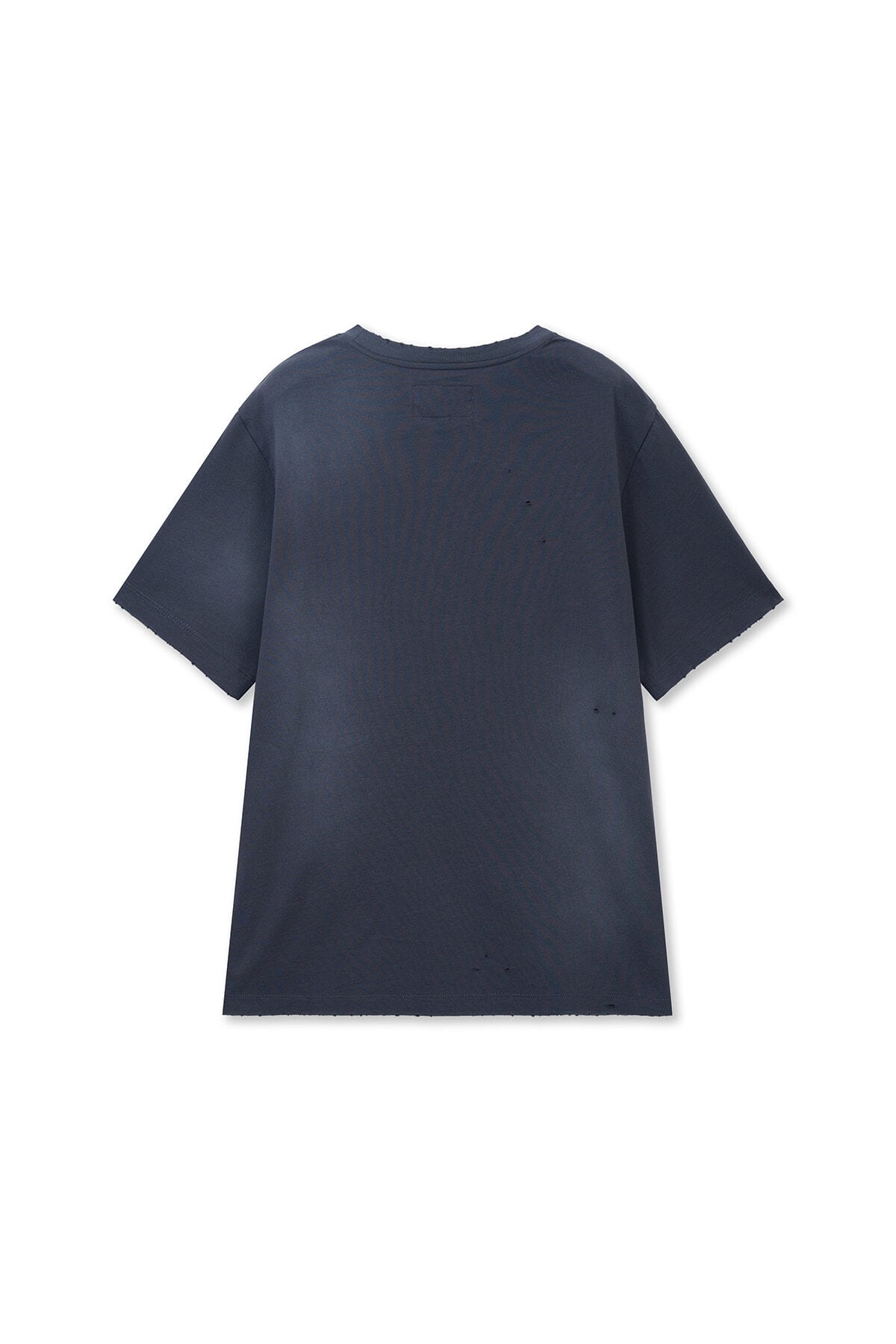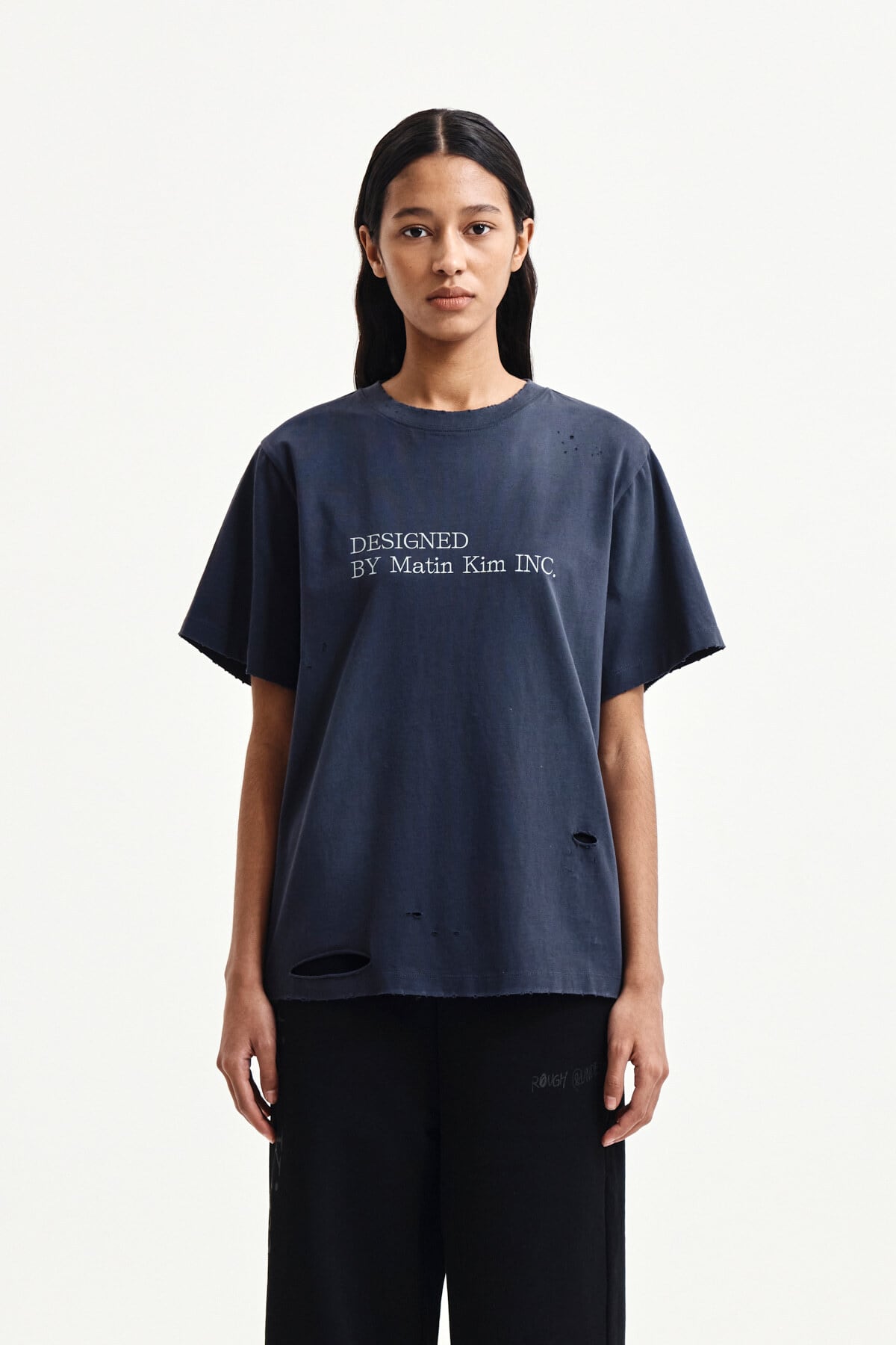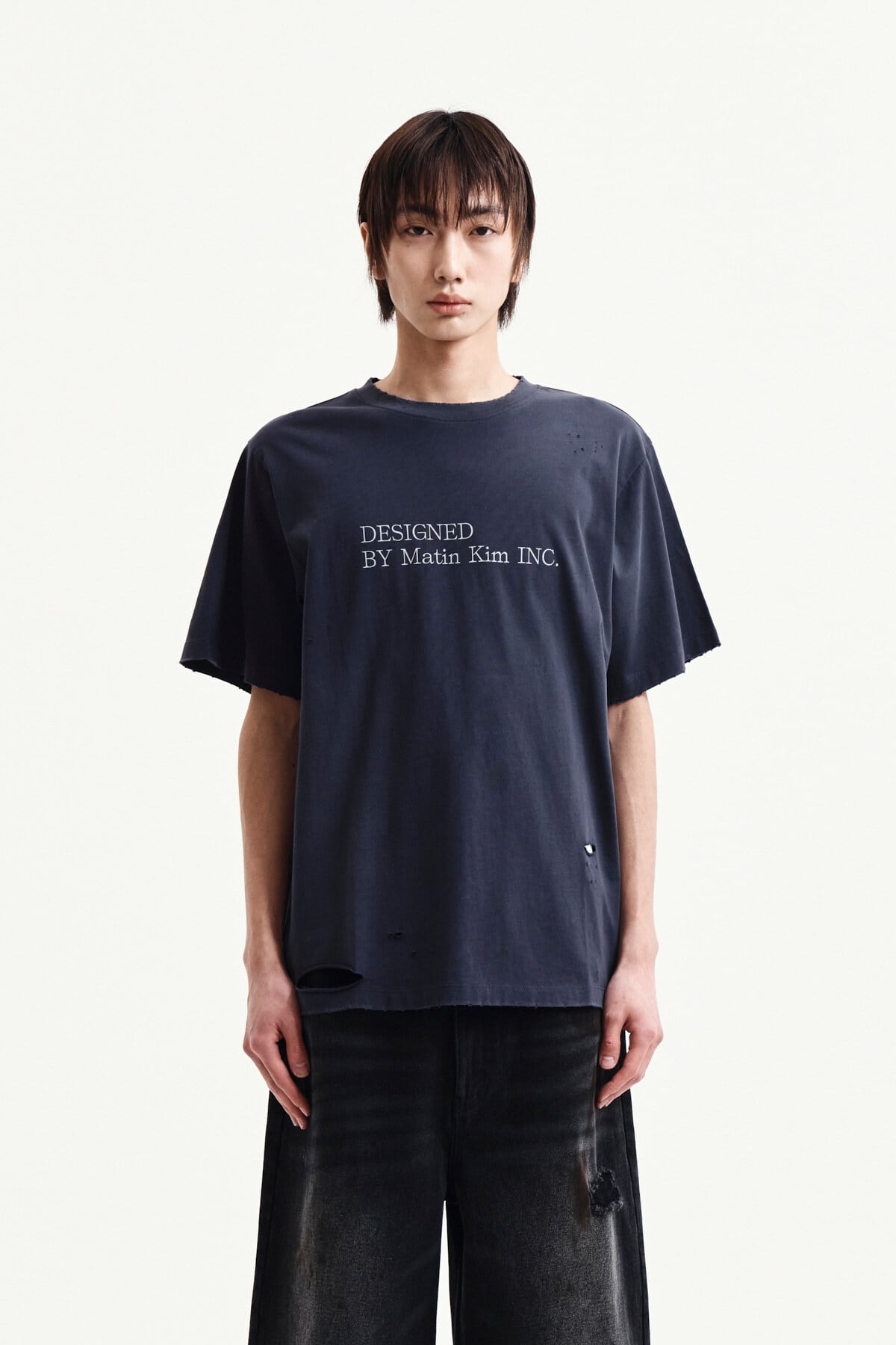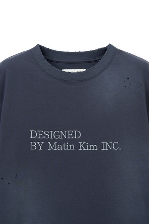 [Matin Kim] SPRAY WASHED LETTERING DAMAGED TOP IN NAVY