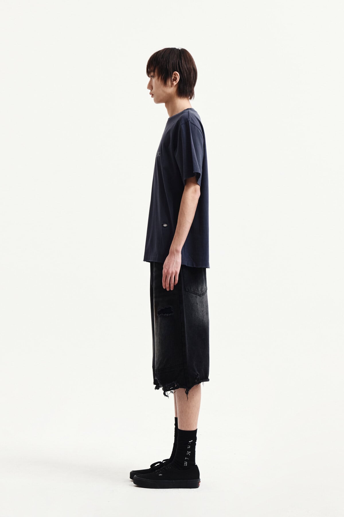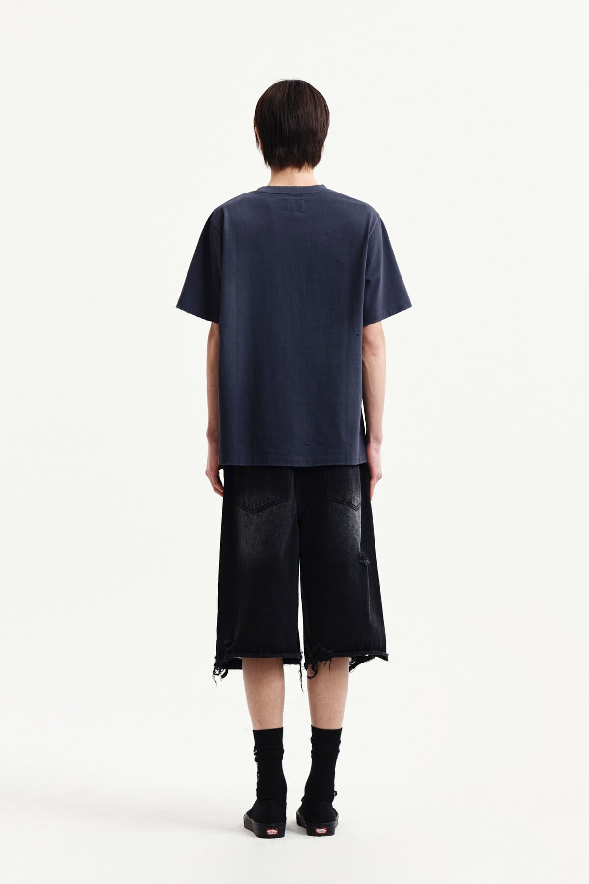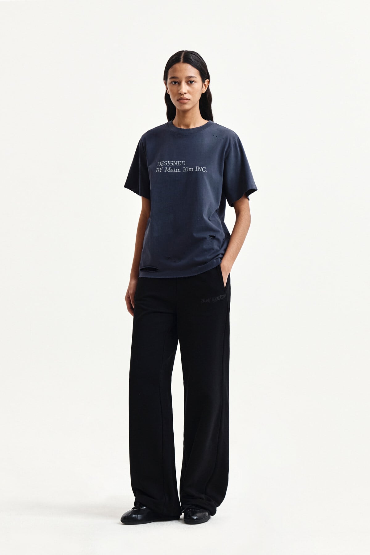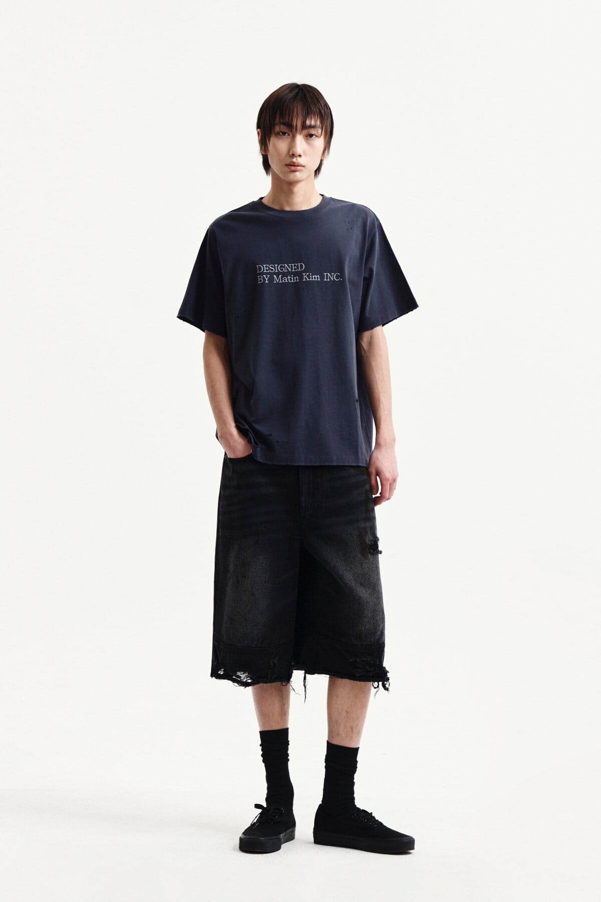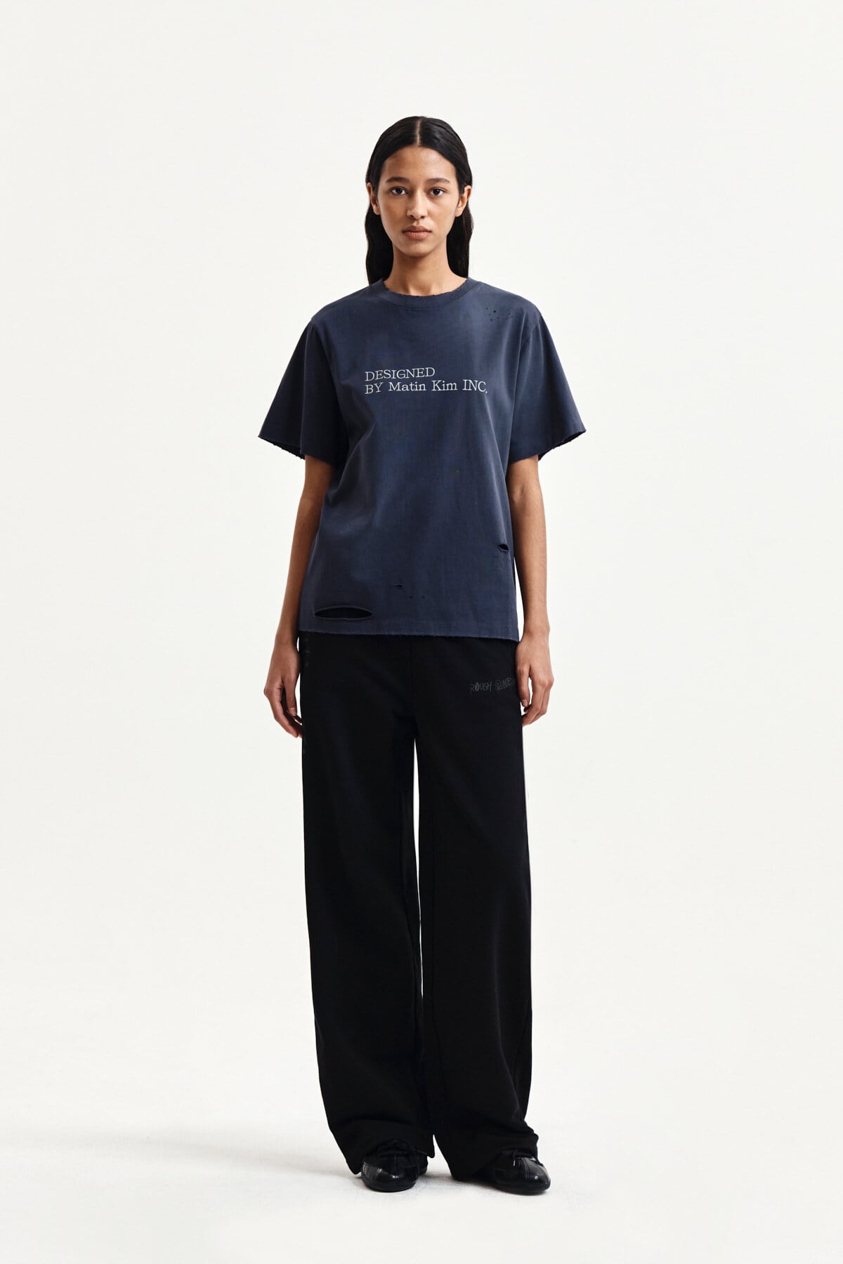 [Matin Kim] SPRAY WASHED LETTERING DAMAGED TOP IN NAVY