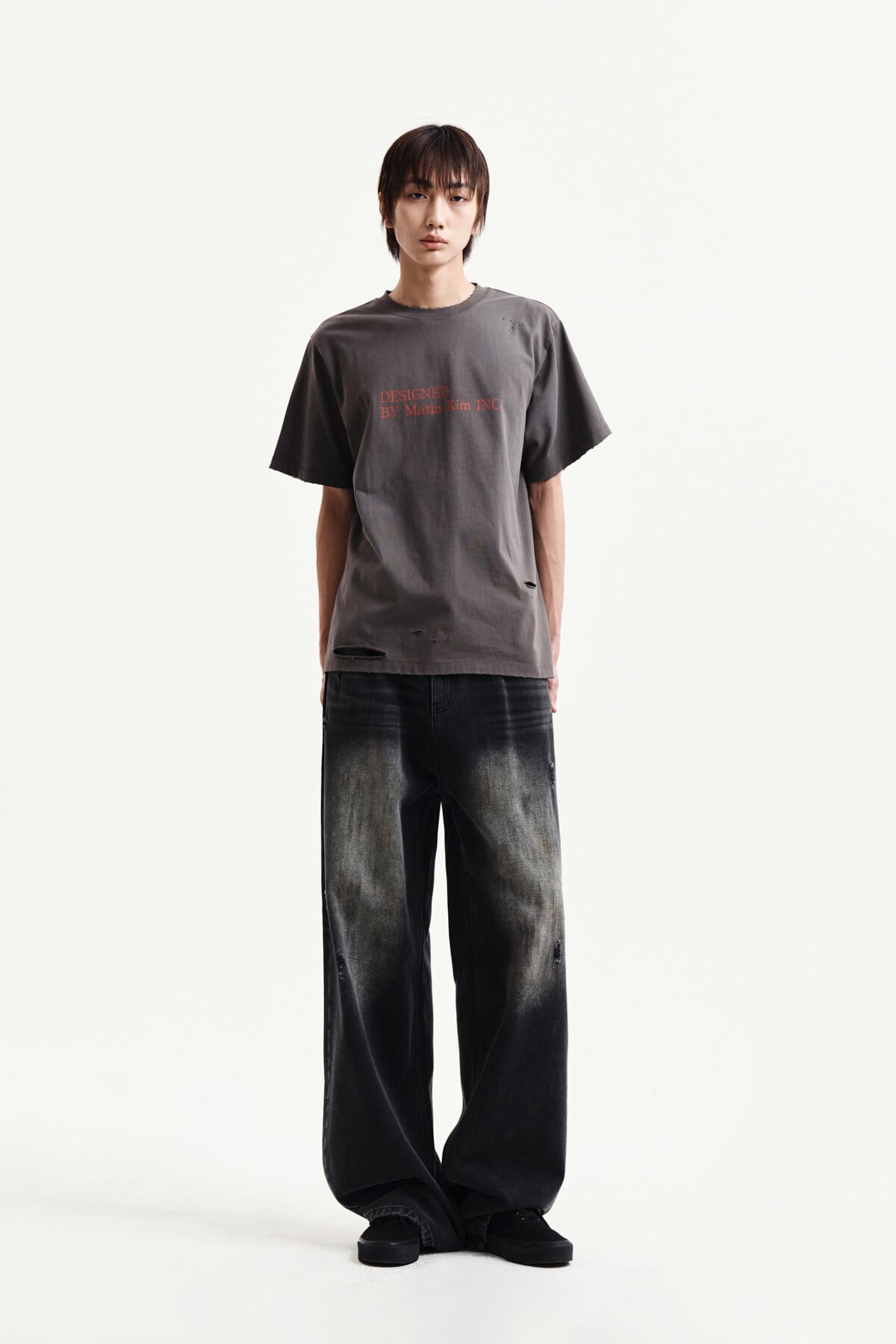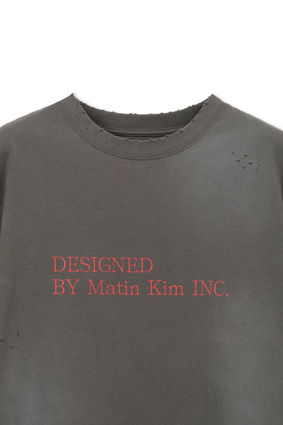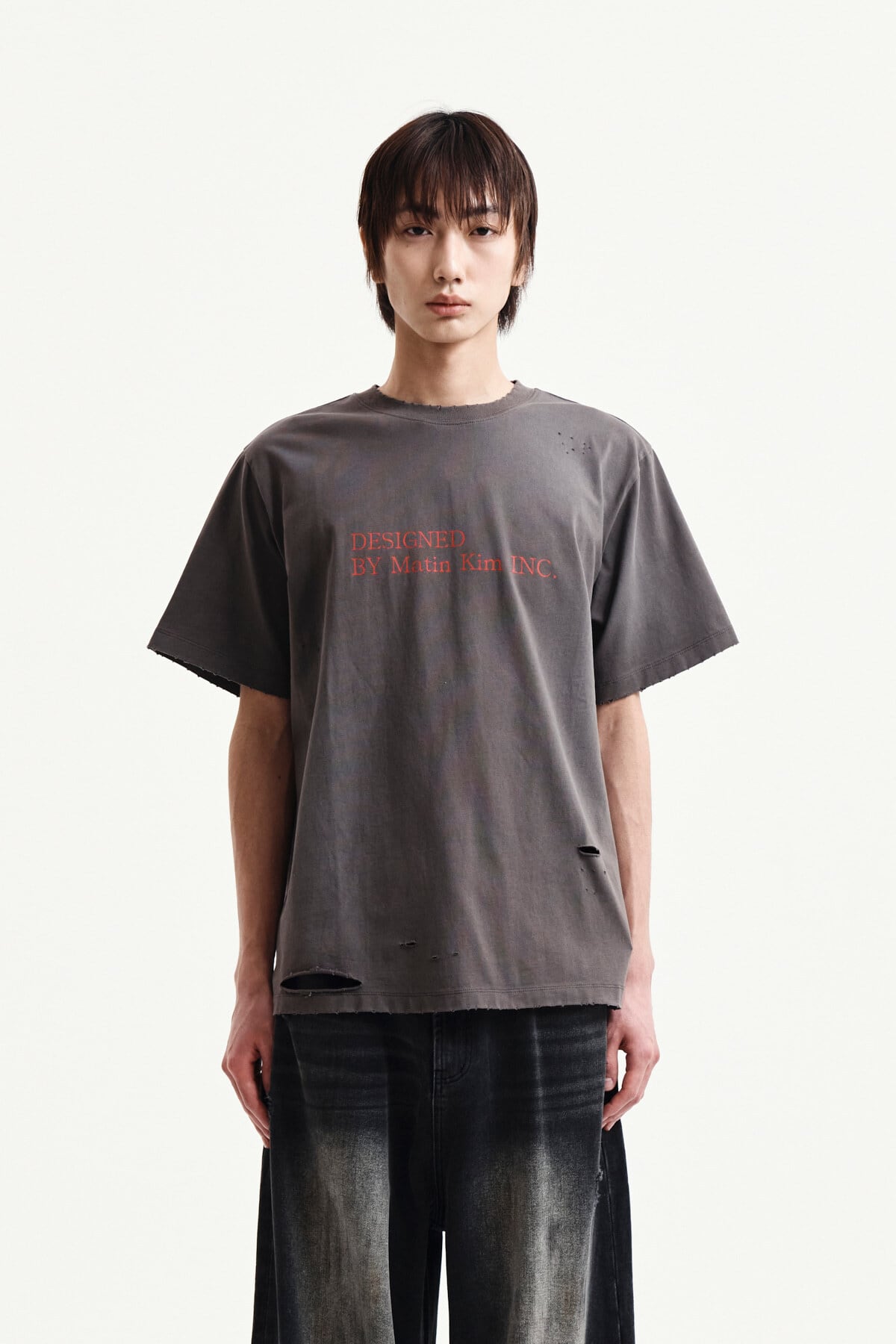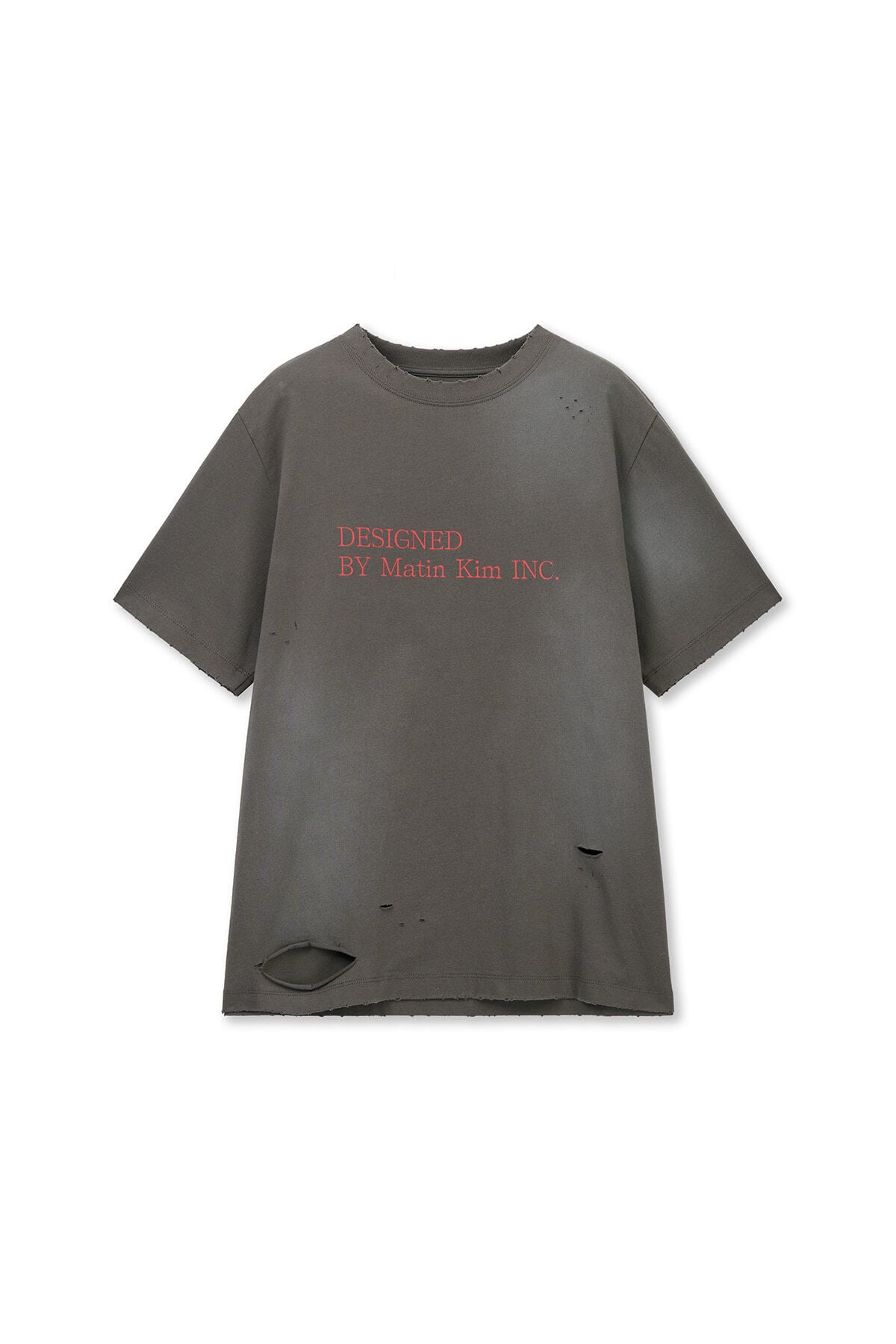 [Matin Kim] SPRAY WASHED LETTERING DAMAGED TOP IN CHARCOAL