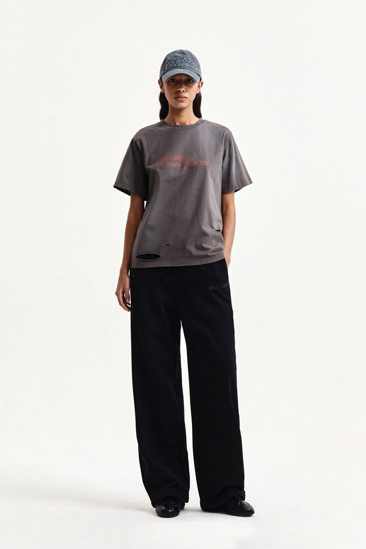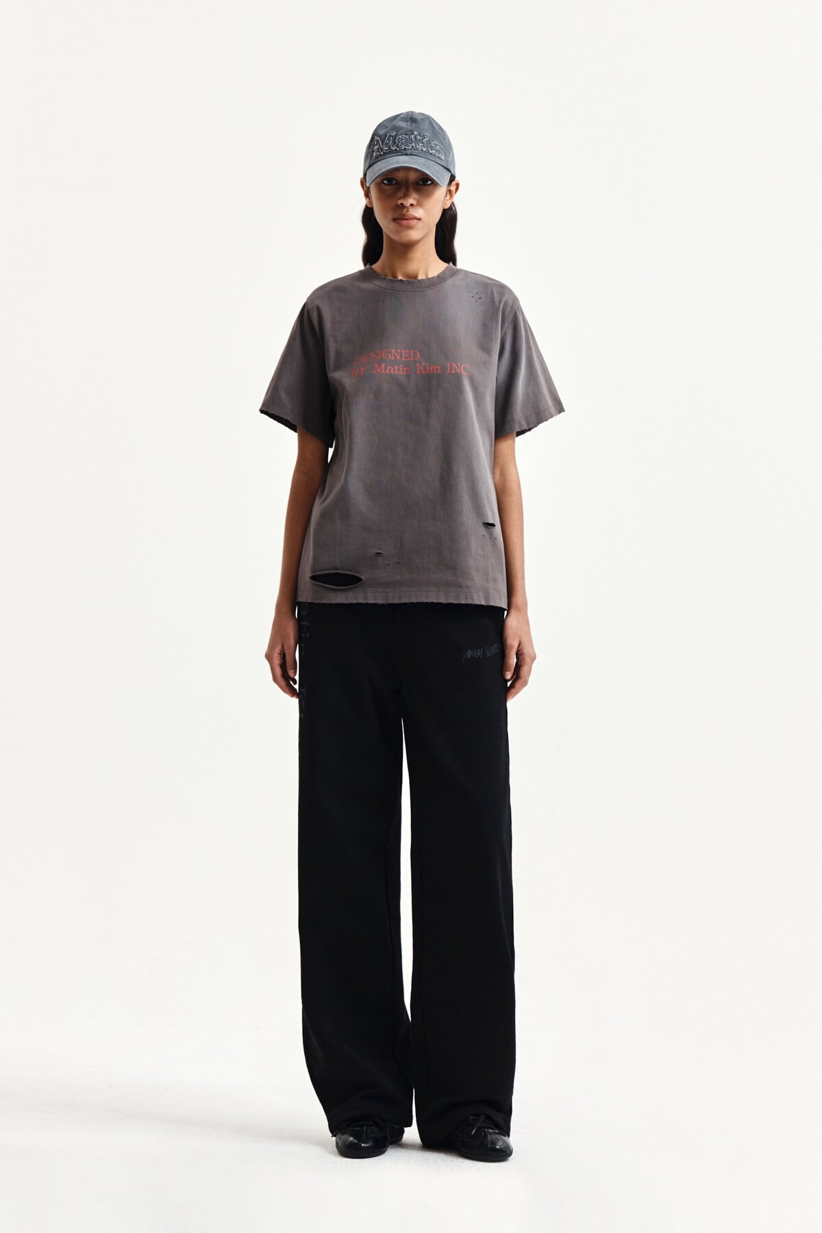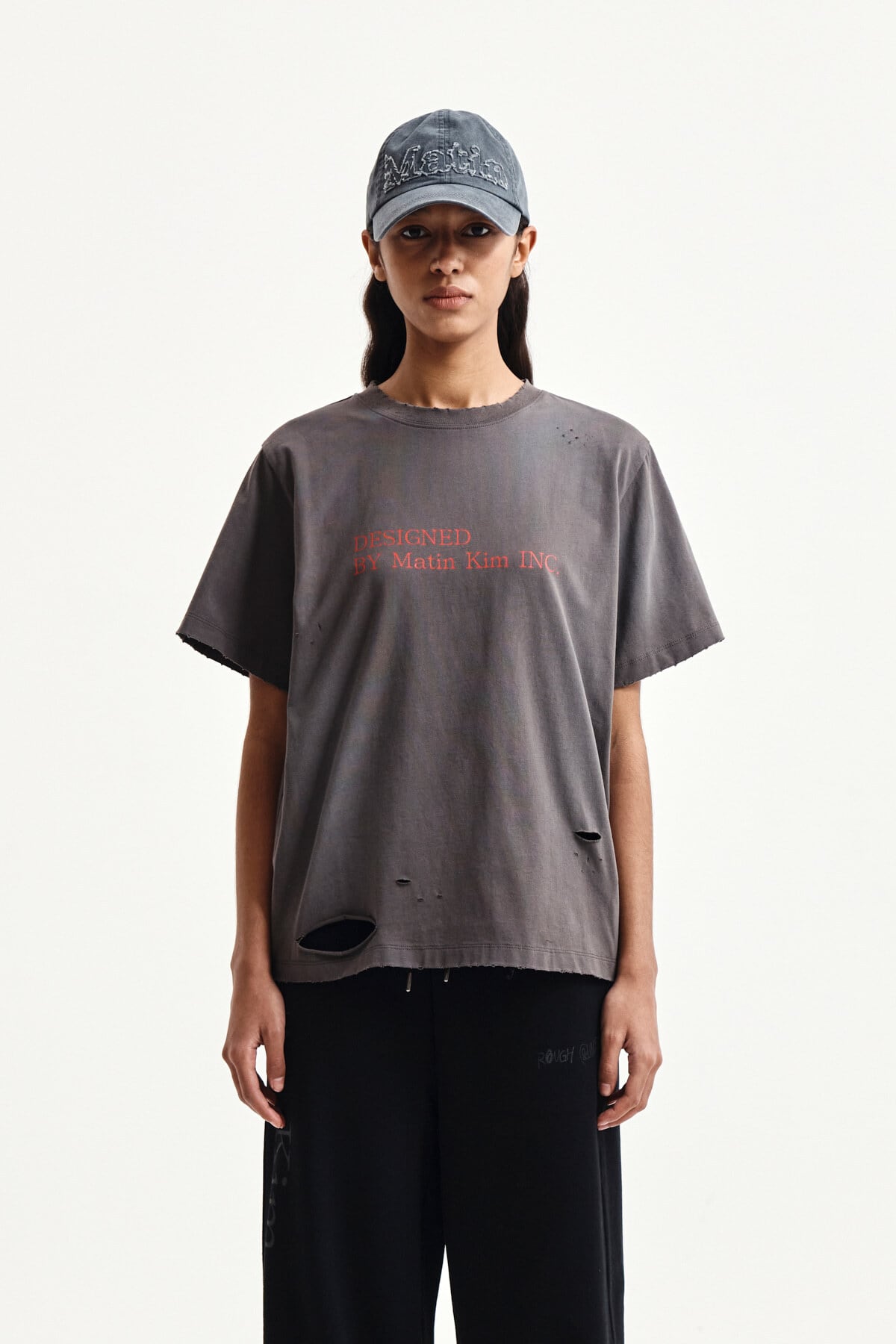 [Matin Kim] SPRAY WASHED LETTERING DAMAGED TOP IN CHARCOAL