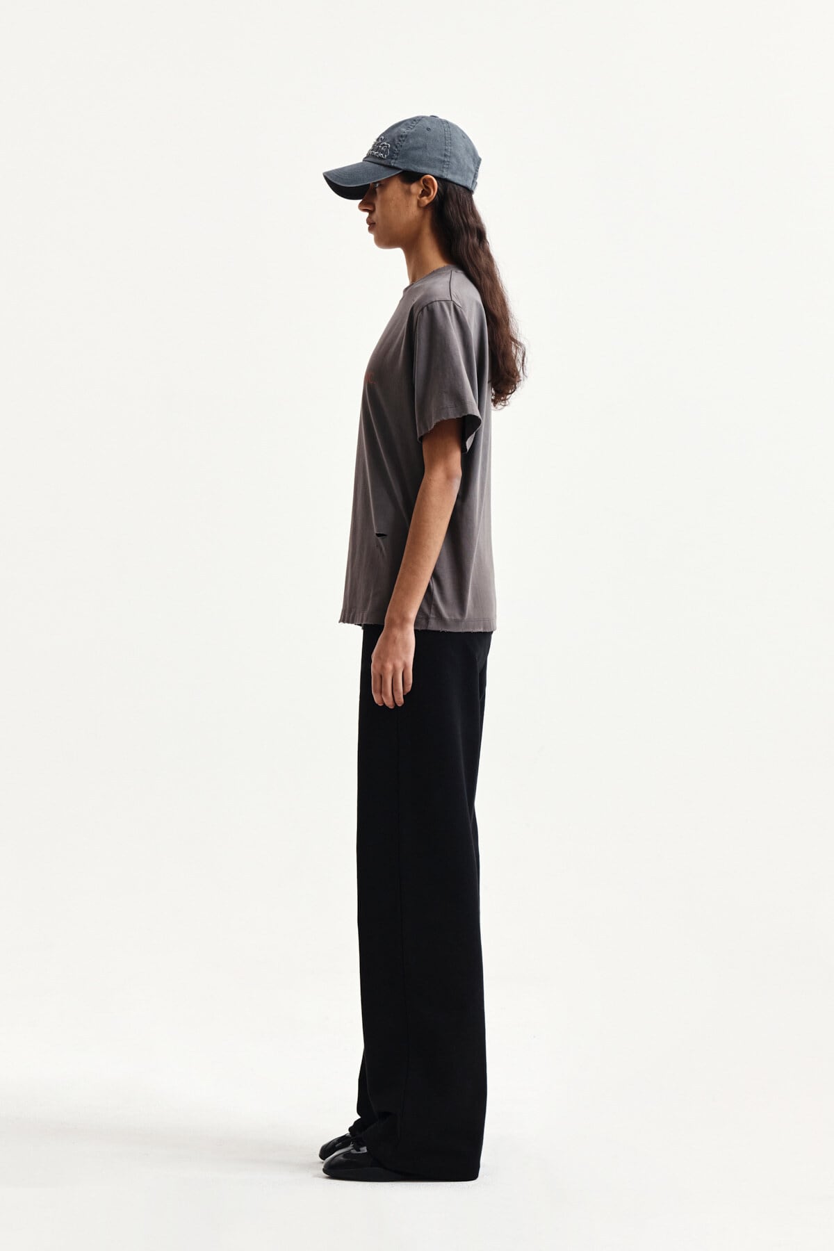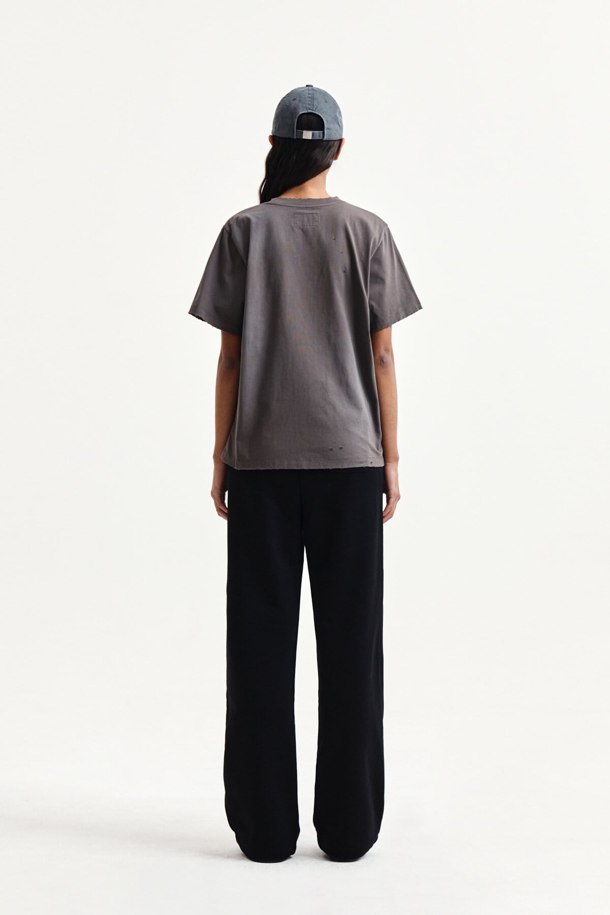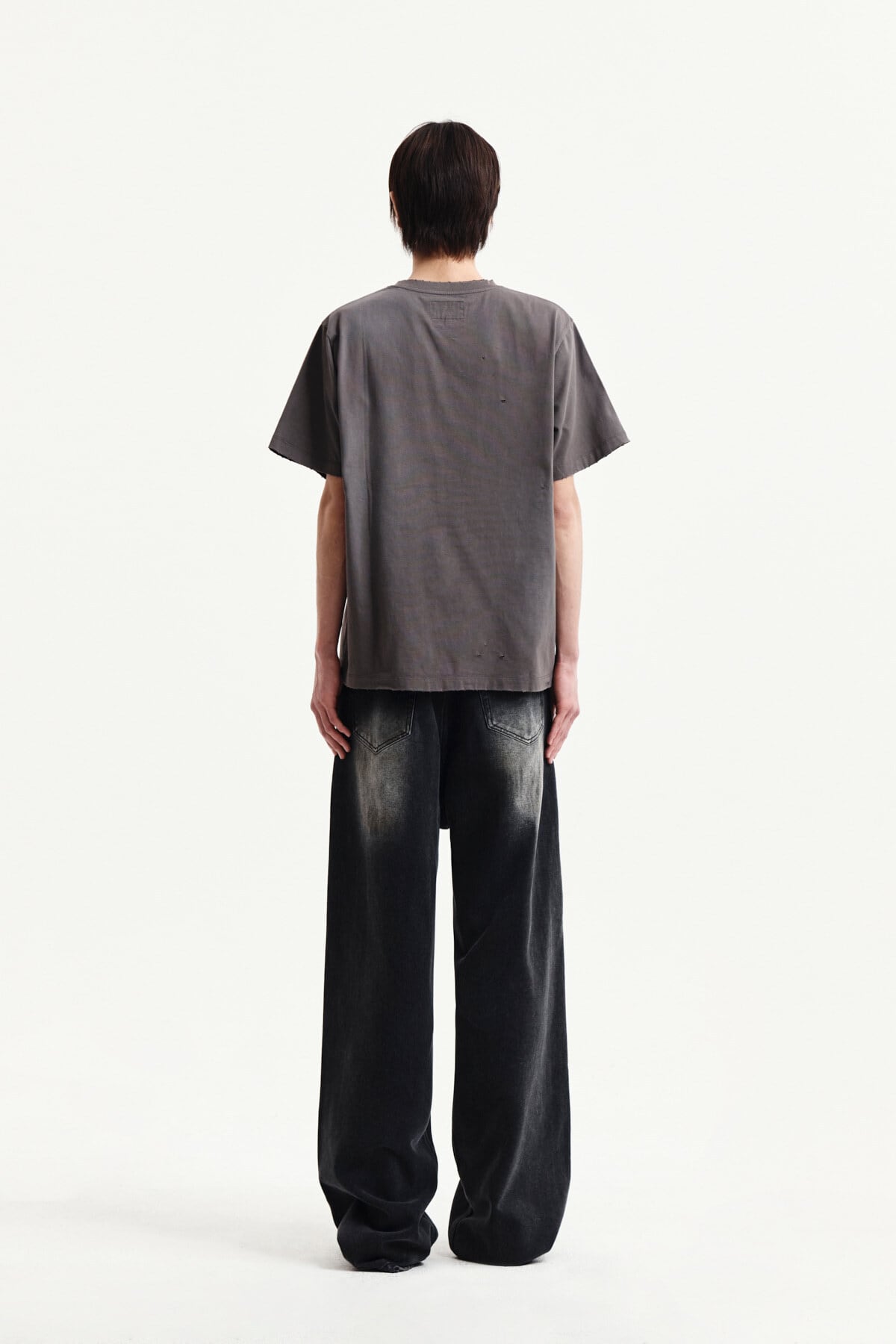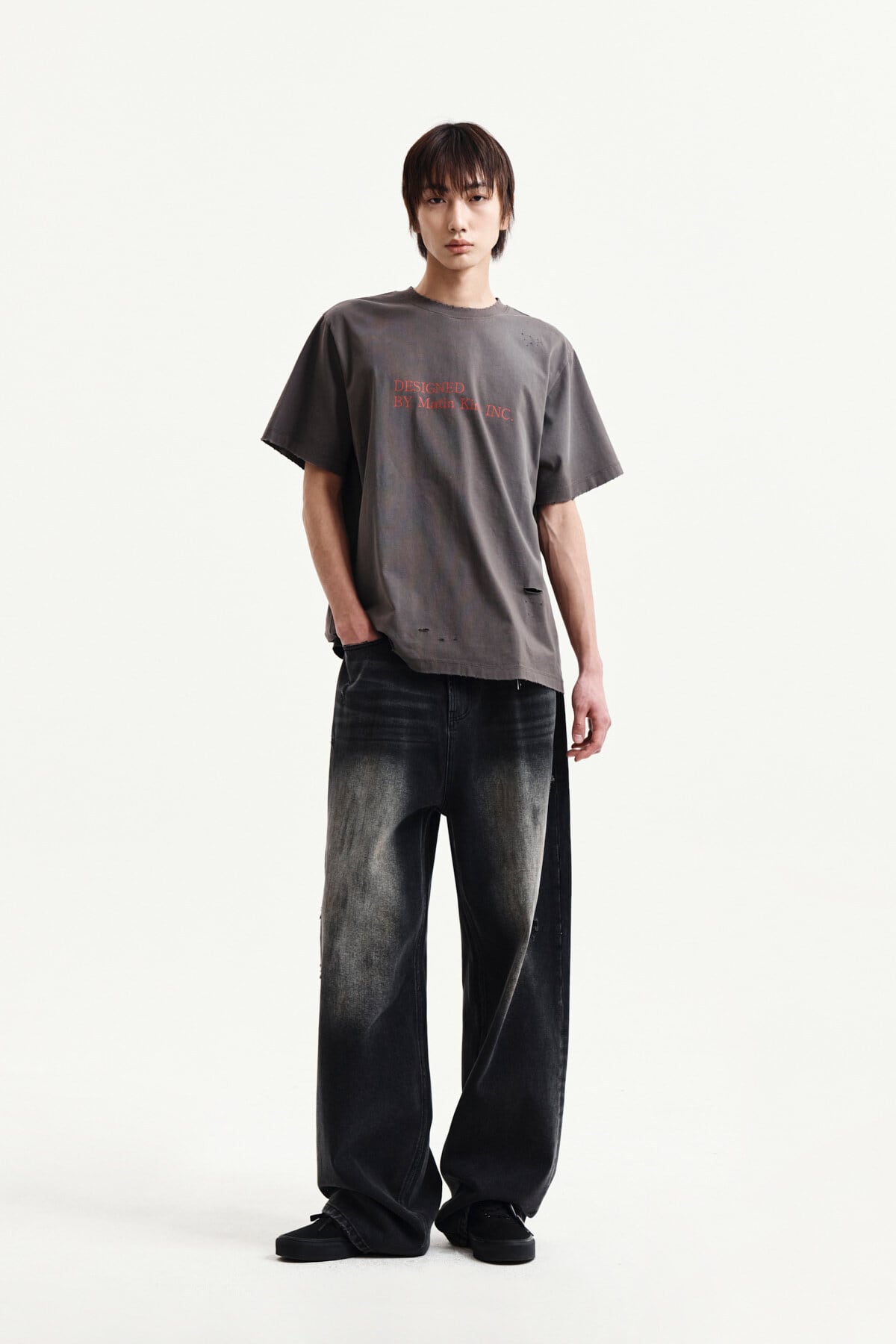 [Matin Kim] SPRAY WASHED LETTERING DAMAGED TOP IN CHARCOAL