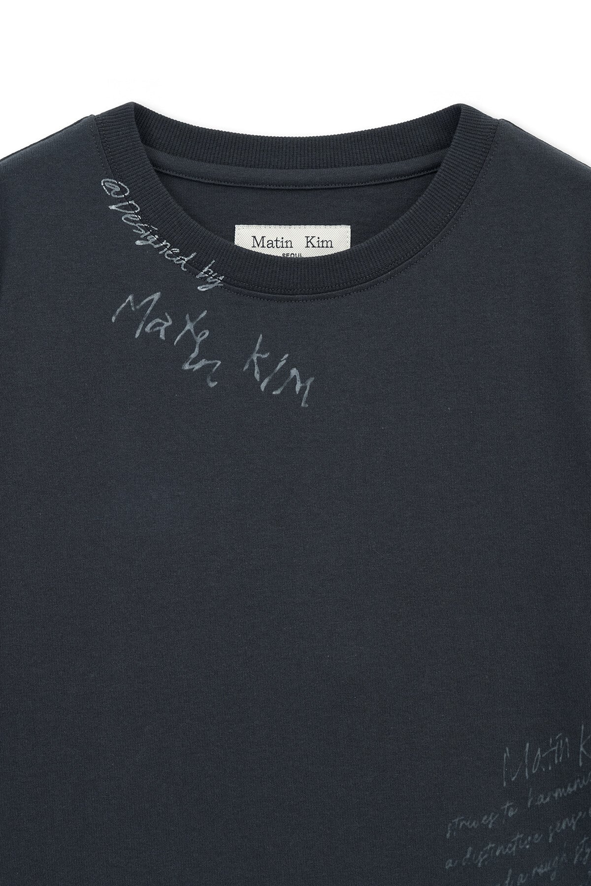 [Matin Kim] GRAFFITI ROUND HEM CROP TOP IN NAVY 正規品 韓国ブランド 韓国通販 韓国代行 韓国ファッション マーティンキム matinkim 日本 店舗