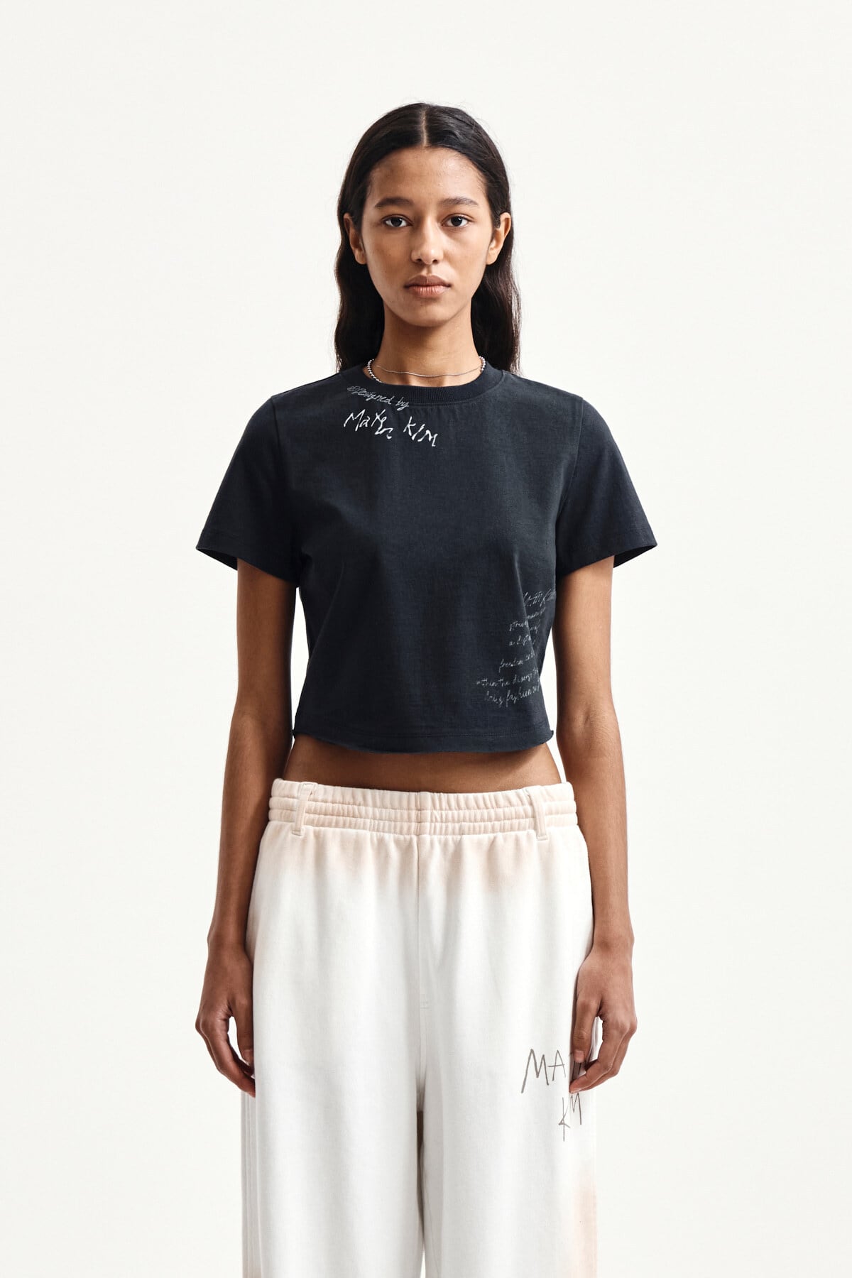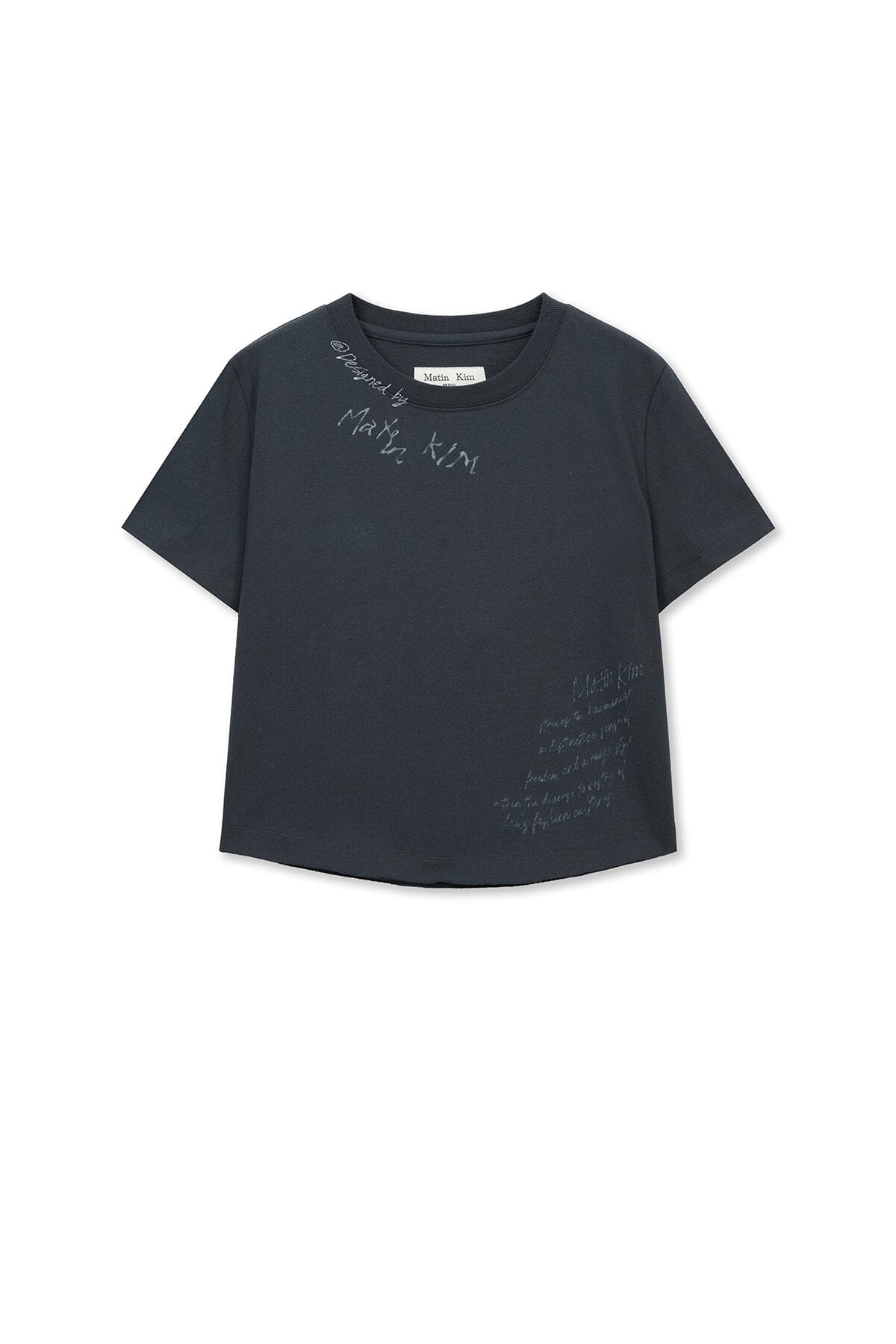 [Matin Kim] GRAFFITI ROUND HEM CROP TOP IN NAVY