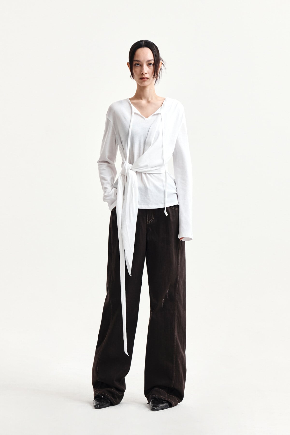 [Matin Kim] TIED DRAPERY TOP IN WHITE 正規品 韓国ブランド 韓国通販 韓国代行 韓国ファッション マーティンキム matinkim 日本 店舗