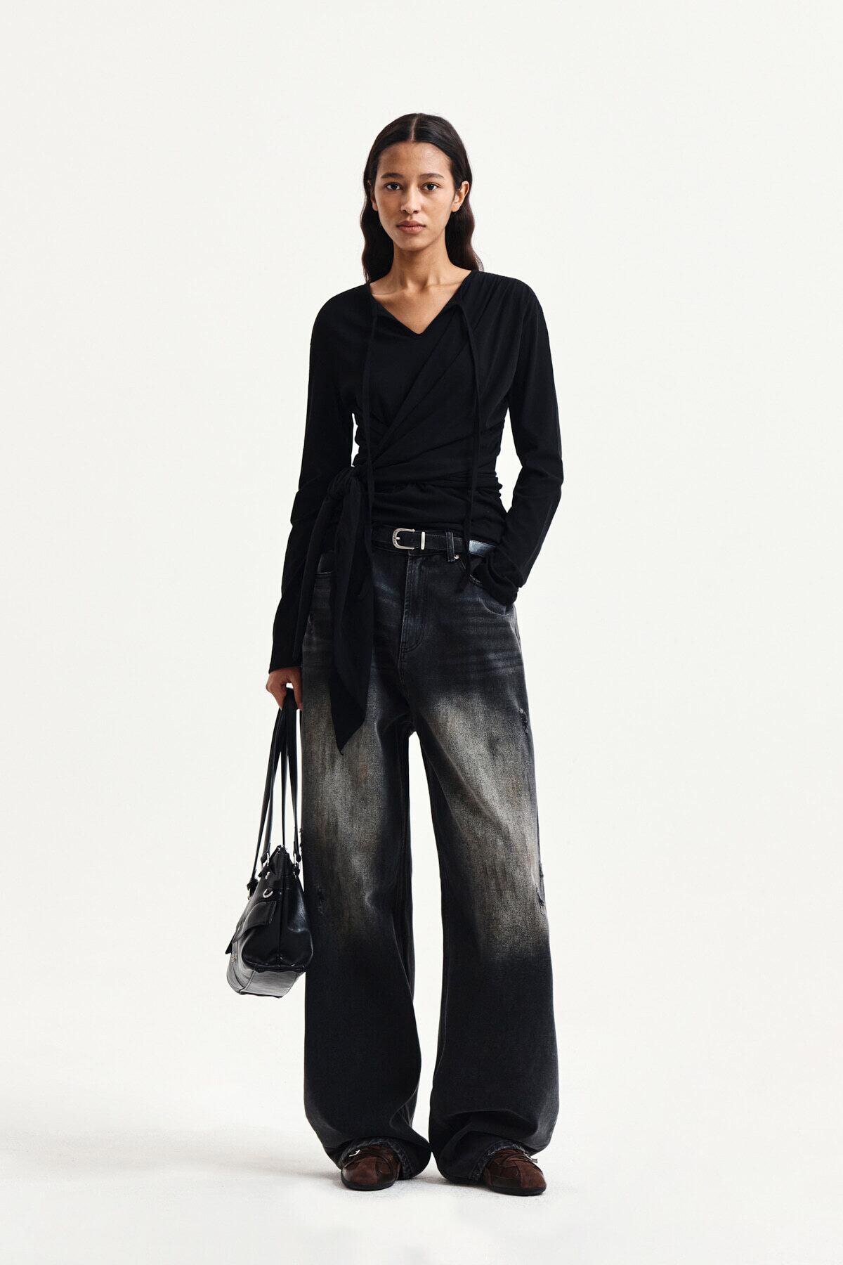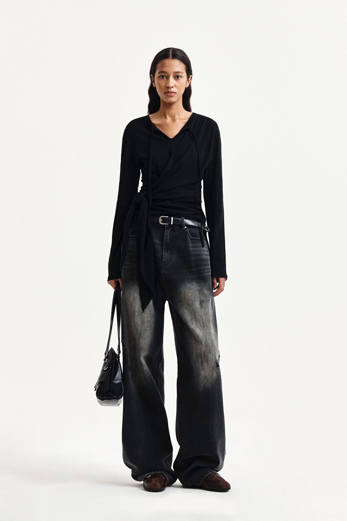 [Matin Kim] TIED DRAPERY TOP IN BLACK