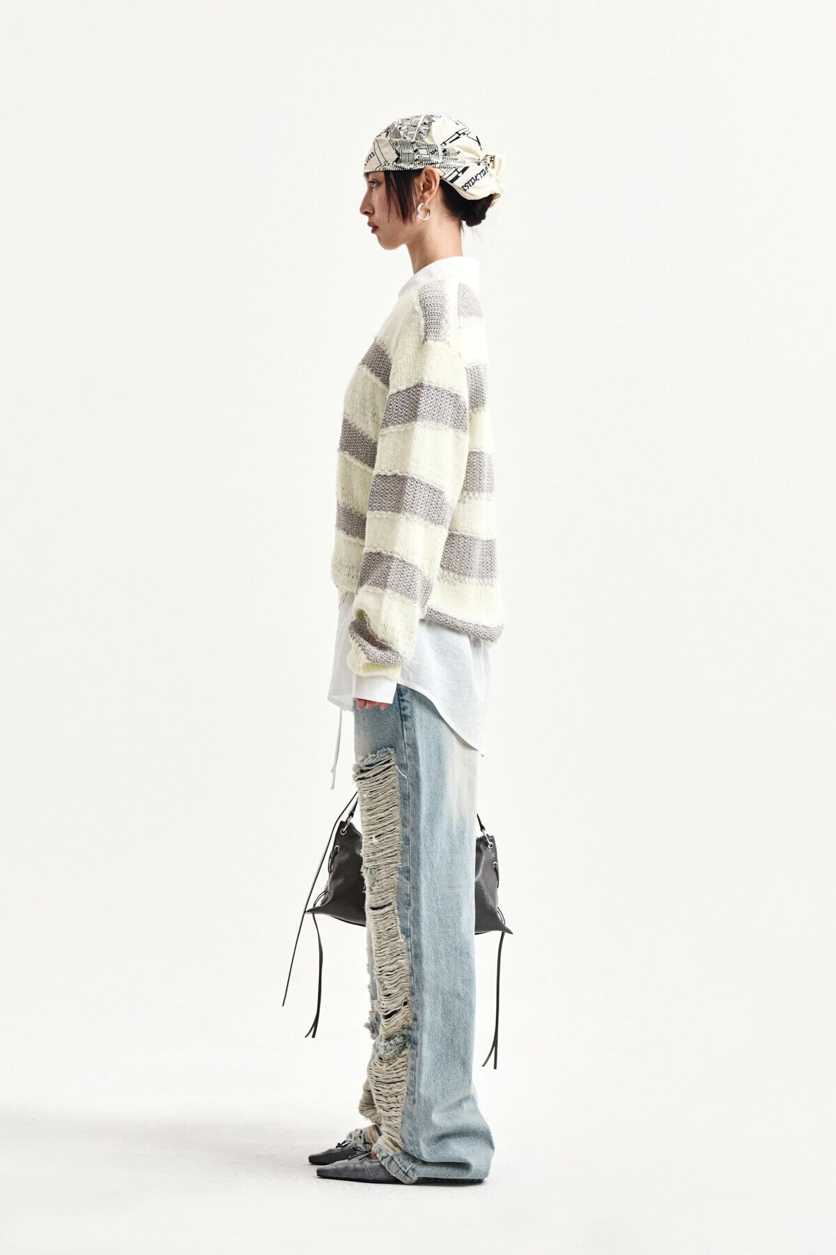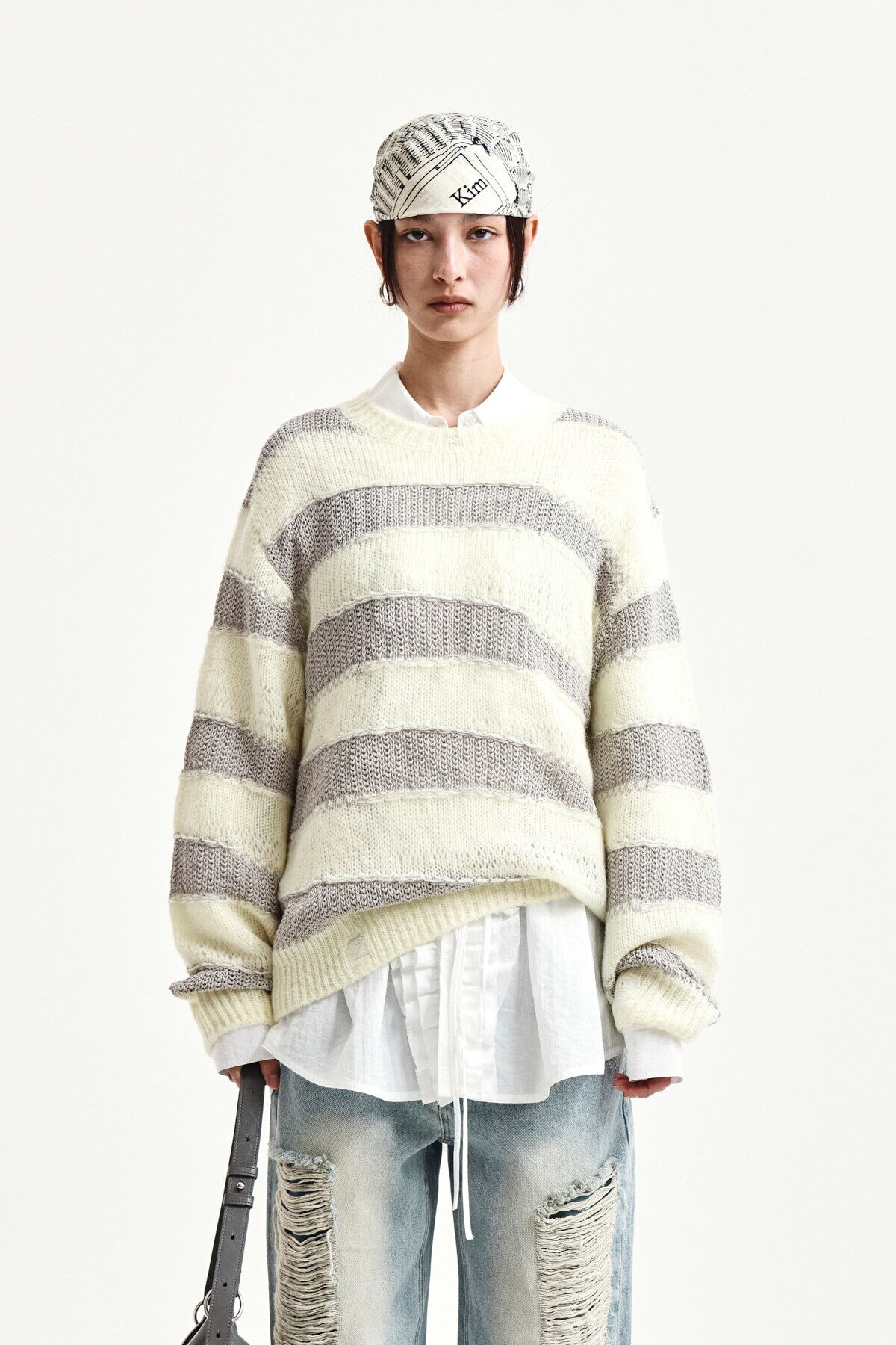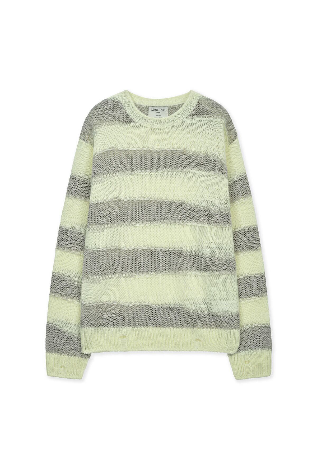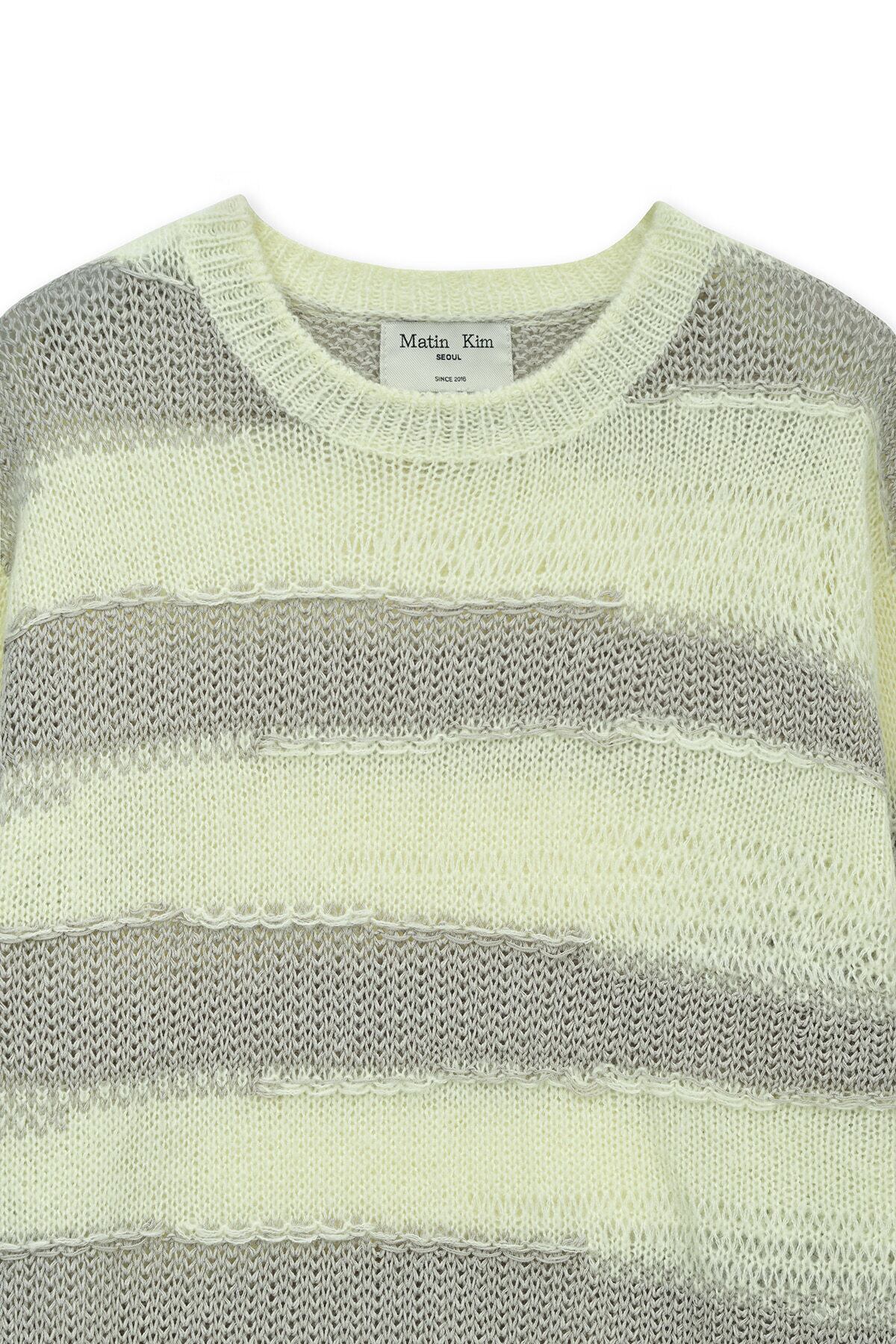 [Matin Kim] TEXTURE BLOCK STRIPE KNIT PULLOVER IN LIGHT YELLOW