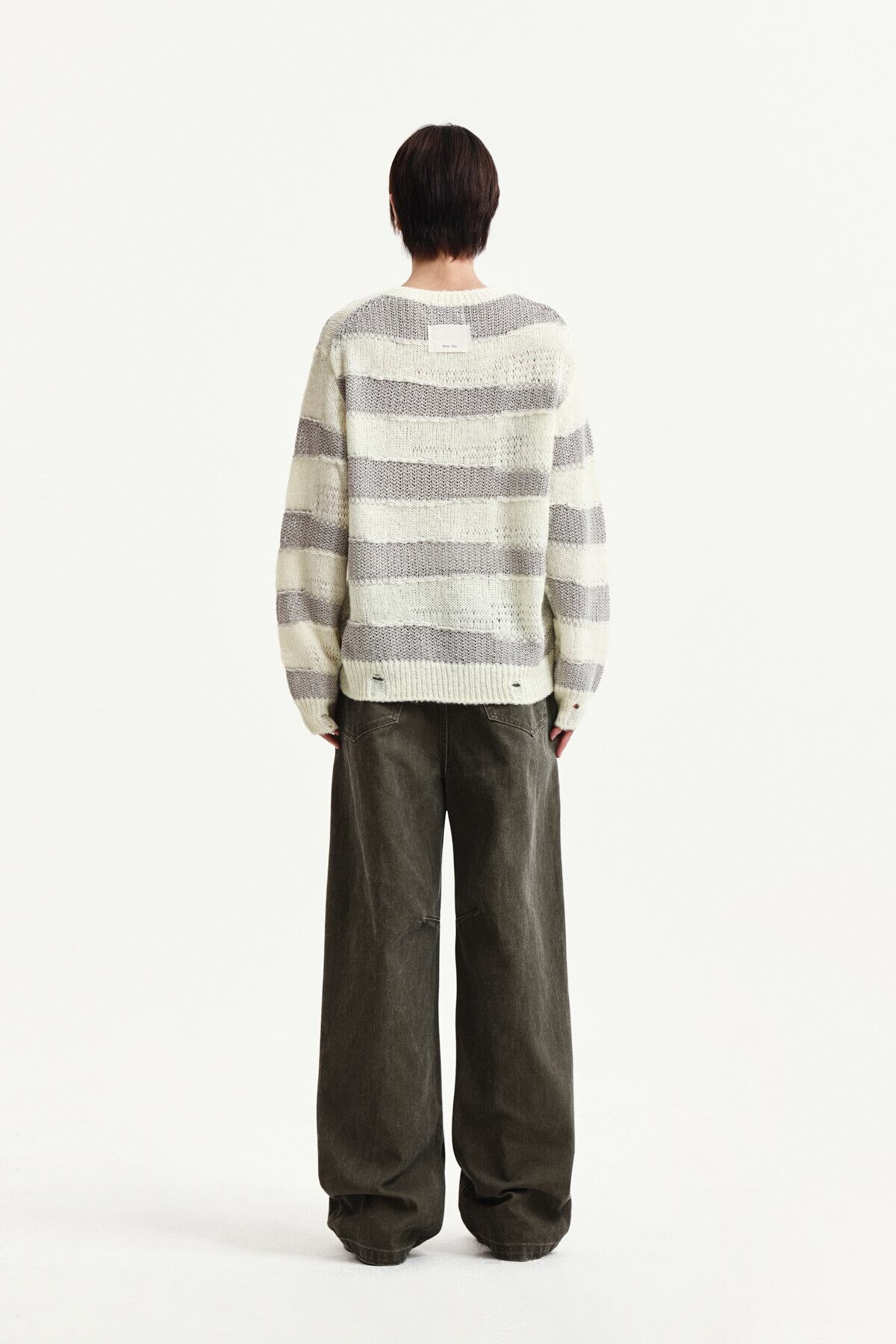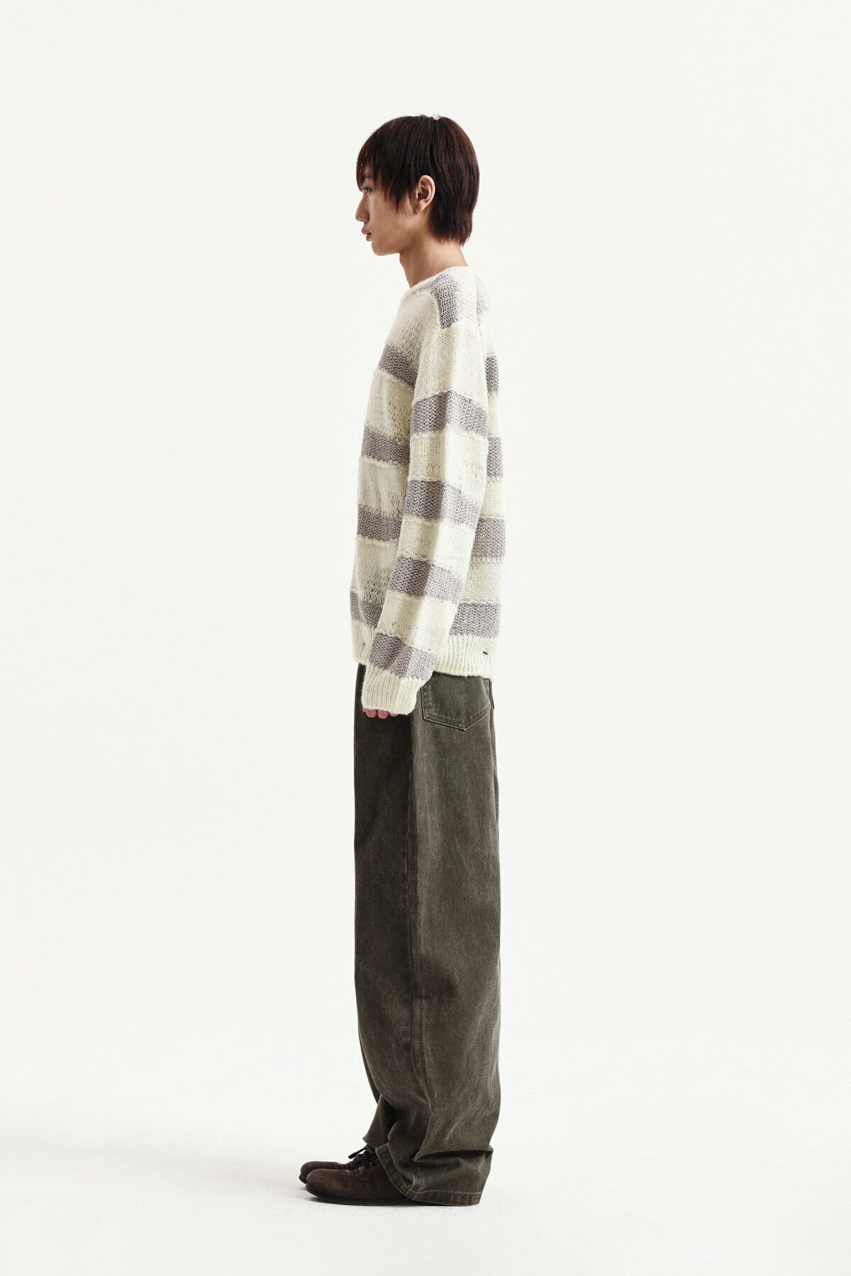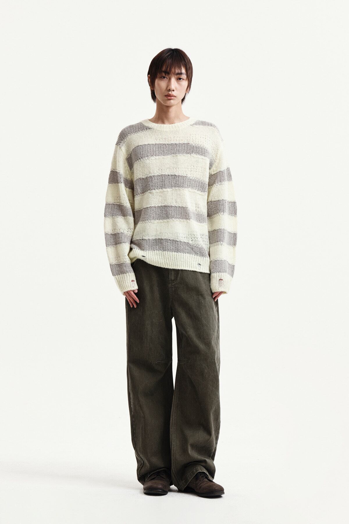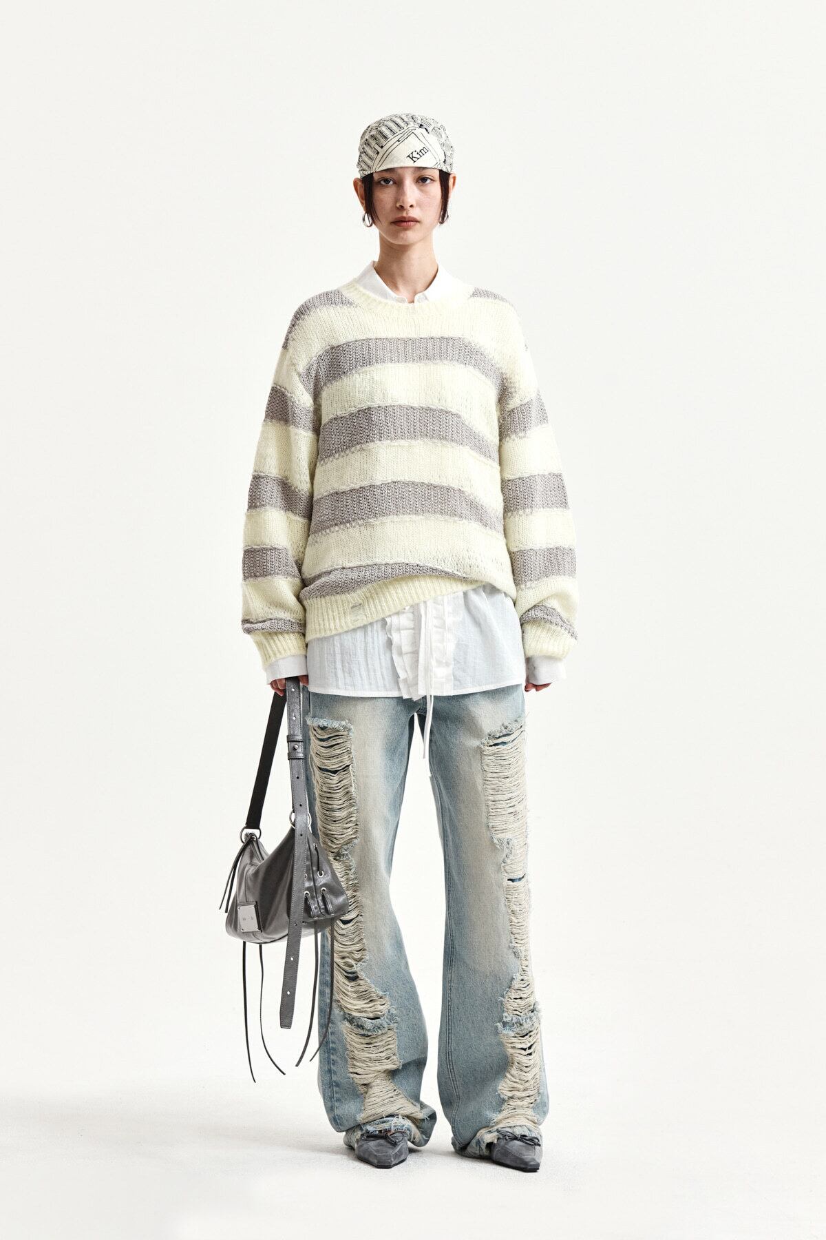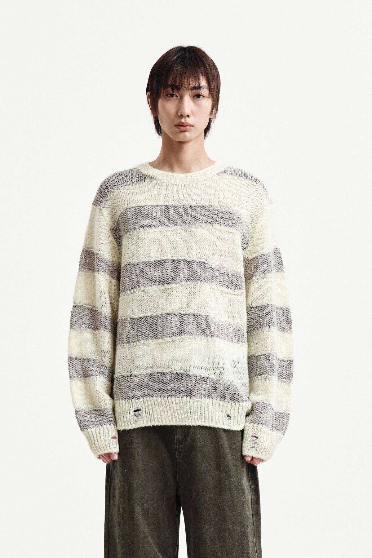 [Matin Kim] TEXTURE BLOCK STRIPE KNIT PULLOVER IN LIGHT YELLOW