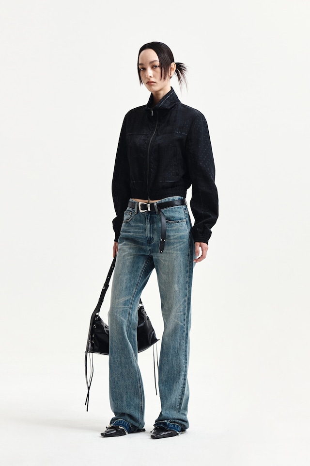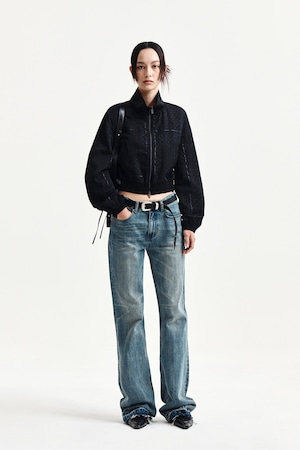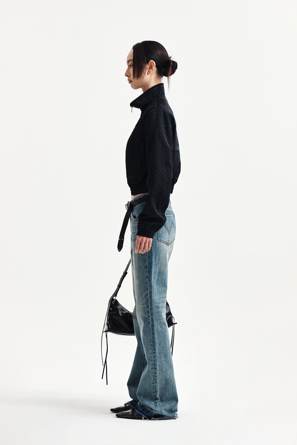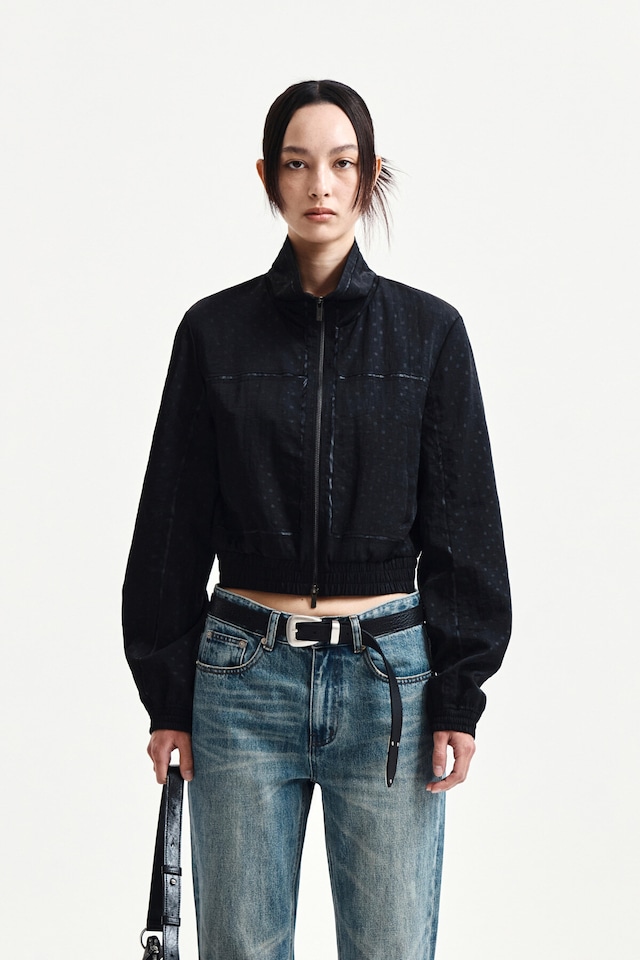[Matin Kim] CROPPED EMBROIDERY BACK LOGO JUMPER IN STRONG BLACK